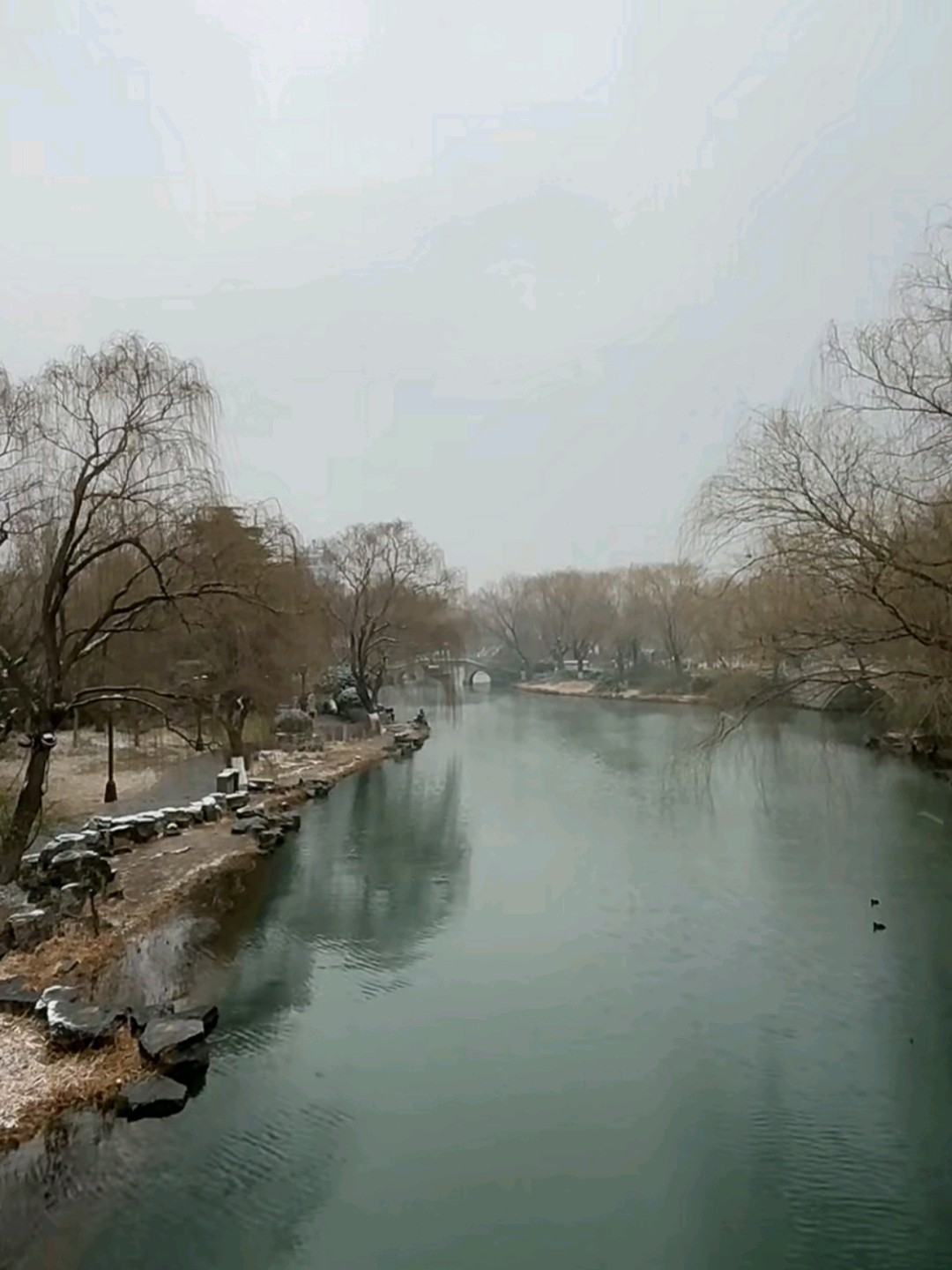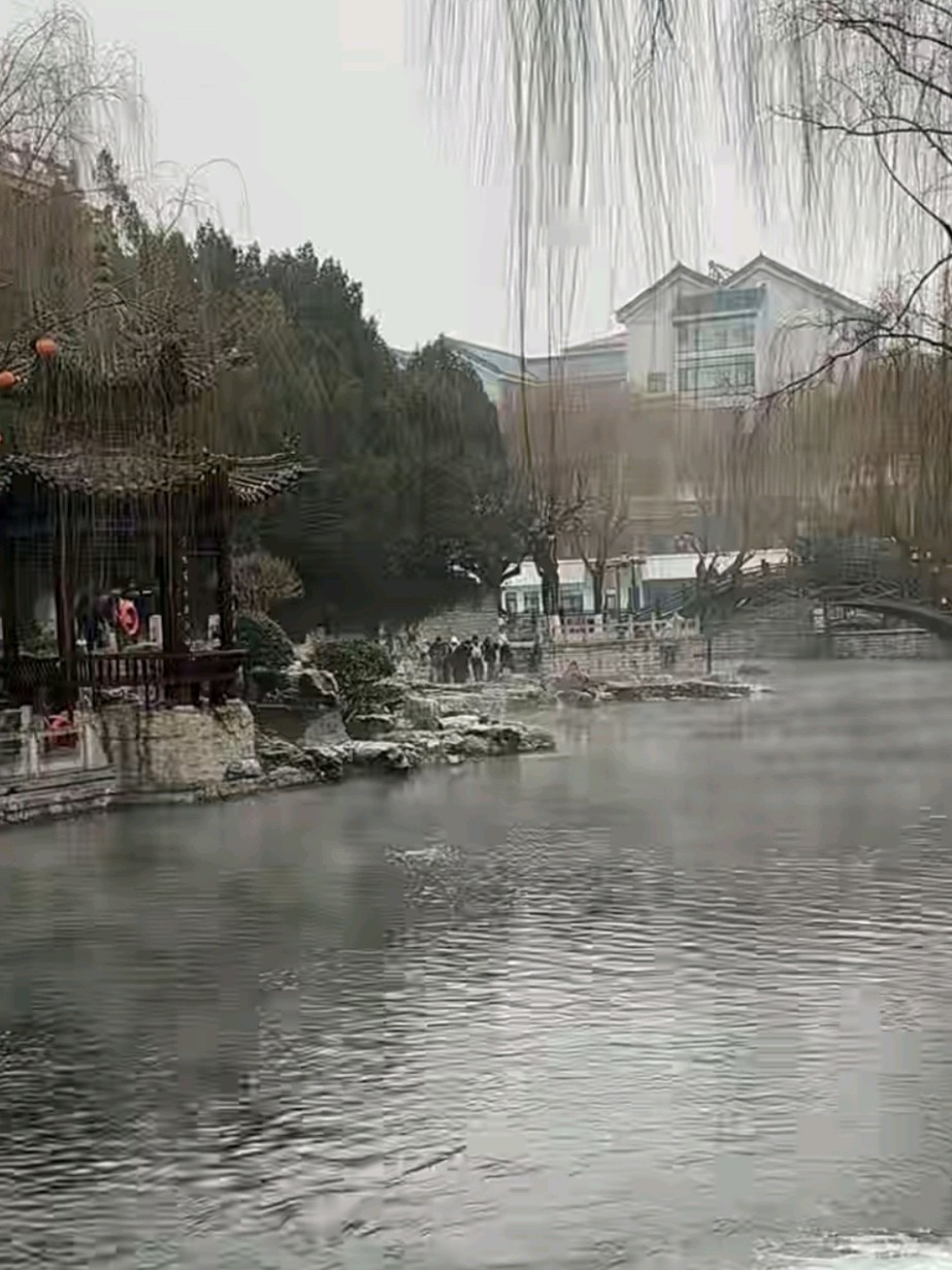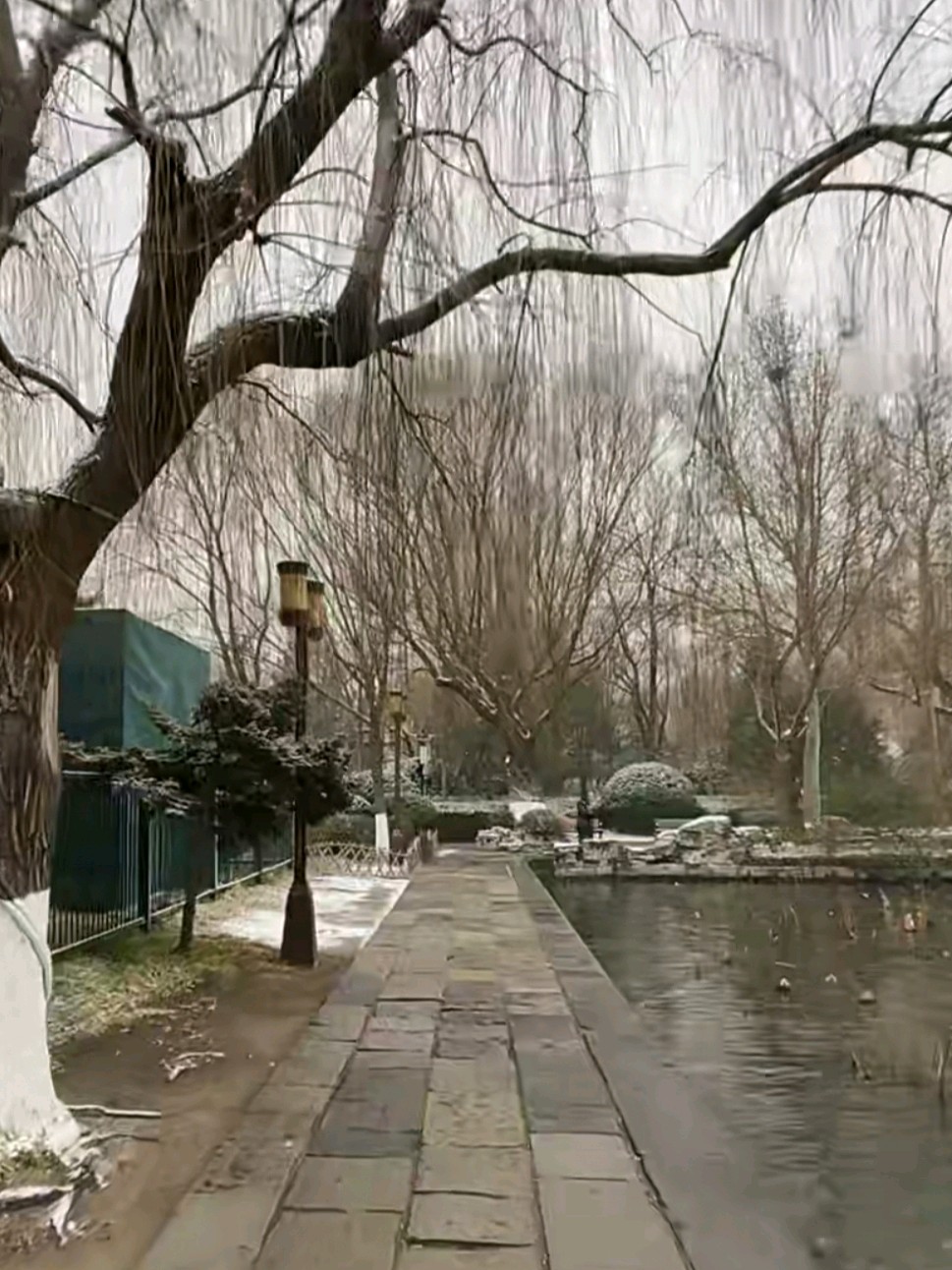 ❄️ 雪落大明湖和护城河畔,水汽裹着细雪漫过湖面,柳树的枝条在烟霭里轻晃,像一幅晕开的水墨画。 沿着湖边的石板路走,远处的历下亭在雾里只剩轮廓,忽然懂了古人说的“湖光山色共一楼”。