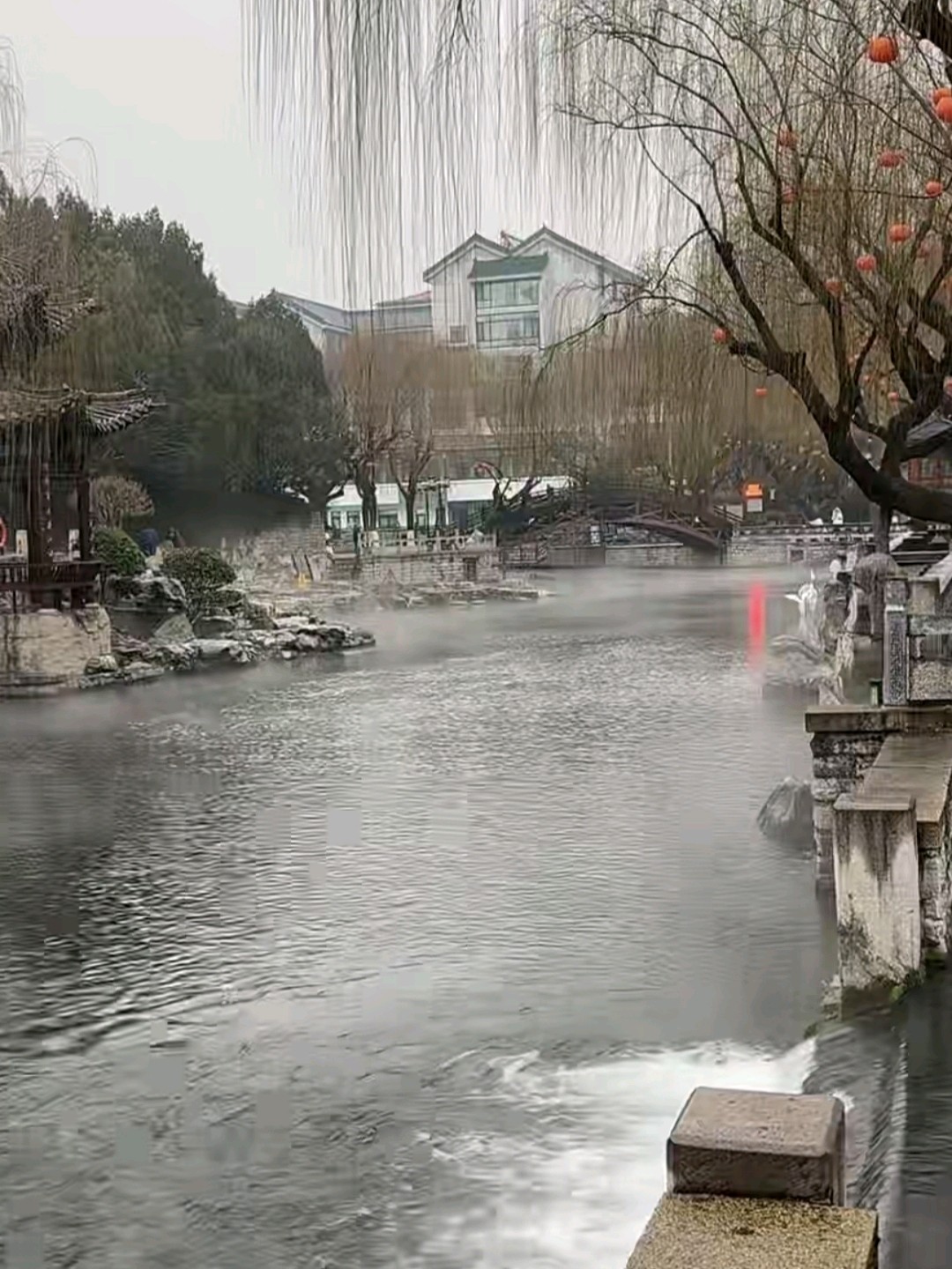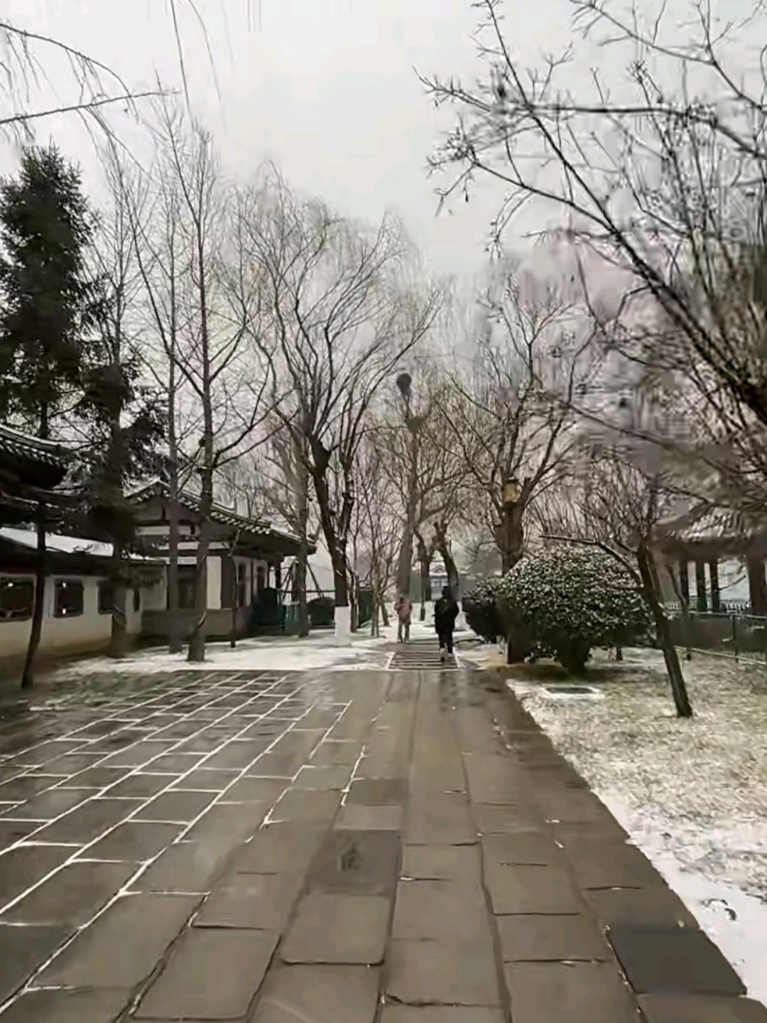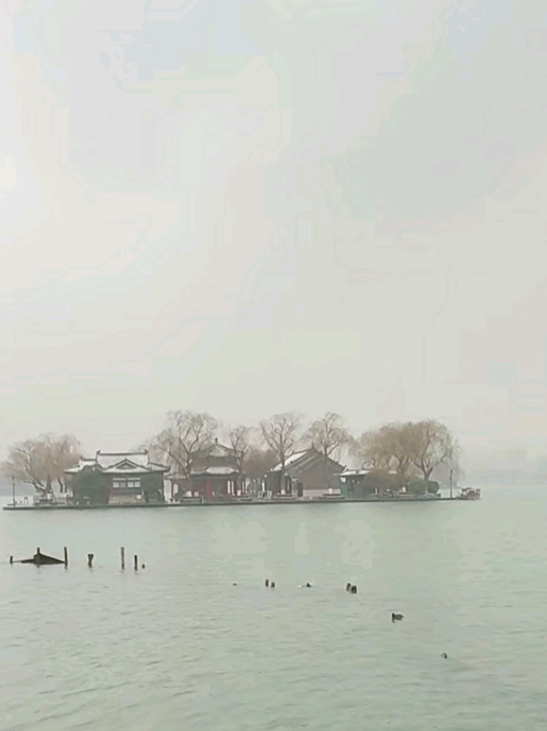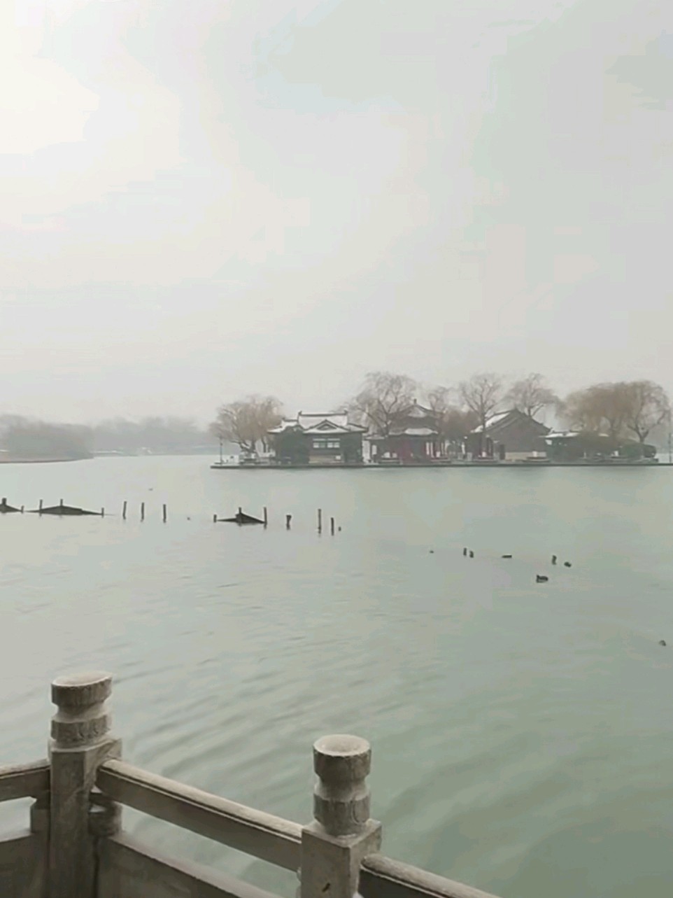 ❄️ 雪落大明湖和护城河畔,水汽裹着细雪漫过湖面,柳树的枝条在烟霭里轻晃,像一幅晕开的水墨画。 沿着湖边的石板路走,远处的历下亭在雾里只剩轮廓,忽然懂了古人说的“湖光山色共一楼”。