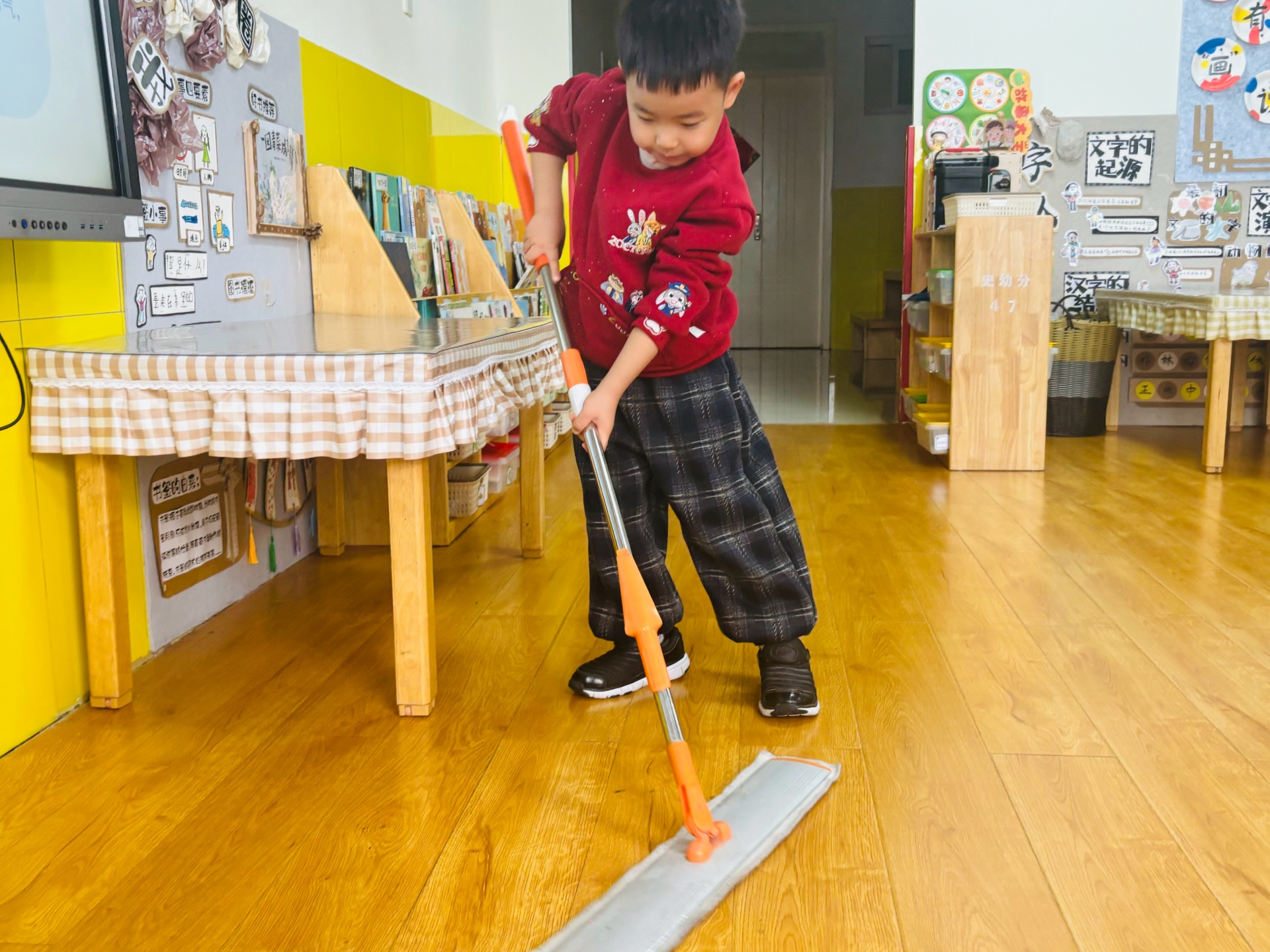 除尘焕新,扫去旧岁迎吉祥。老师们结合民俗传统,带领孩子们化身“环保小卫士”,分工清扫教室角落、擦拭桌椅和玩具、整理活动区域。孩子们在劳动中体验付出的快乐,理解“扫尘除秽,迎接新春”的内涵,让园所焕发新颜。