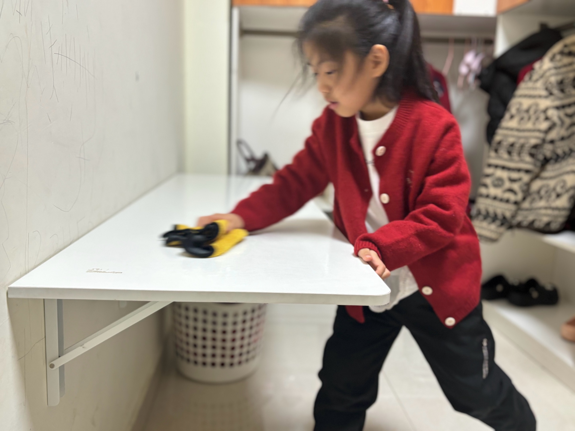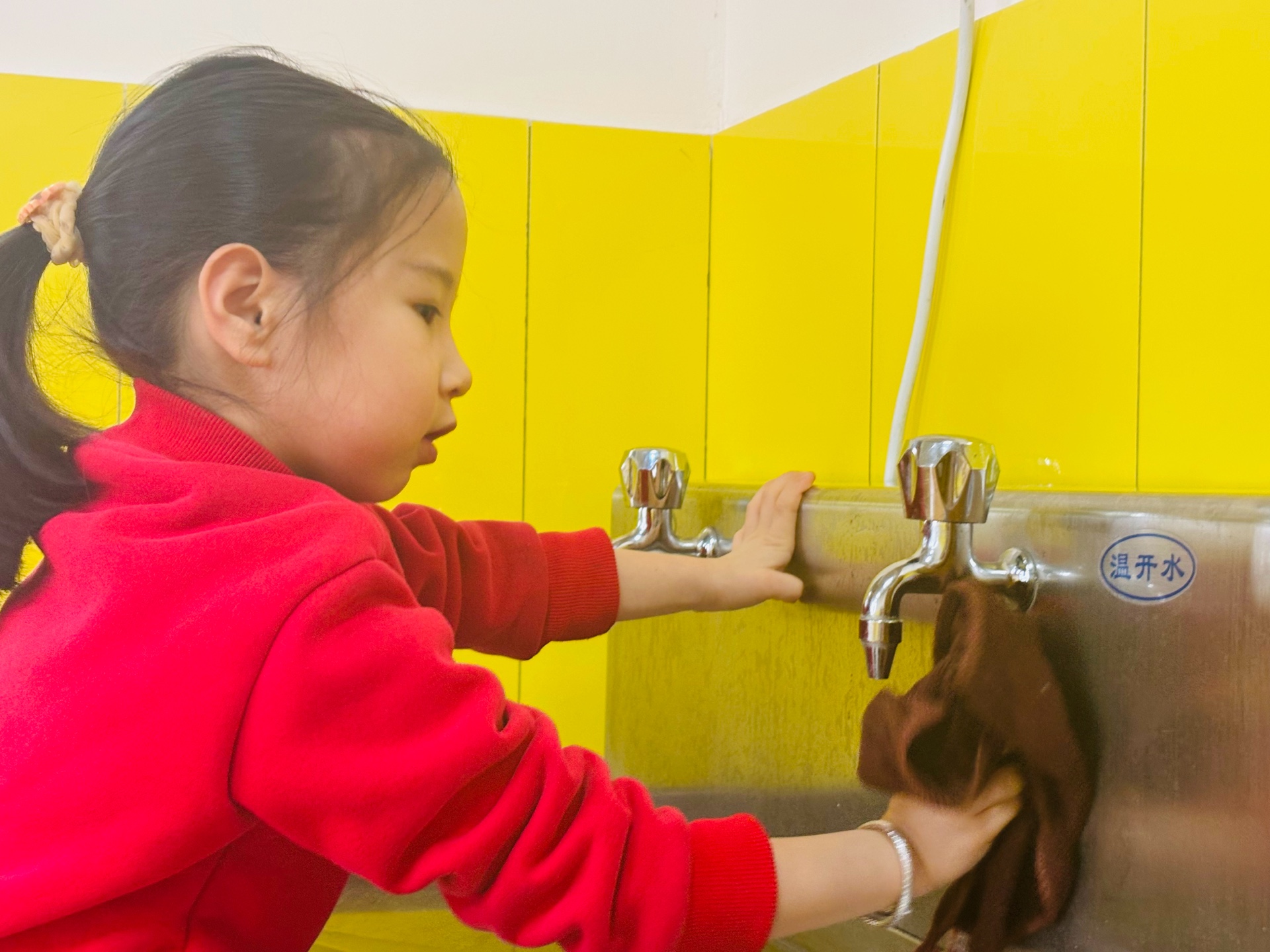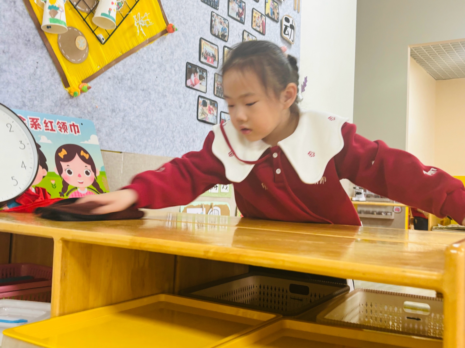 活动伊始,老师通过趣味故事和图片,向孩子们讲解了“除尘迎新”的由来和寓意,告诉孩子们除尘不仅是清洁环境,更是扫除旧岁的不顺,迎接新年的美好期盼。听完讲解,孩子们跃跃欲试,纷纷拿出提前准备的清洁工具:小抹布、迷你水桶、塑料清洁盆等一应俱全,模样既可爱又认真。