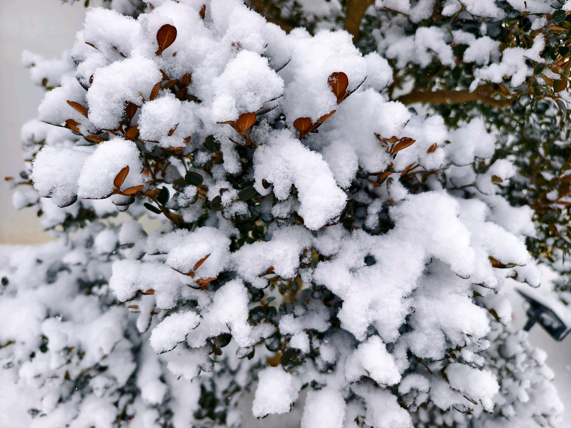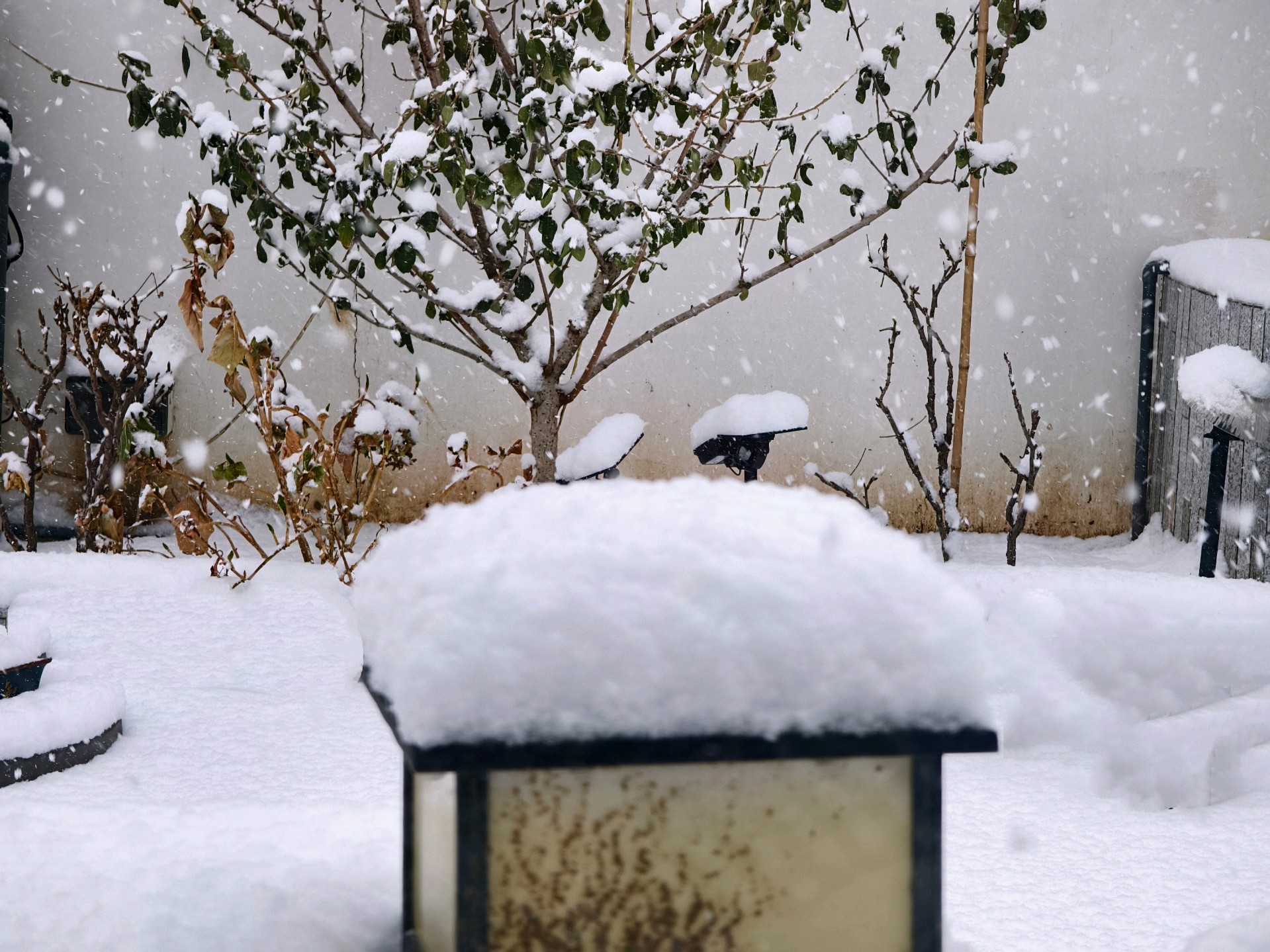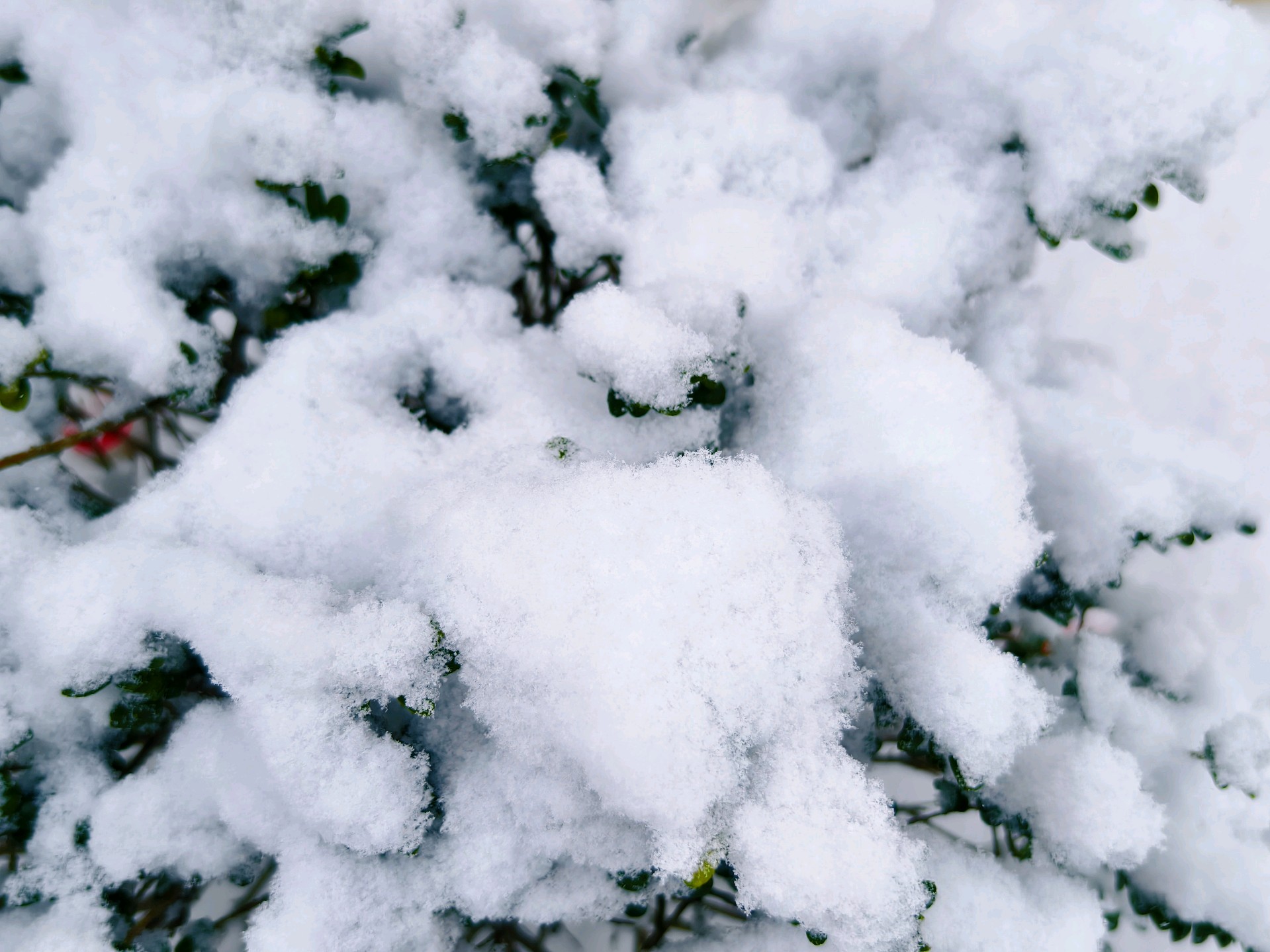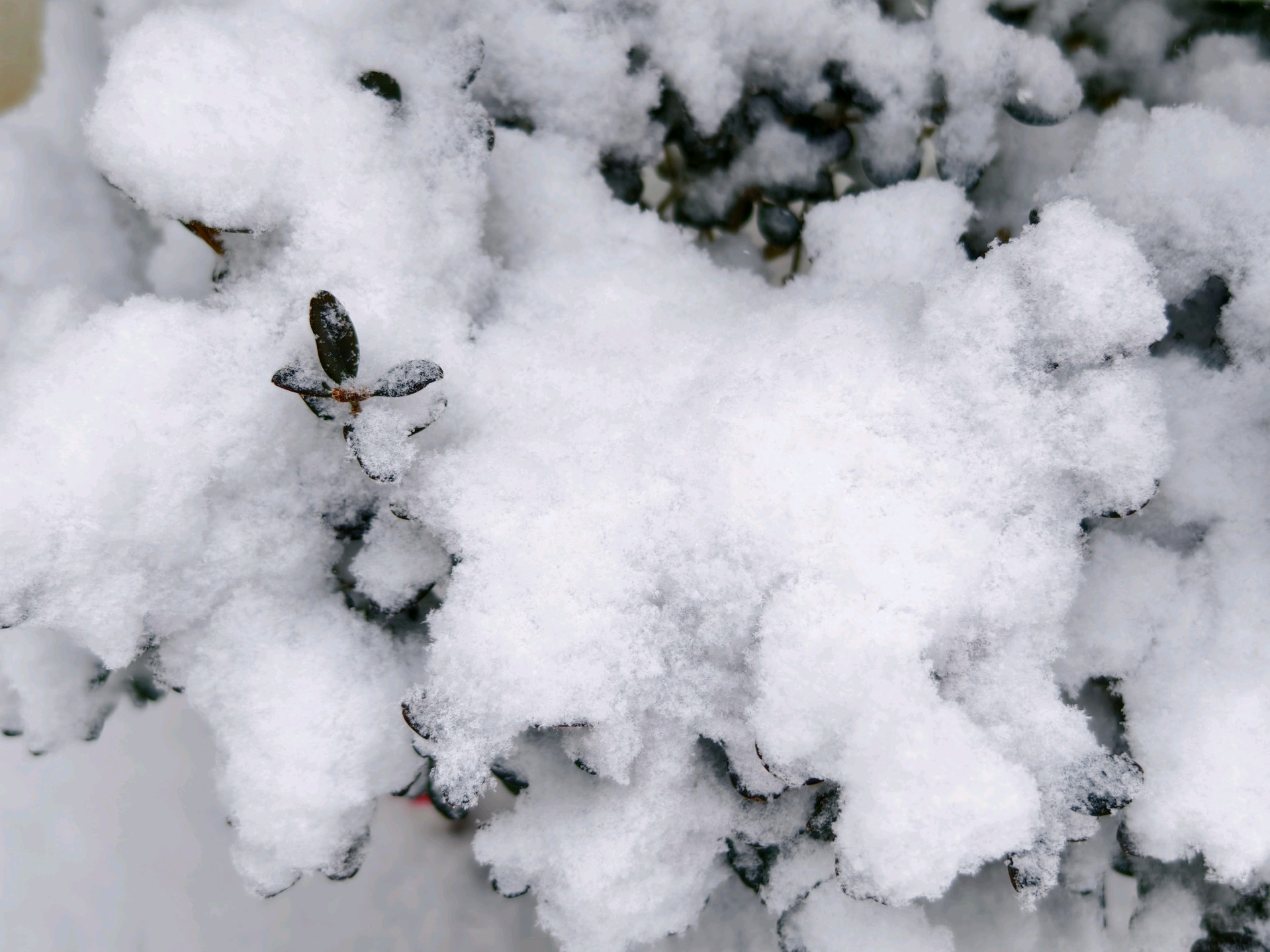 今天是腊月初一。昨天下了一场雪,今天的雪比昨天还要大,厚度在五六公分左右。这是2026年第三场雪。拍摄于蓬莱