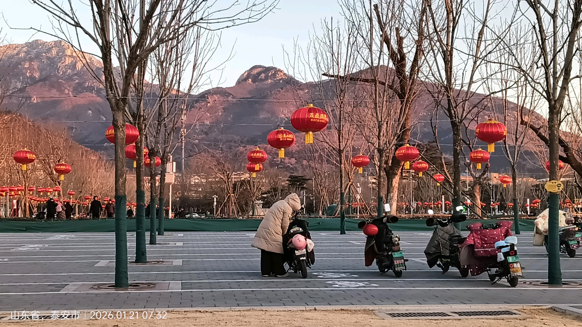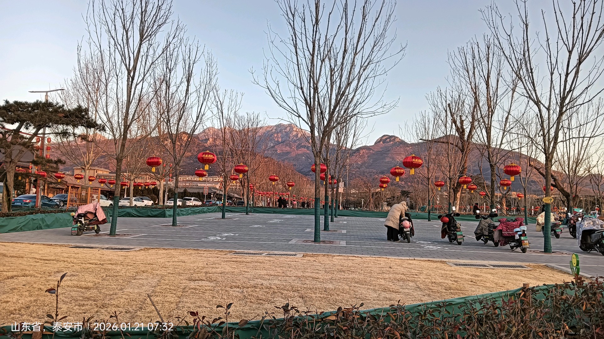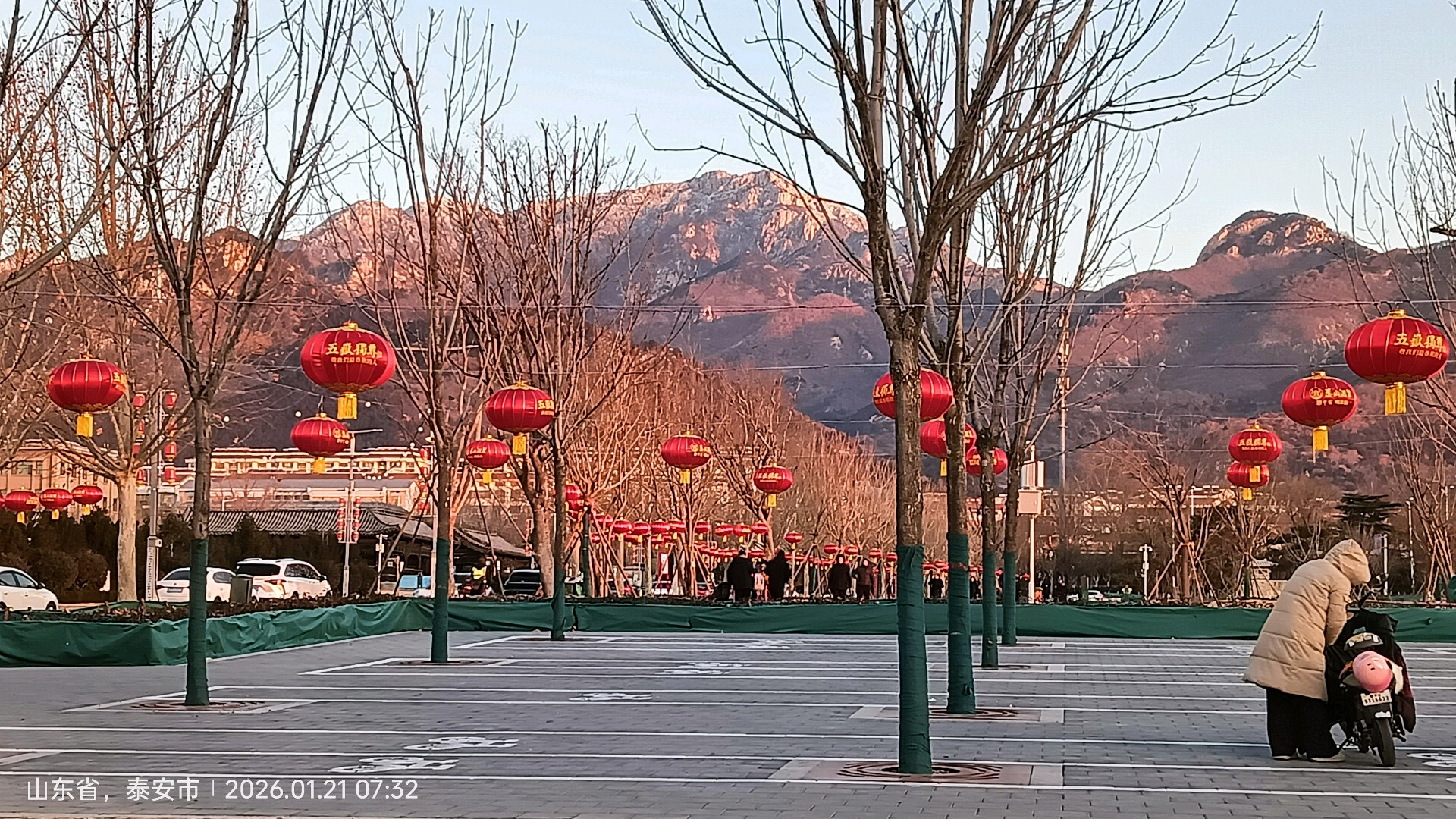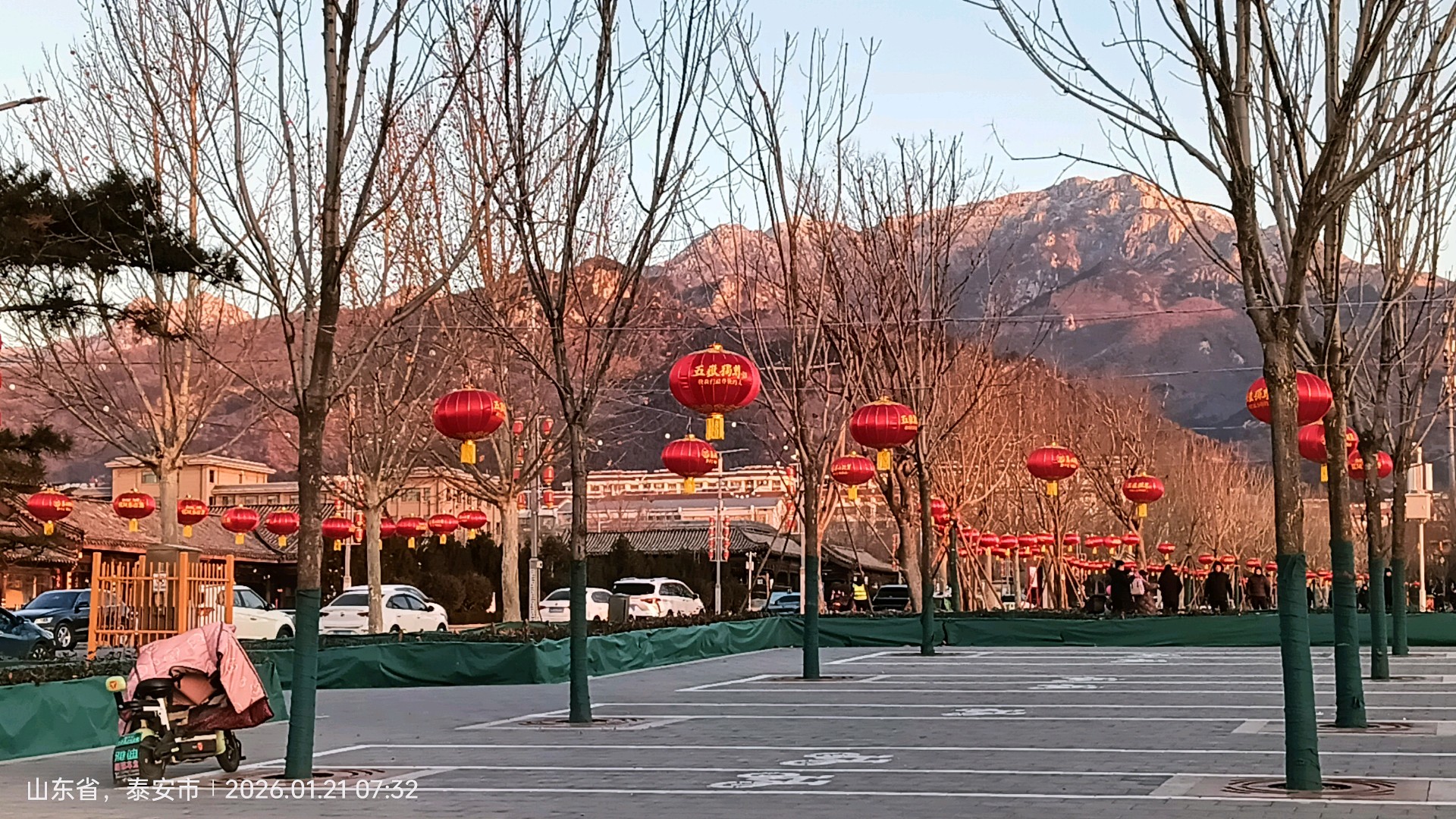 大红灯笼高高挂,欢欢喜喜迎新年!泰安岱庙广场一派喜气洋洋的氛围,红灯笼背后的五岳独尊中华泰山,景色格外迷人!