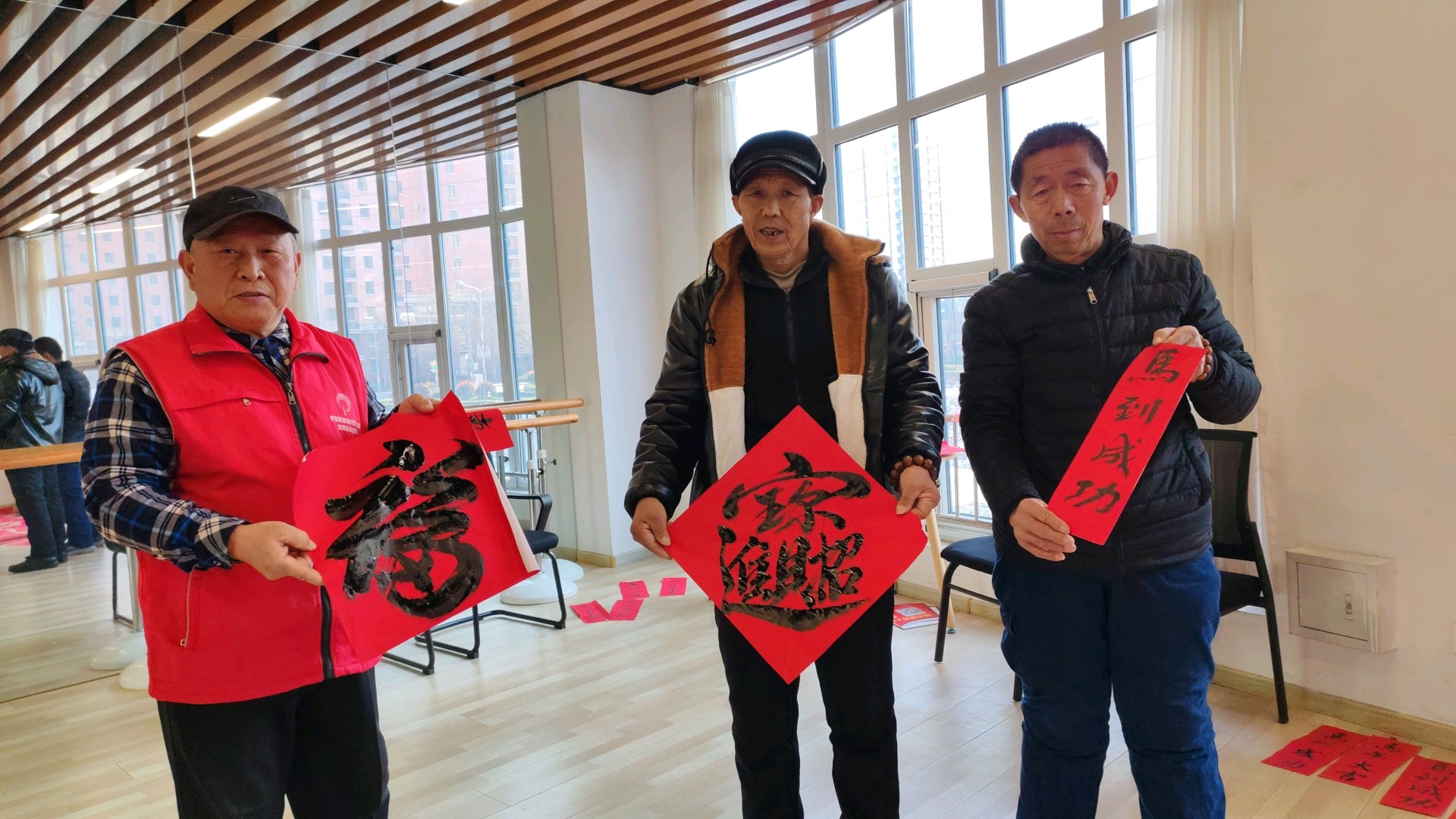 笔墨凝爱心,送福暖人心。待百余幅福字与春联创作完成后,志愿者与社工组成“送福小分队”,带着红彤彤的祝福奔赴A1社区,为孤寡老人们上门送福、贴福。“谭大爷,我们来给您贴福啦,祝您马年健康平安!”敲开老人家门,志愿者们细心将福字贴在门框中央,把春联铺展在墙面,瞬间为冷清的屋子添了浓醇年味。