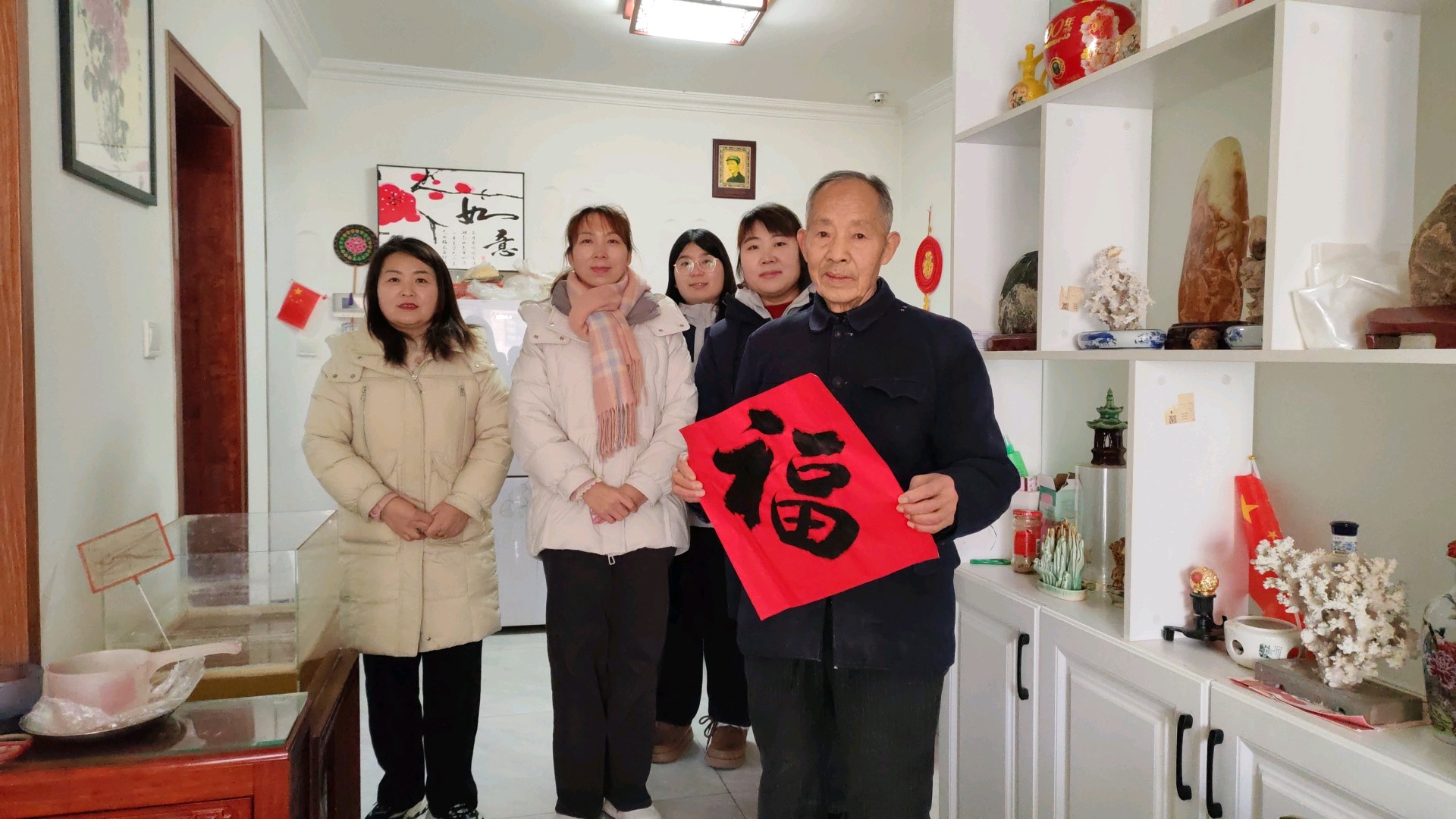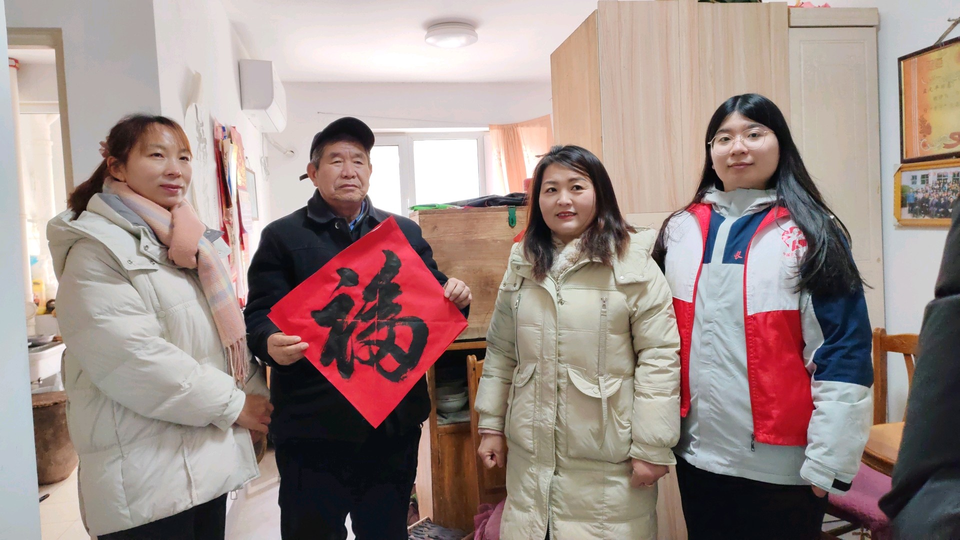 走访中,大家与老人们促膝谈心,询问饮食起居与身体状况,叮嘱冬季保暖和用火安全。看到志愿者们忙前忙后,山东好人周长富大爷眼眶泛红:“每年都盼着你们来,这福字一贴,心里亮堂多了,比自家孩子还贴心!”一句句真诚的道谢,一张张欣慰的笑脸,让志愿服务更具温度。