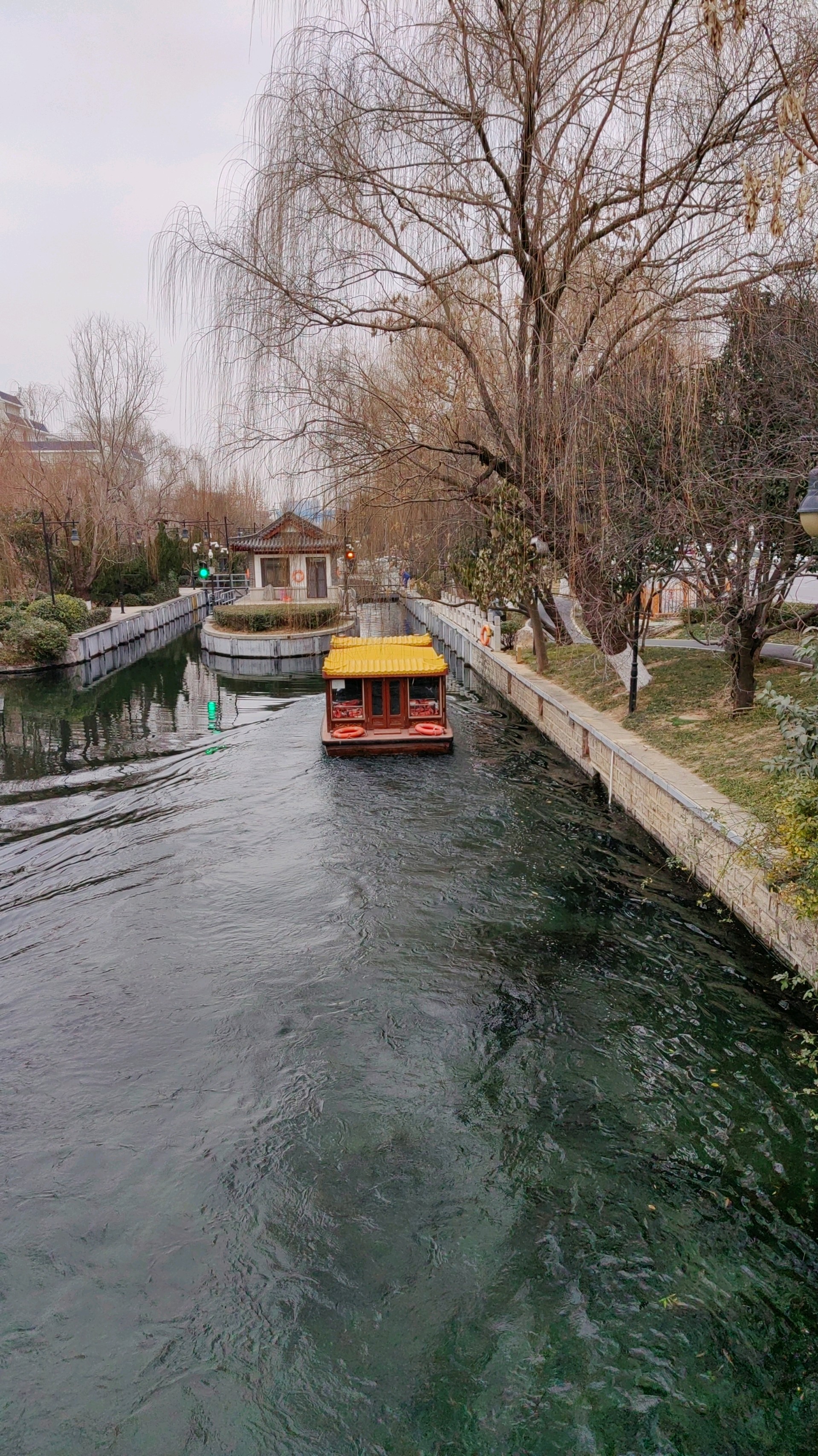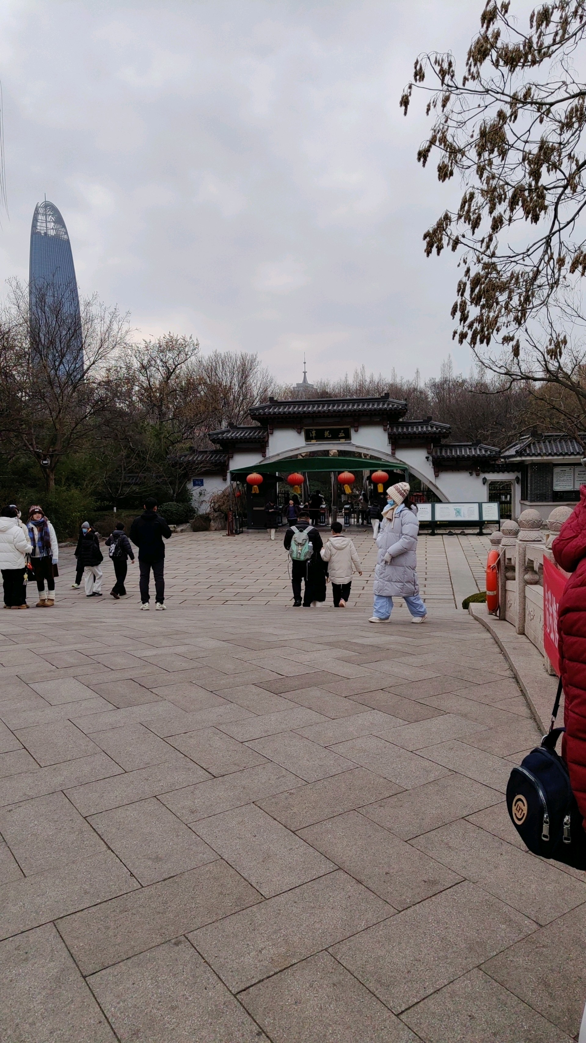 汽笛声声游船过,龙潭东门游客多。