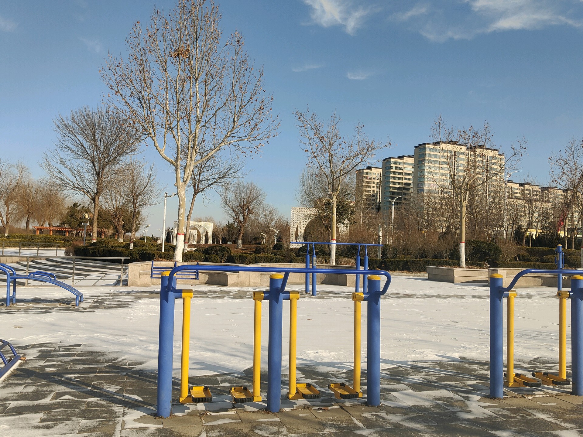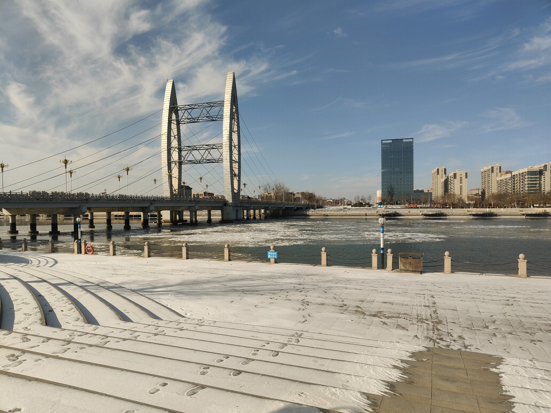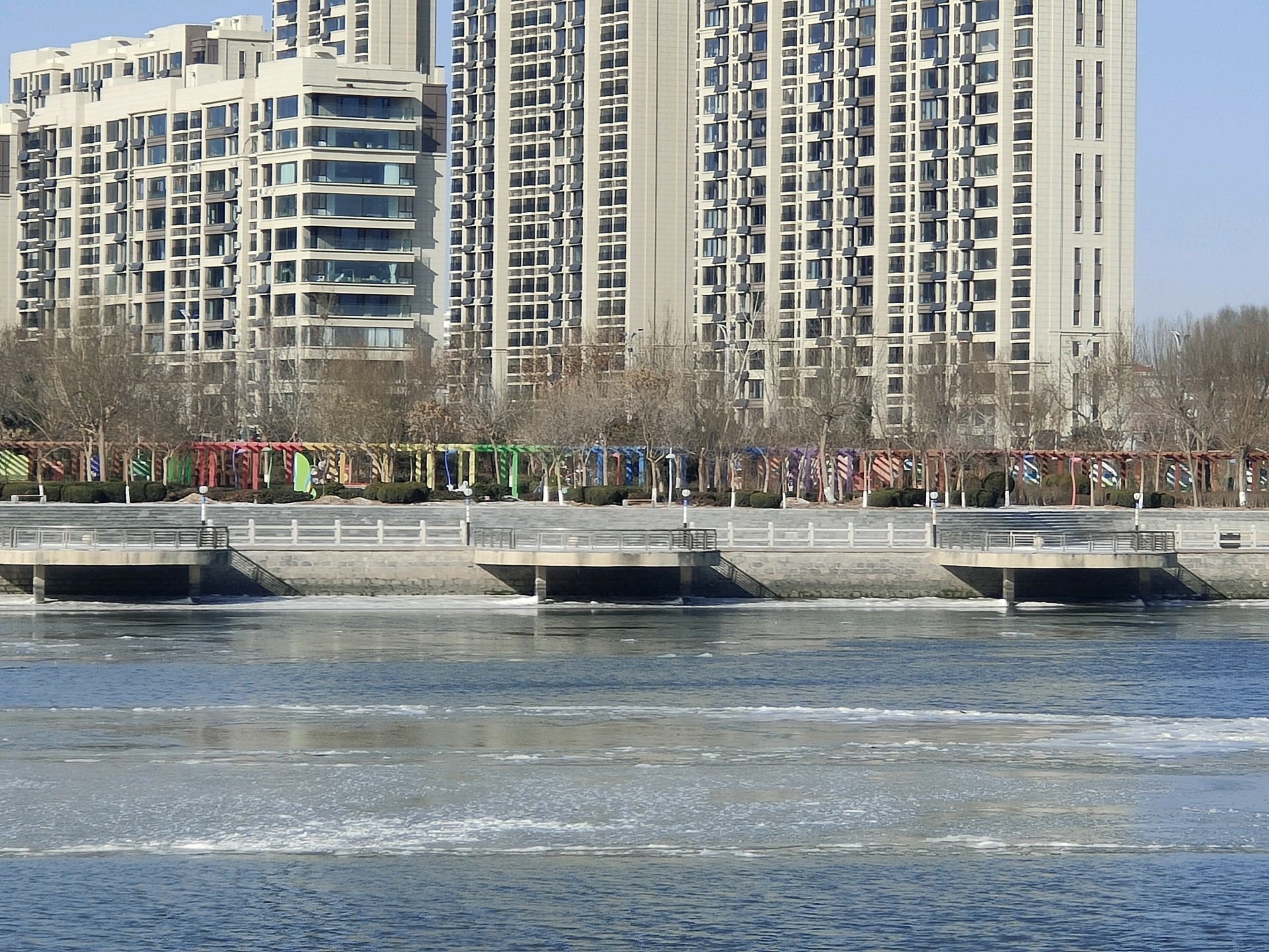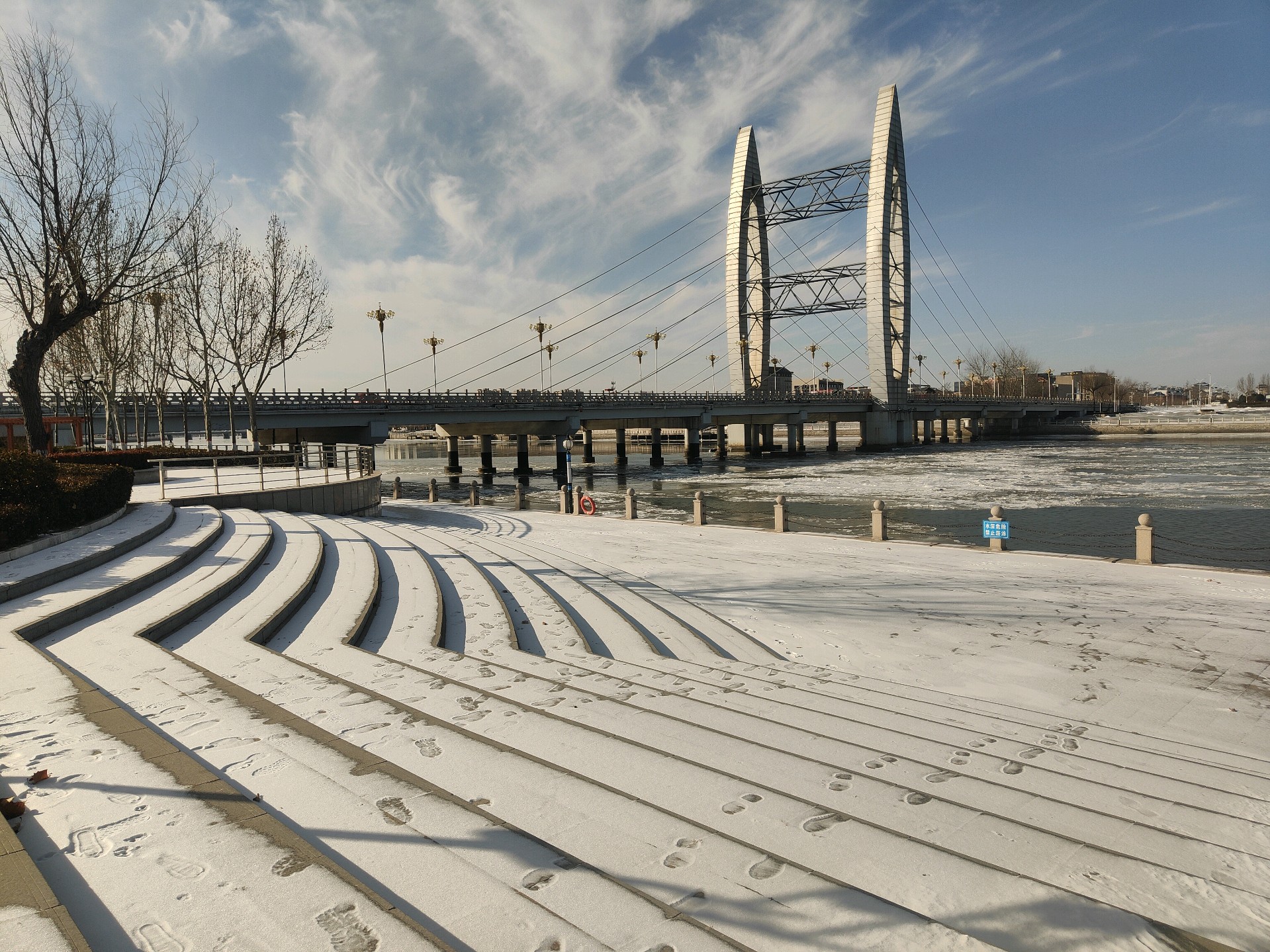 沾化徒骇河公园风景一角,冬季风景如画景色宜人壮观!我的家乡就是这么美!