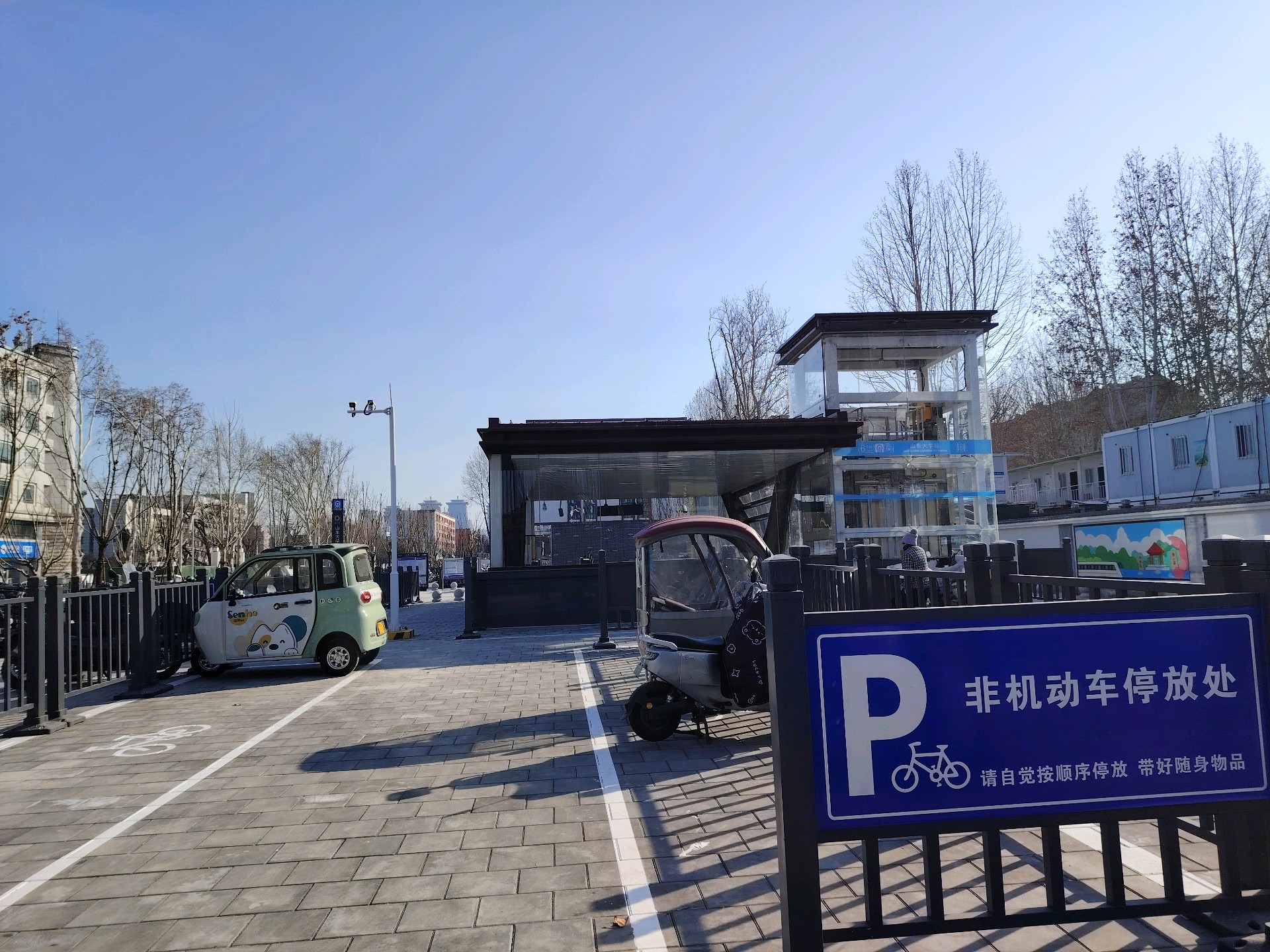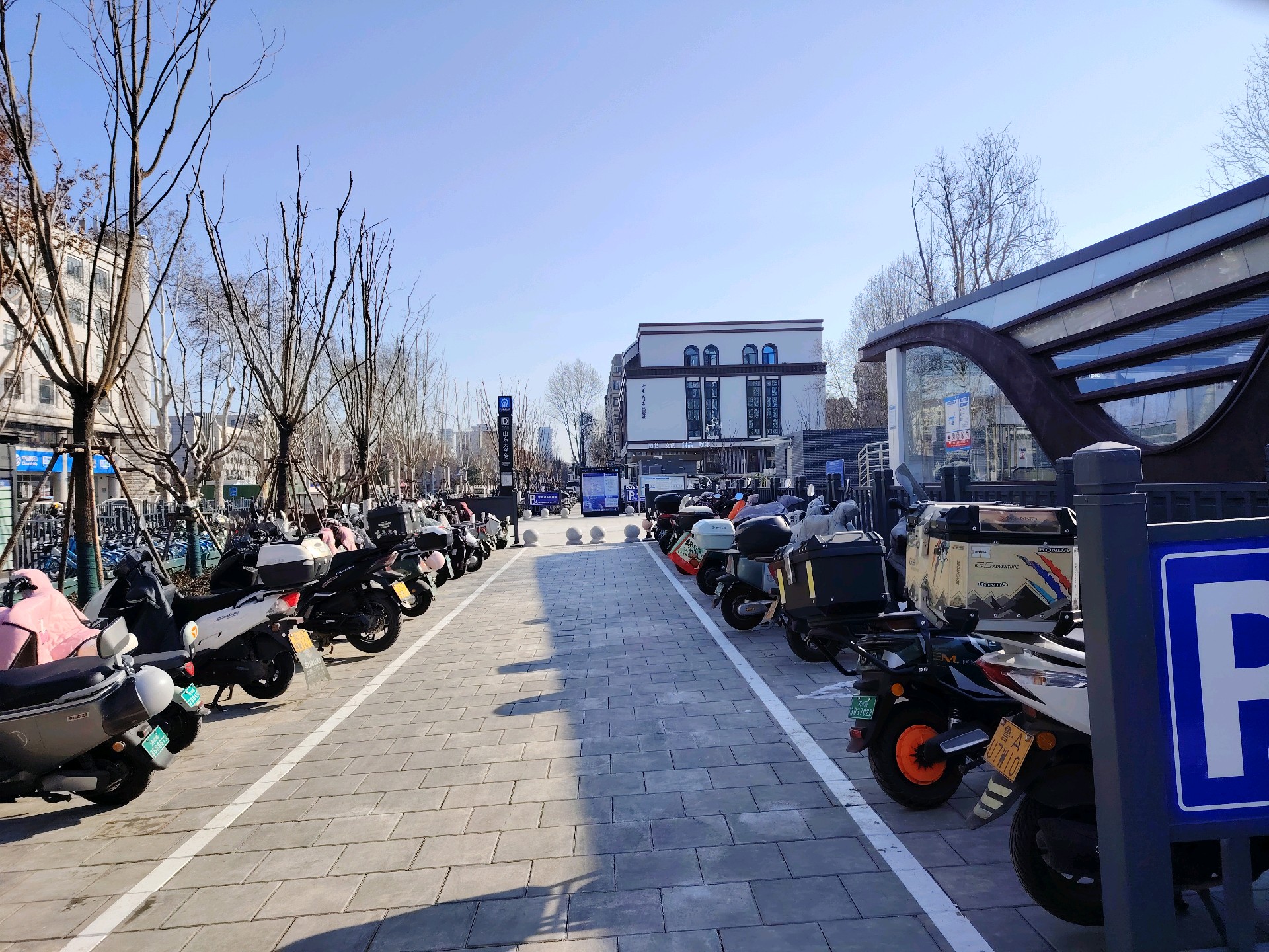 今早路过6号线山东大学地铁口,阳光下的多个非机动车停车场整整齐齐,一辆辆摩托车、电动车、单车、自行车都有序地停放着,让我格外感到了温暖。