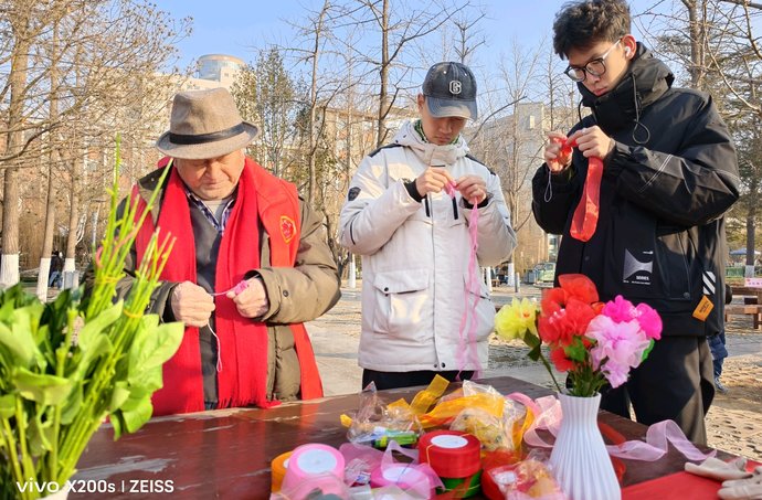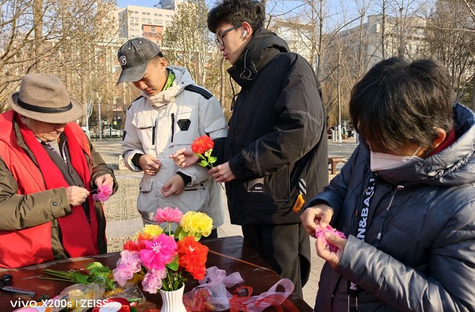 我和弟弟手把手教老人和孩子缝制绢花,耐心纠正动作,鼓励孩子们模仿尝试。指尖虽显笨拙,却满是认真。针线穿梭间,串联起手工的乐趣,拉近了代际距离,让这个周末上午满是治愈与温情。