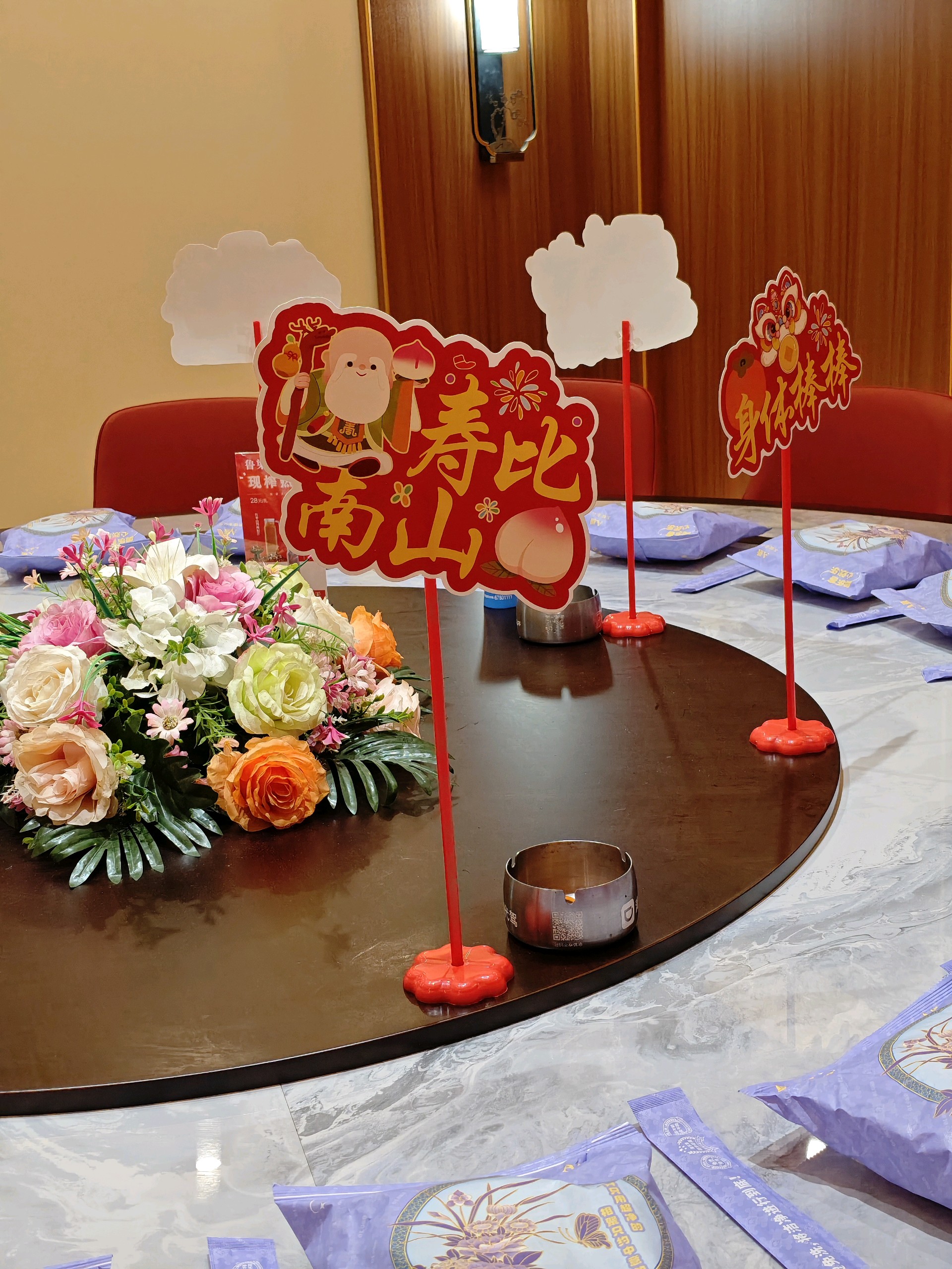 老两口成为众人羡慕的对象,衷心祝愿老人家健康长寿。壽桃映红,喜宴绽彩。萬事如意春常在,生日快乐福无疆。
