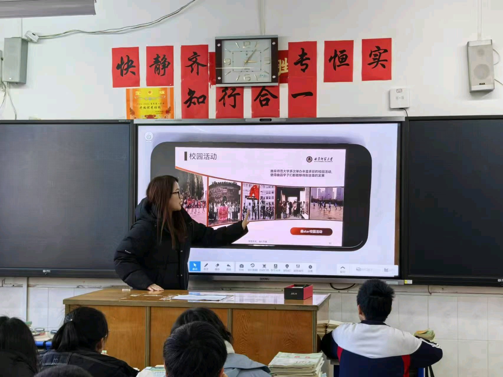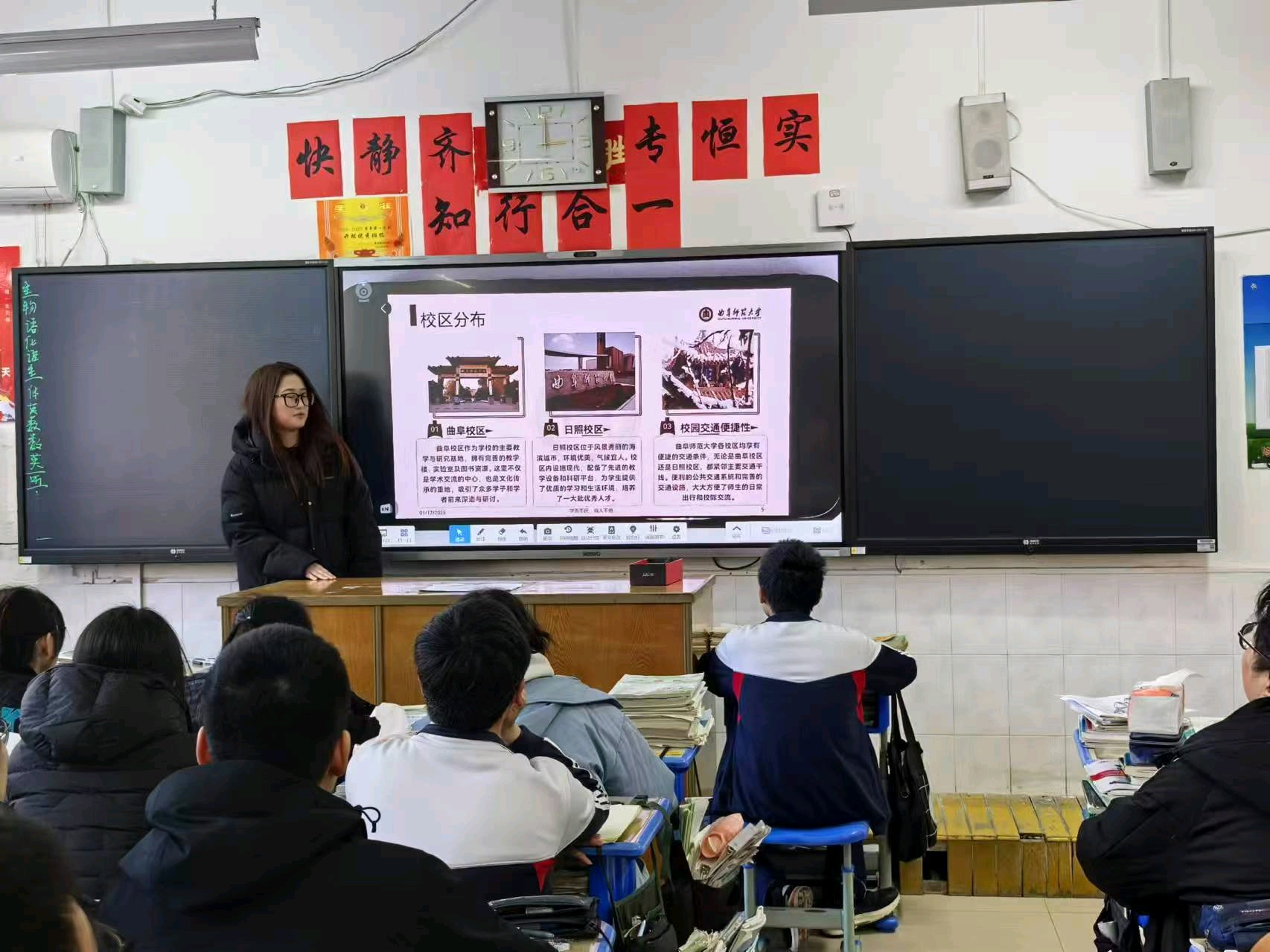 近日,曲阜师范大学历史文化学院寒假社会实践团走进寿光现代中学,为正值高考备考关键期的高三学子带来一场兼具文化质感与实用价值的升学宣讲活动。此次活动以“搭建高校与高中沟通桥梁、助力学子明晰升学方向”为核心目标,实践队员们结合历史文化学院的专业特色与学校的办学积淀,用生动鲜活的讲述,让学子们全方位、多角度了解这所齐鲁名校的独特魅力与育人实力。 实践队员从学校70年的办学历程切入,系统介绍双校区的鲜明特色与文化底蕴:曲阜校区扎根孔子故里,毗邻孔庙、孔府等世界文化遗产,校园内亭台楼阁古朴典雅,儒家文化浸润日常,国学经典诵读、非遗技艺体验、传统文化讲座等活动常态化开展,为学子营造沉浸式文化学习环境;日照校区坐落于黄海之滨,校园布局现代大气,海洋文化与学术氛围交融,拥有先进的教学科研设施、开阔的海滨景观,为学子提供多元包容的成长空间。依托历史文化学院在历史学、文化产业等领域的深厚积累,实践队员重点分享了学校“学而不厌、诲人不倦”的校训精神,以及在师范类人才培养、历史文化研究、社会服务等方面的突出成果——作为“齐鲁基础教育师资摇篮”,学校培养的毕业生遍布山东各地中小学,不少已成为教育领域的骨干力量,而历史文化学院的科研团队在儒家文化研究、区域历史考证等方面的成果,也让学子们感受到高校学术研究的魅力。