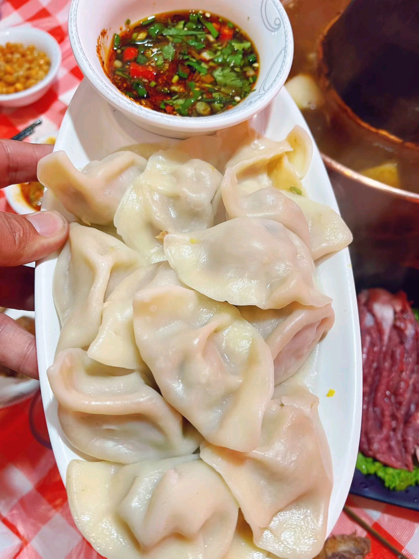 丰盛的腊八节晚餐,有酒有肉,有水饺和腊八蒜,仪式感满满!
