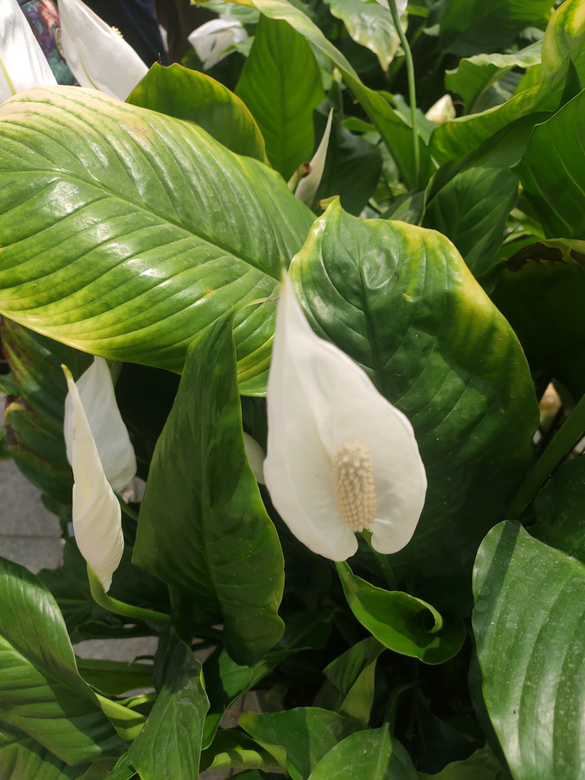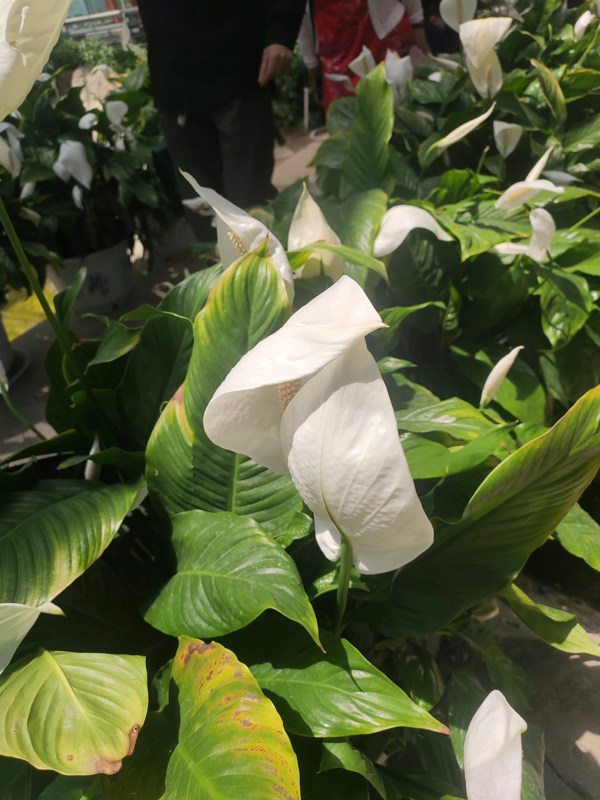 屋外寒风刺骨,屋内百花盛开,娇美的马蹄莲有的含苞待放,有的展开花范露出花蕊,洁白的花朵白如美玉,太美了。