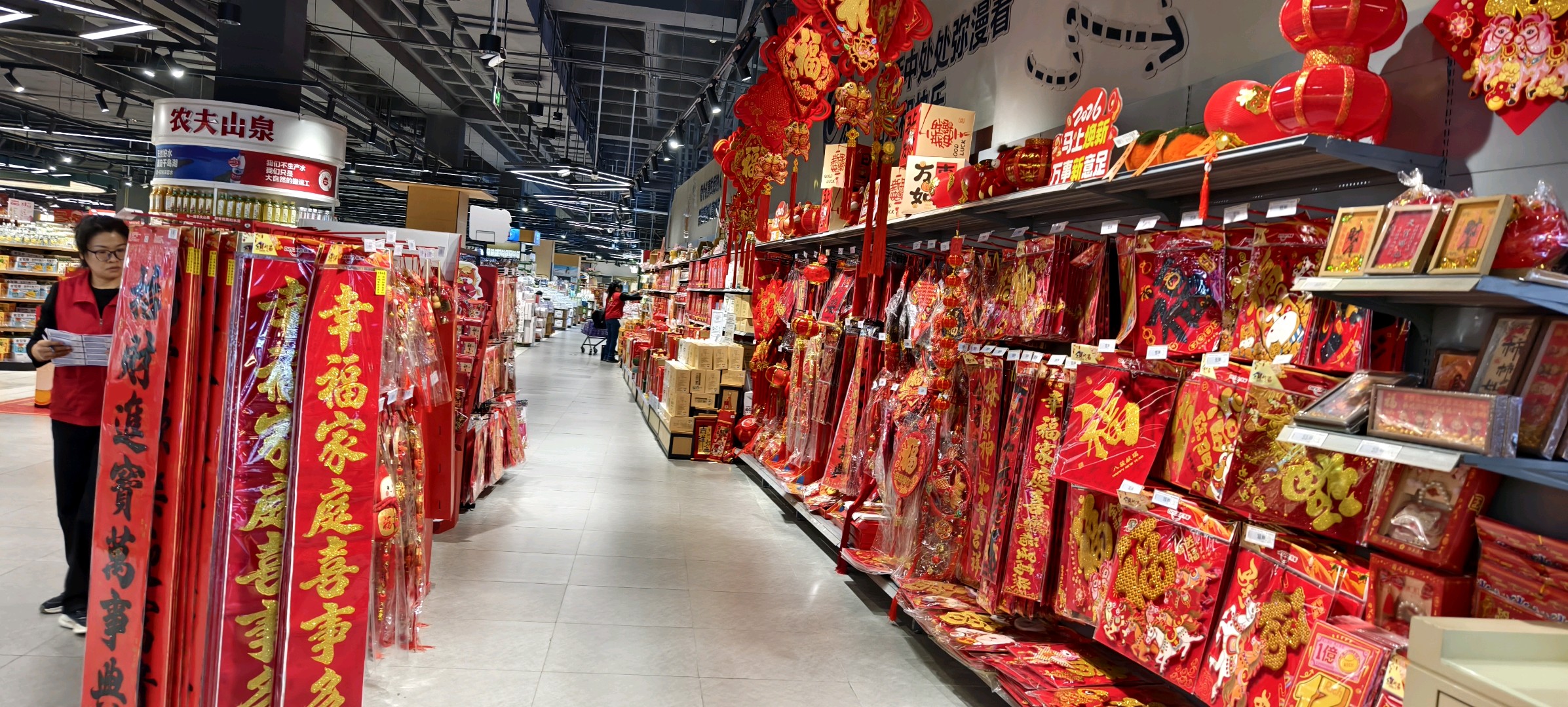 近日各商超年味十足,北园银座商城随手拍,超市新气象,货充足!