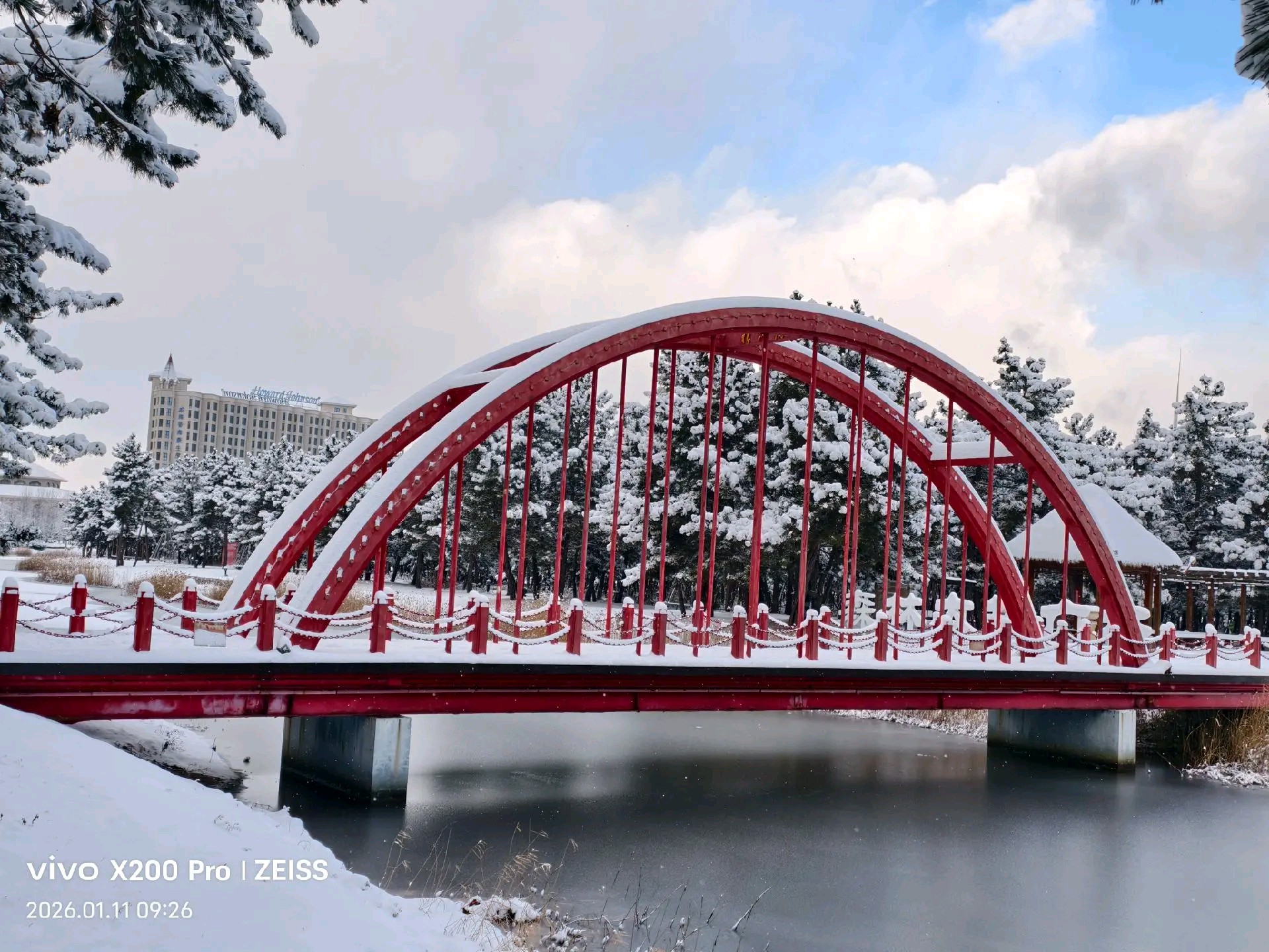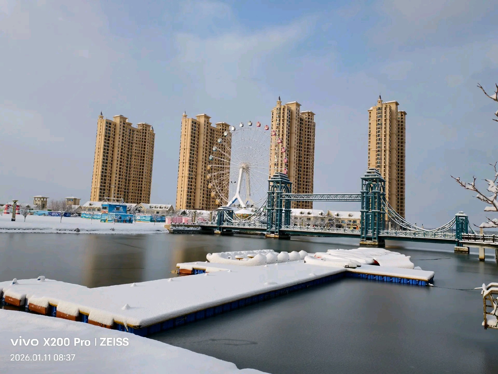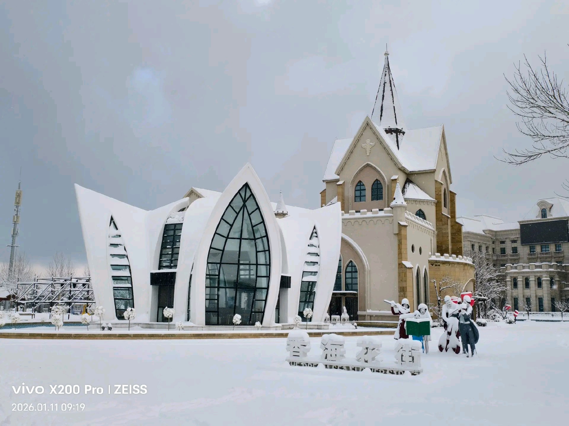 威海市那香海景区美丽的景色与洁白的雪相遇,形成童化般的景色!(祥君)