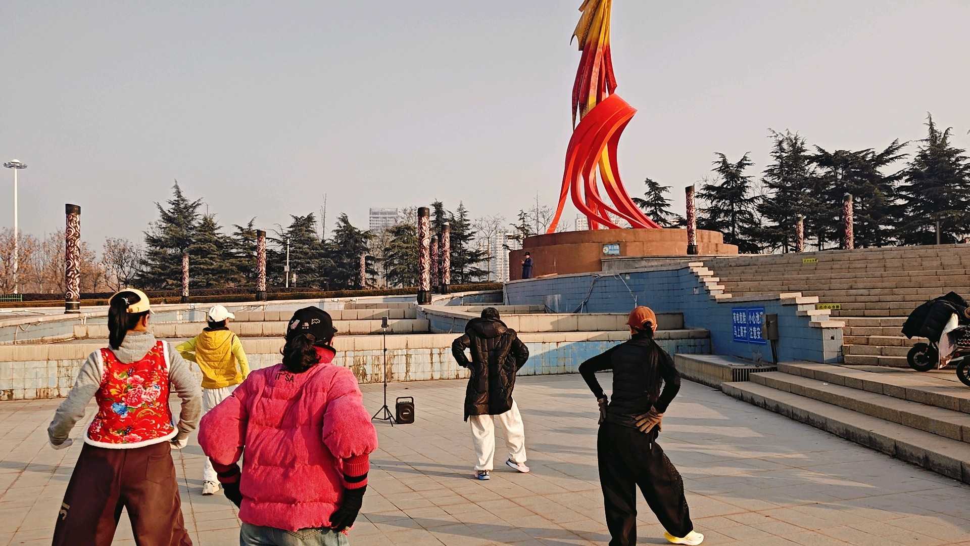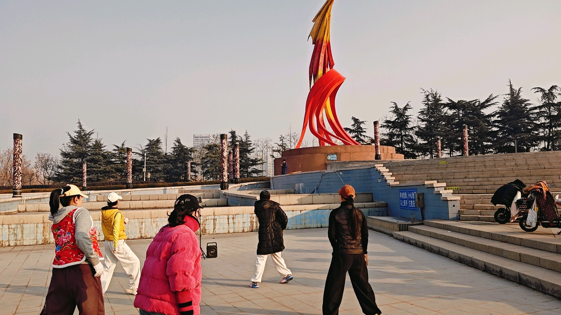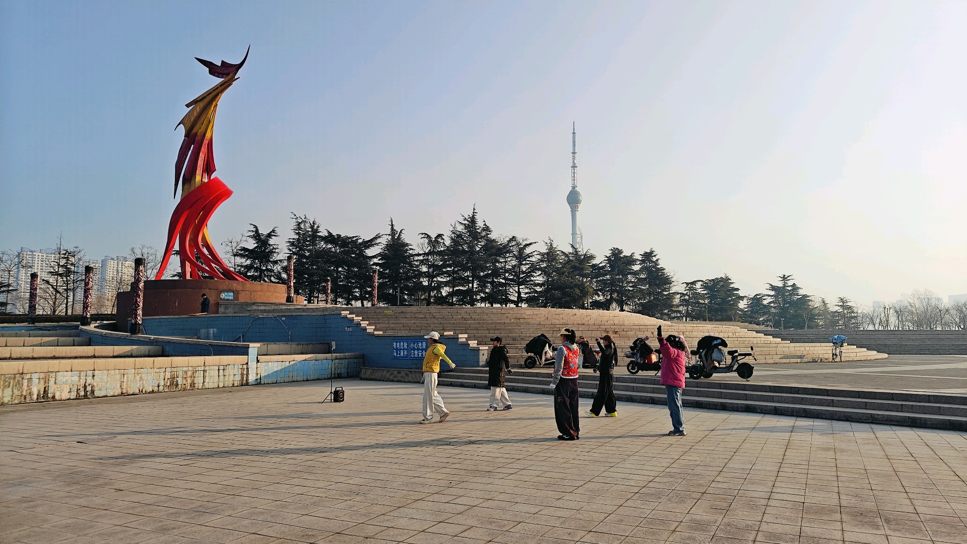腊月时分,姐妹仨漫步在沂河凤凰广场,能感受到独特的冬日氛围与广场的魅力。 凤凰广场位于沂河、祊河、柳青河三河交界处,是山东省十佳文化广场之一 。它依据古代临沂“凤凰城”的文化传说而建,设计以凤凰为主题,筑台于西北,展翼于西南,与沂河构成龙凤呈祥的壮美景观