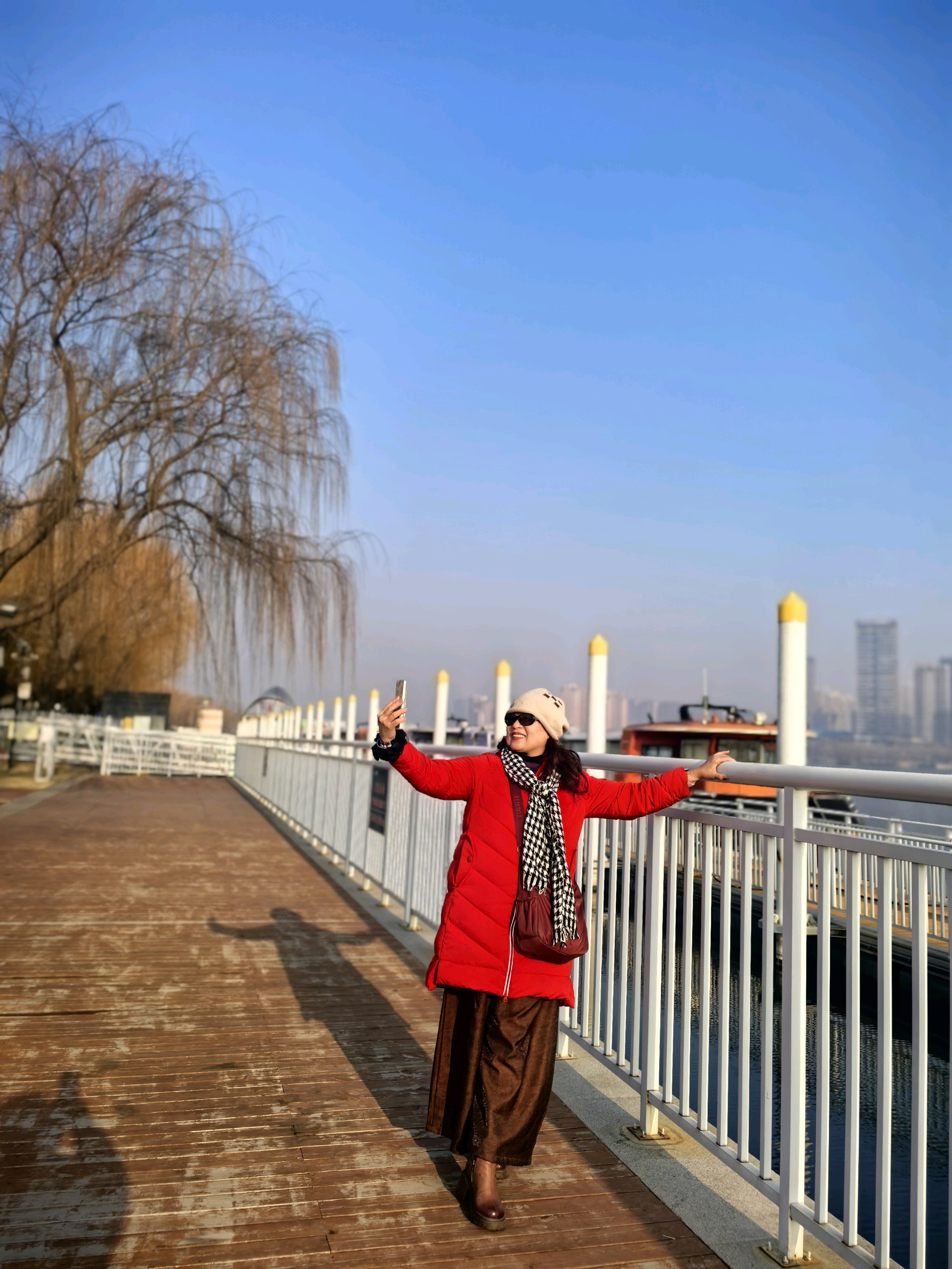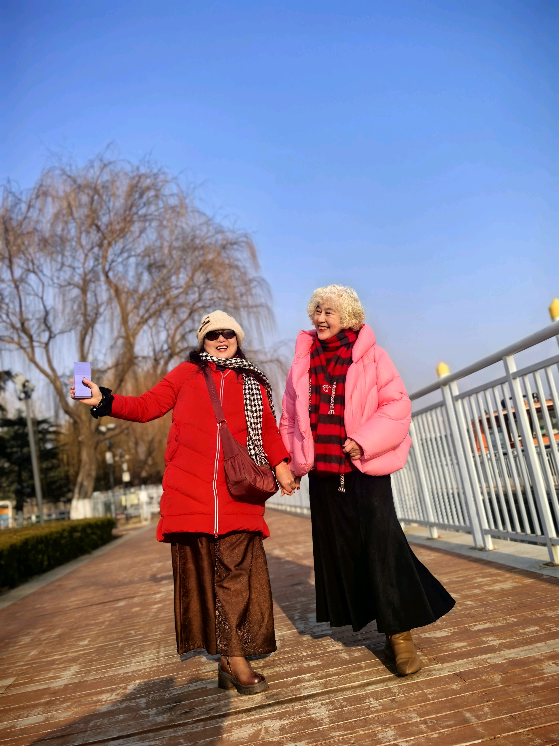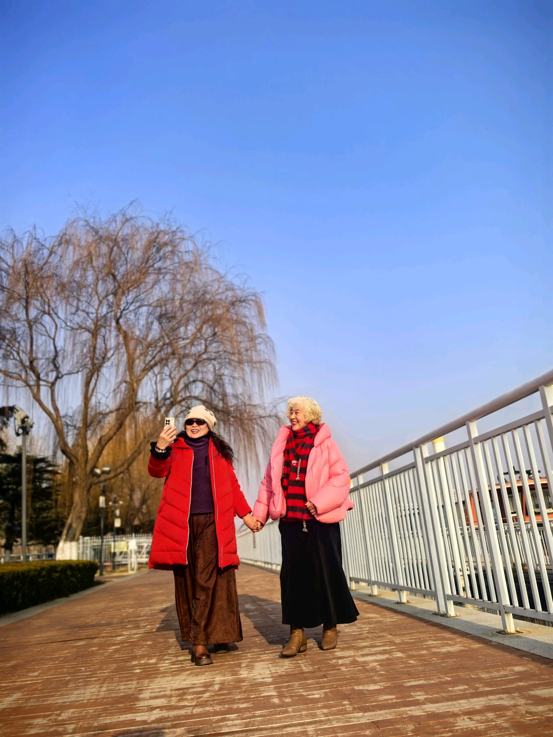 腊月的凤凰广场,虽没有了春夏的繁花似锦,但却有着别样的宁静与美丽。沂河水面可能会有薄冰,阳光洒在冰面上,反射出耀眼的光芒。运气好的话,还能看到从西伯利亚远道而来的红嘴鸥,它们或静立冰面,或振翅掠水,为冬日的广场增添了几分生机。姐妹仨可以沿着滨水步道漫步,欣赏着河边的景色,感受着冬日的微风,十分惬意。