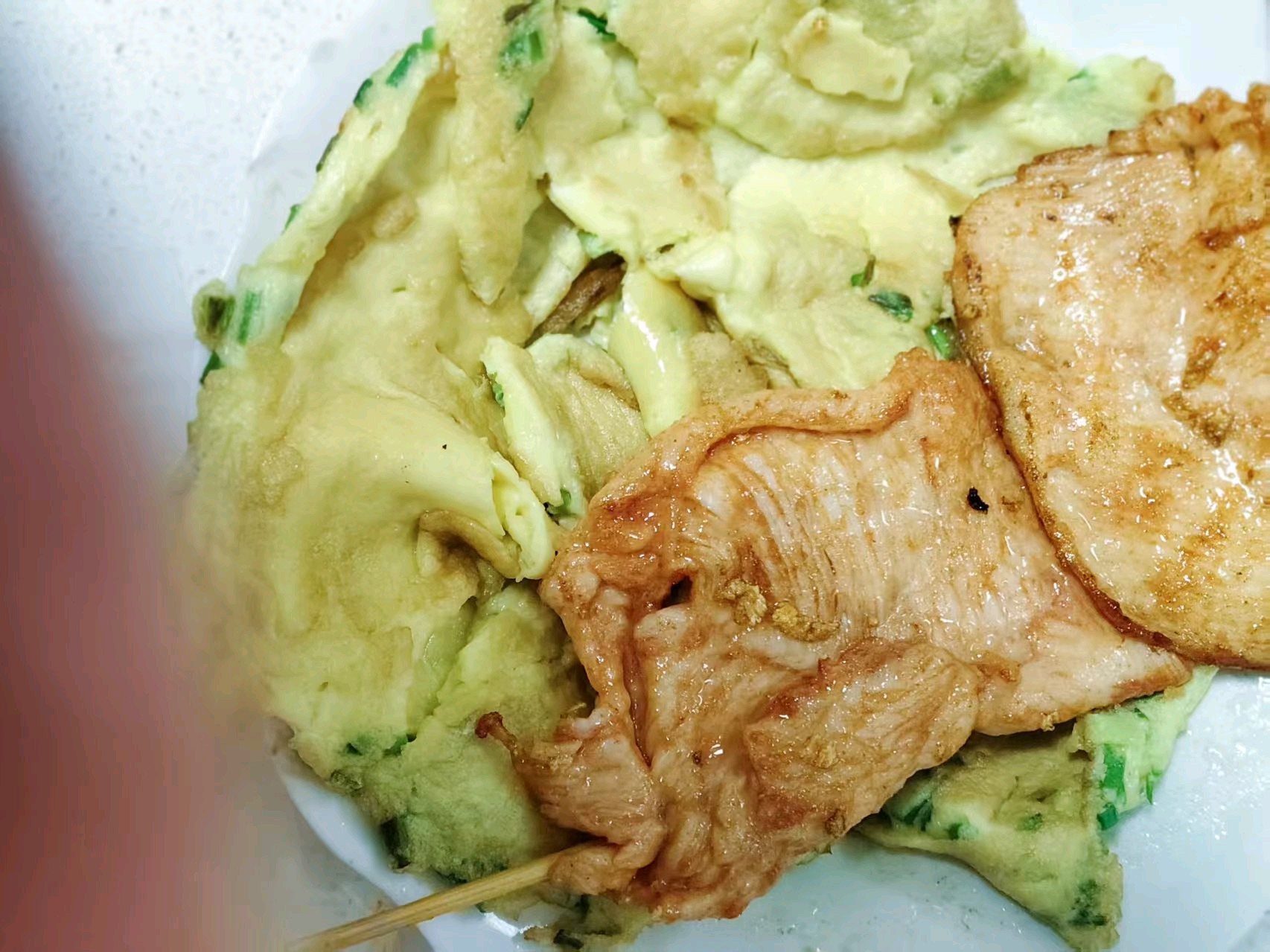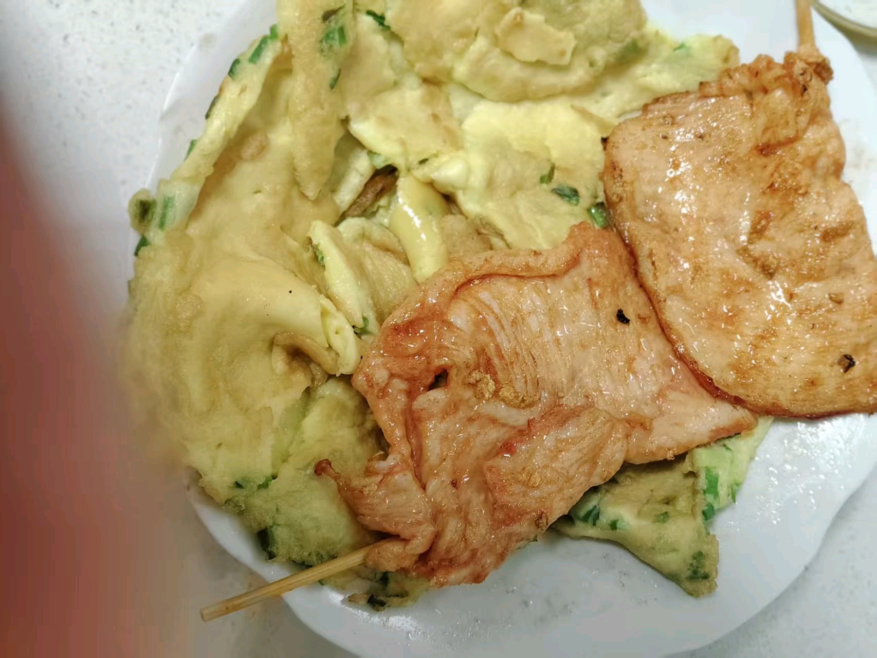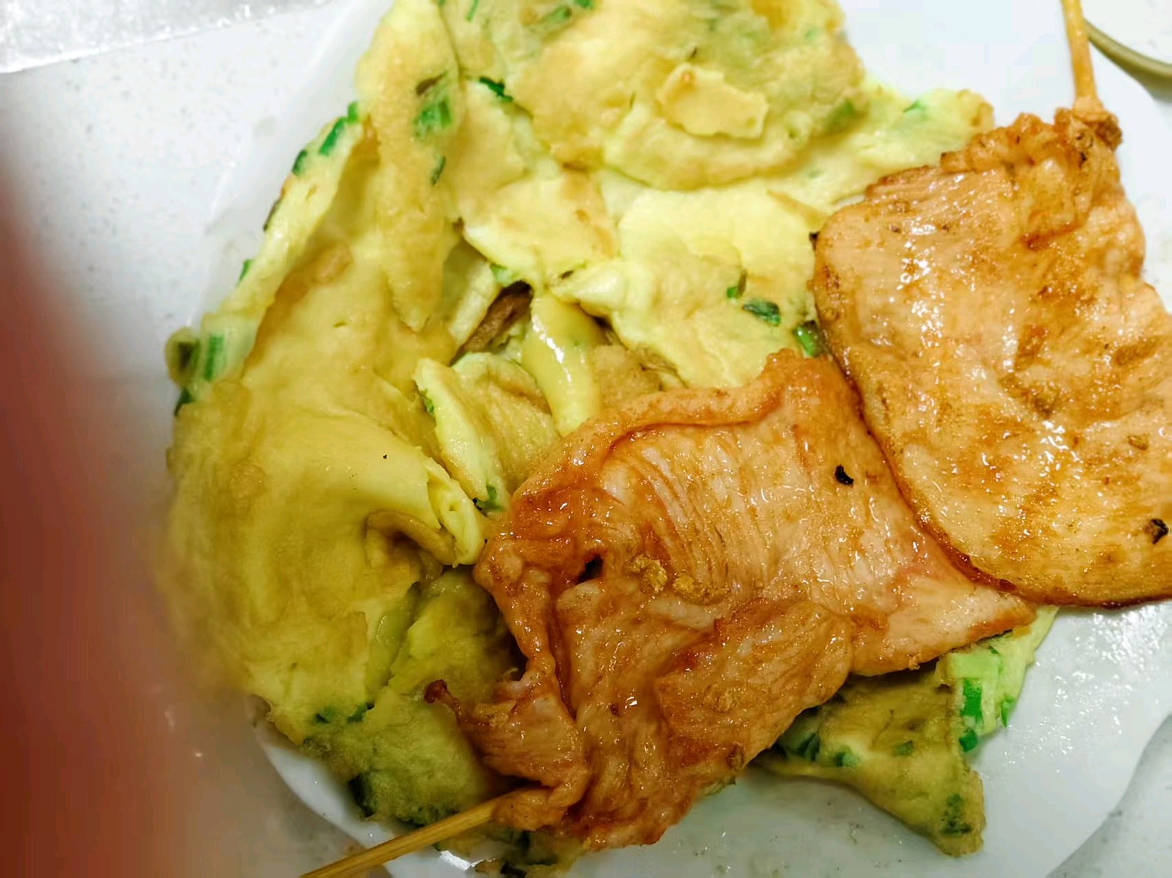 烤肉与蒜香鸡蛋的完美融合,配上白糖芝麻馅儿的油炸糕,平平常常的食材便增添了色香味俱全的美好!