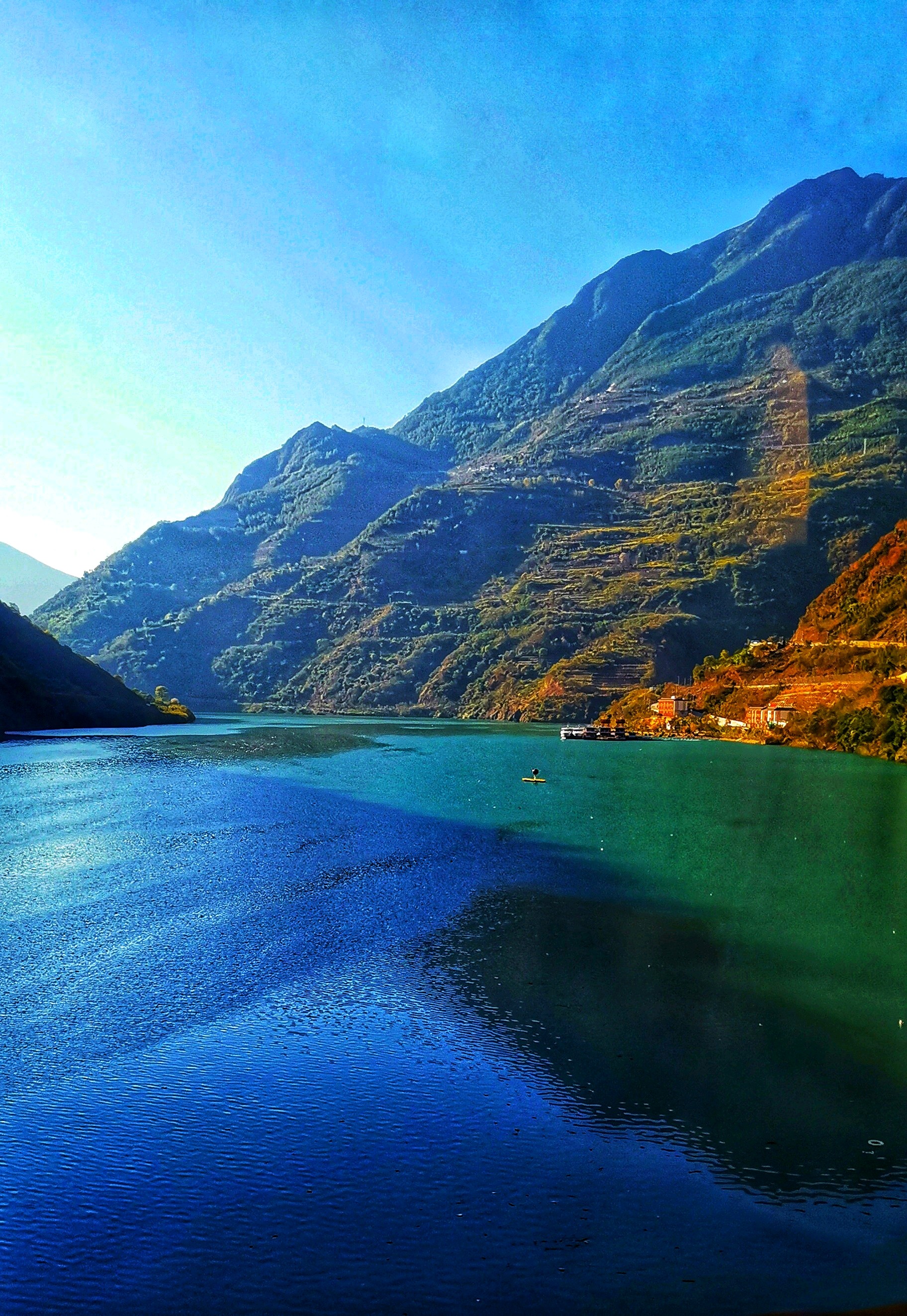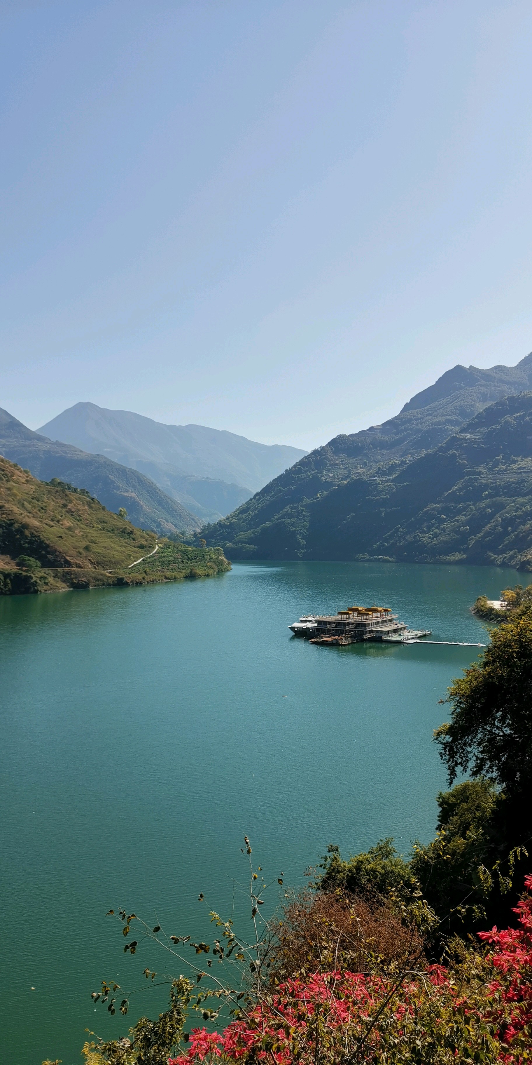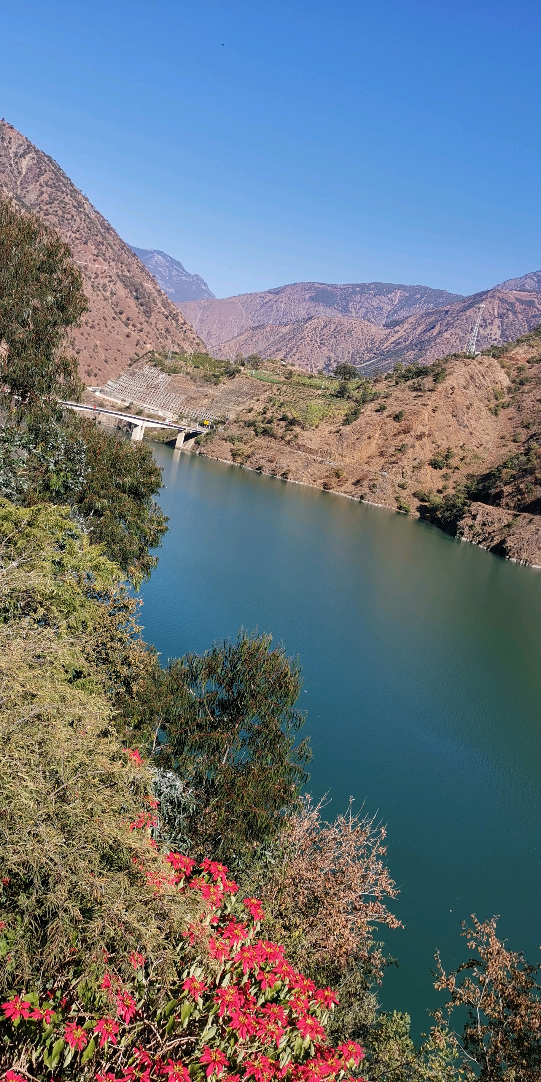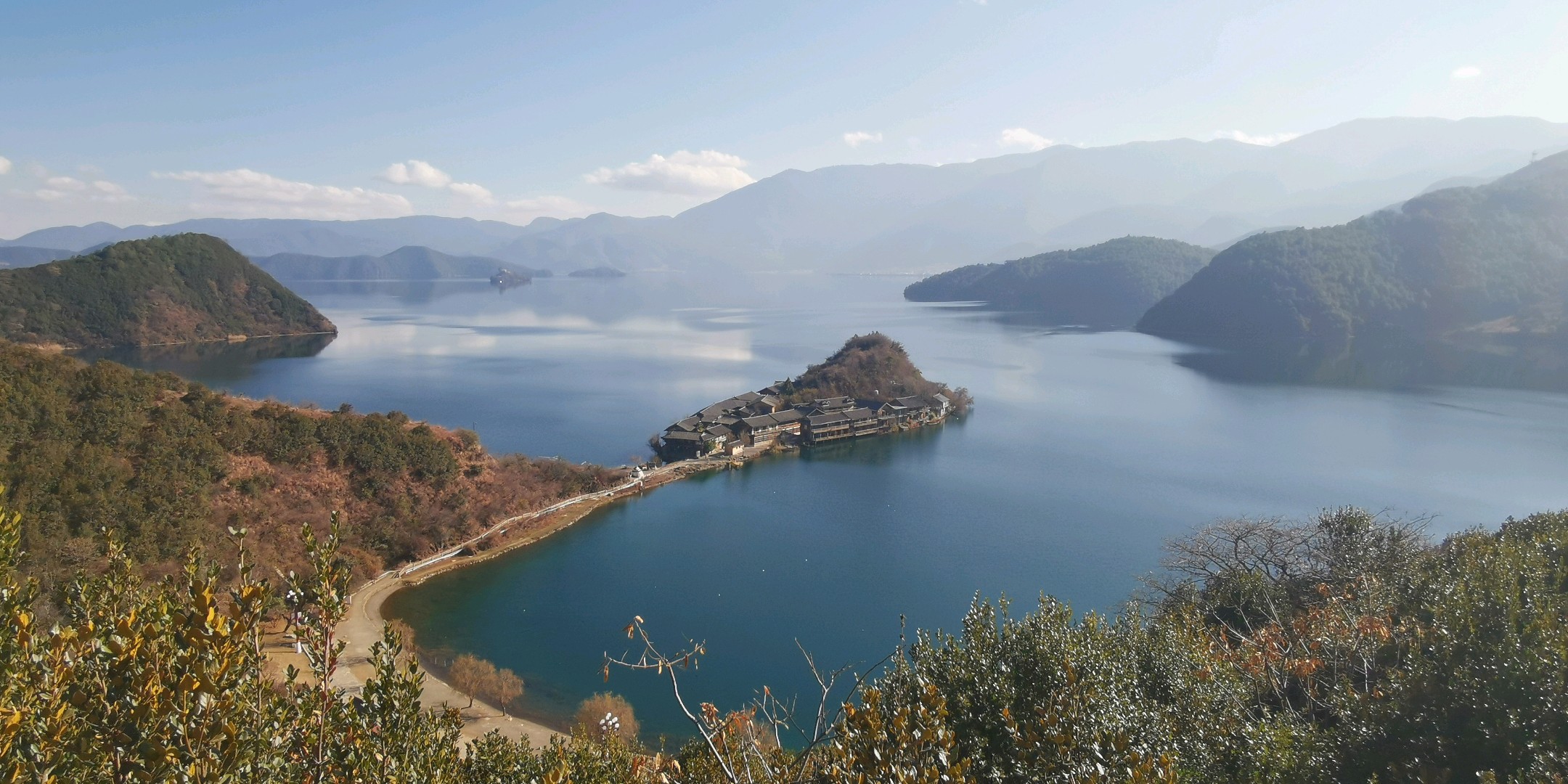 蜿蜒曲折的山路,碧绿的湖水,构成了一幅美丽的山水画卷。