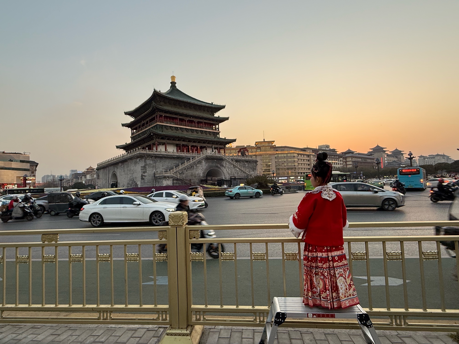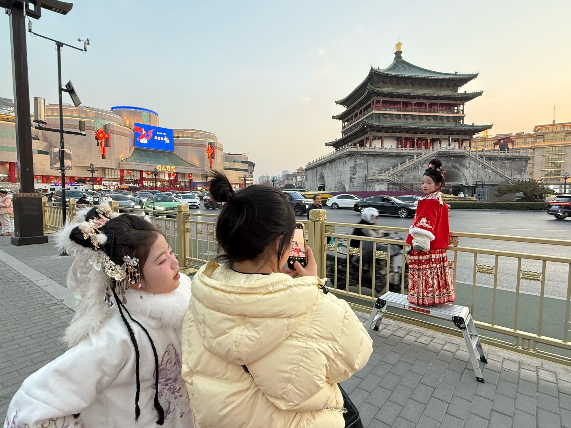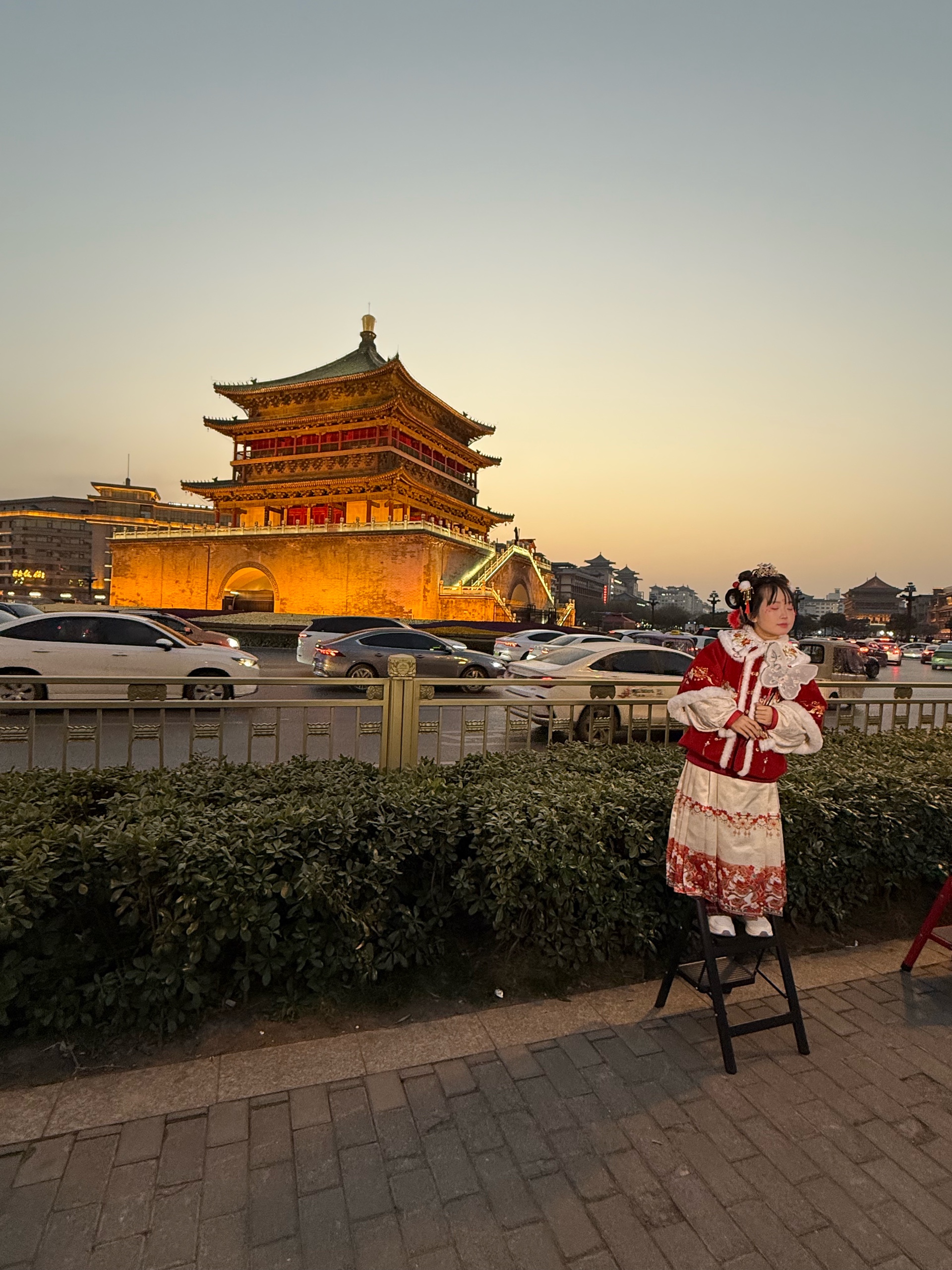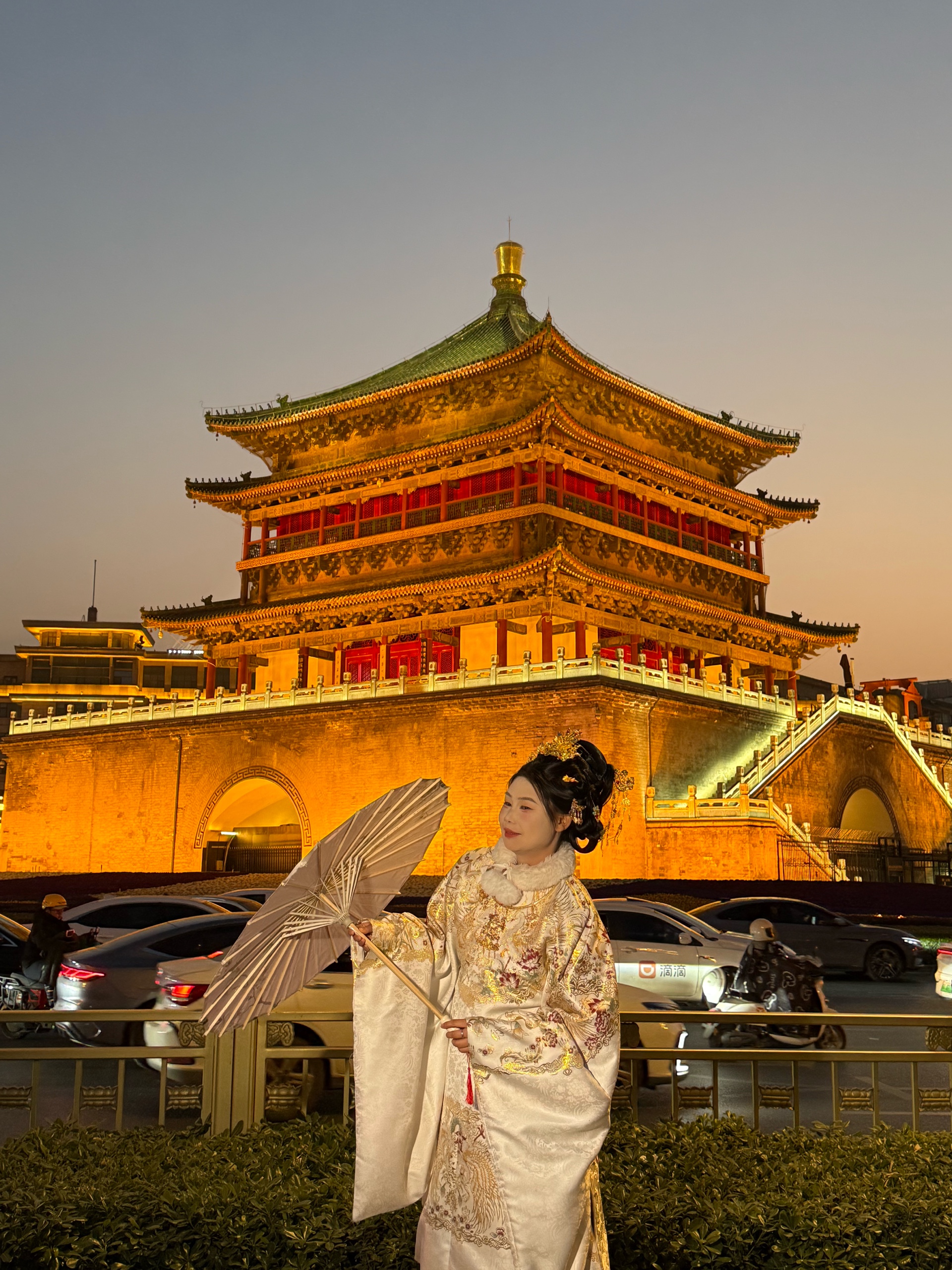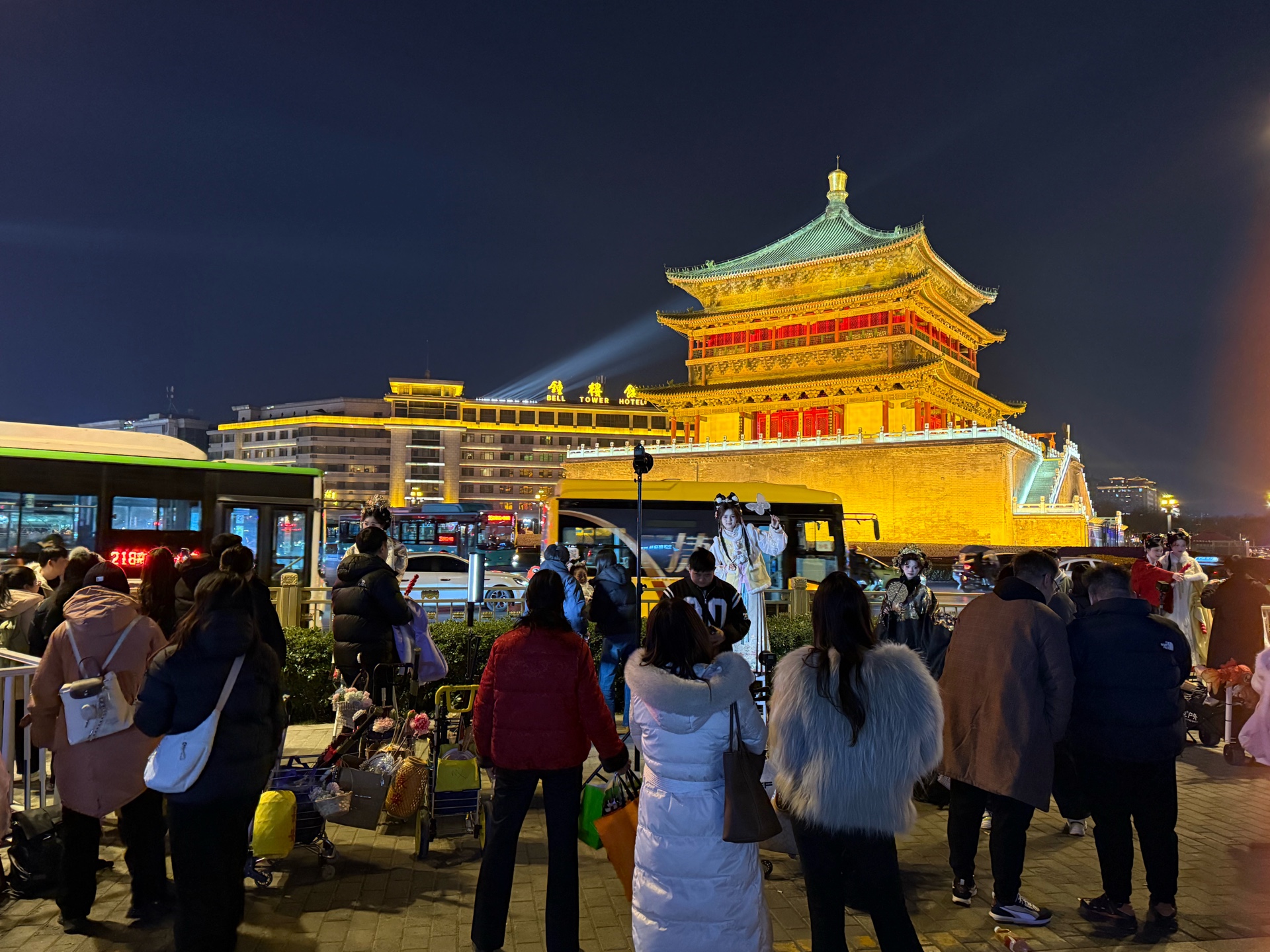 西安的夜晚! 穿汉服的游客真不少,钟楼打卡地!