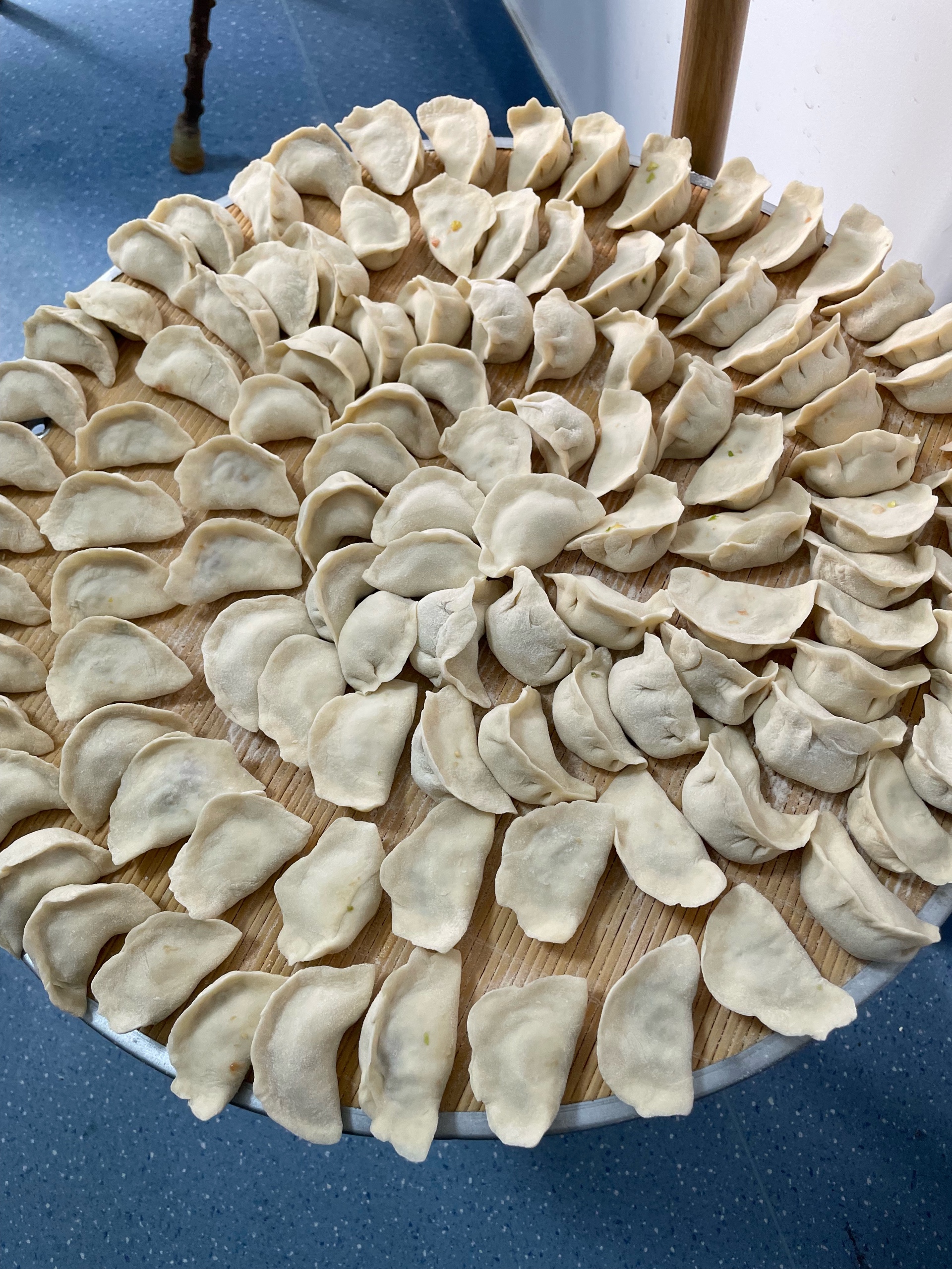 活动现场,大家分工协作、默契配合,揉皮、填馅、捏褶,动作行云流水。老人们更是主力军,不少长辈手法娴熟,指尖翻飞间,一个个圆润饱满的元宝饺、精巧别致的柳叶饺便跃然桌上,还不忘向身边的志愿者传授独家捏法,分享过去腊八节的温馨往事。年轻的志愿者们认真学习,虽手法稍显生疏,包出的饺子形态各异,却个个裹满心意。案板上,一排排饺子整齐排列,氤氲的热气中,饺香与欢声笑语交织,勾勒出一幅温馨的团圆画卷,冬日的寒意被这满院的烟火气一扫而空。
