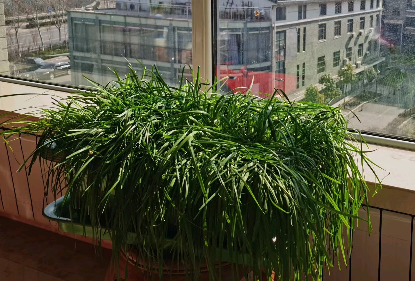 朋友家在阳台养了两盆韭菜,长势真好啊,这可真是纯天然无公害的韭菜了,自己种的韭菜吃着格外香,包饺子,烙韭菜盒子吃,真是太香太棒了!