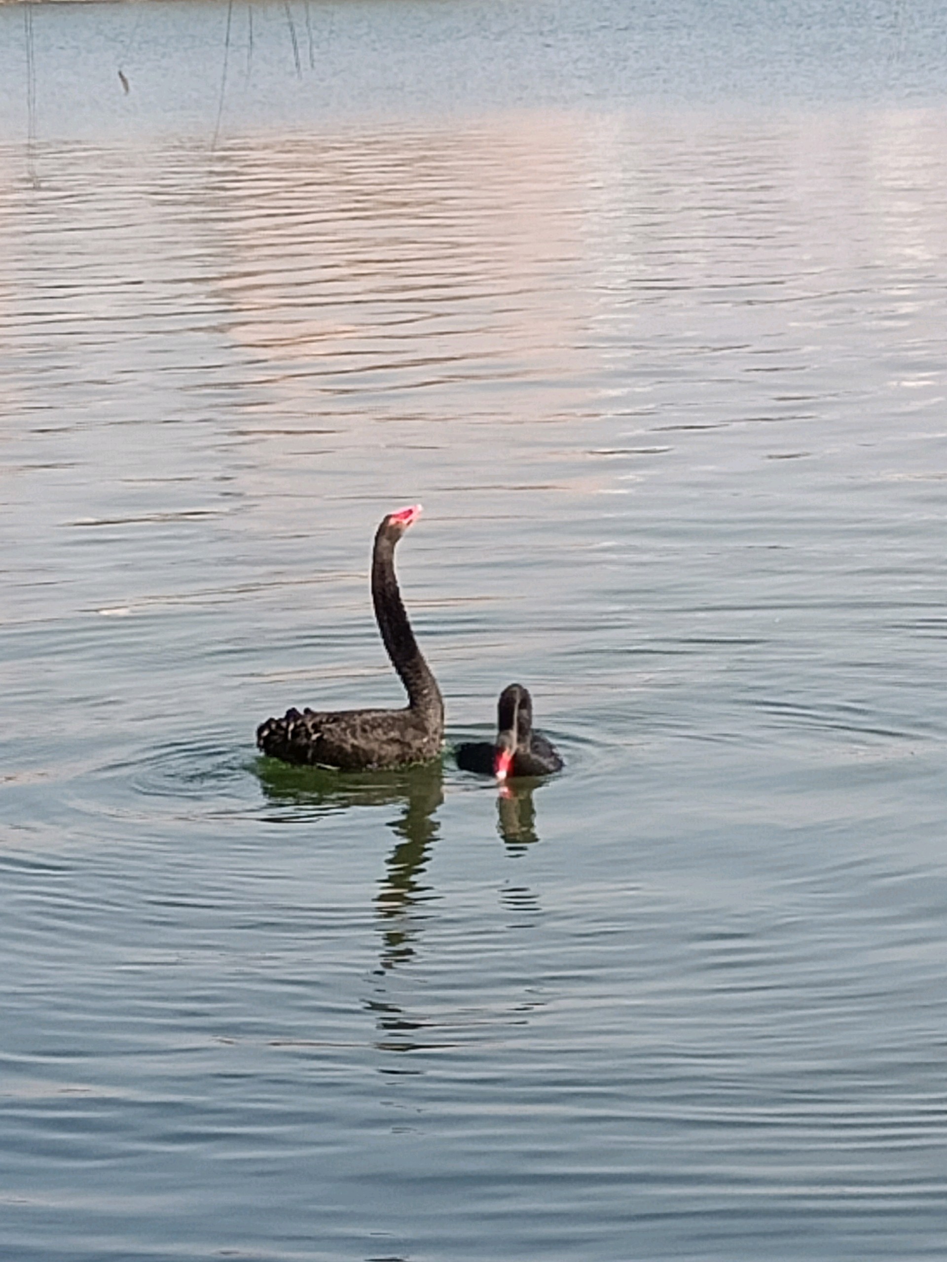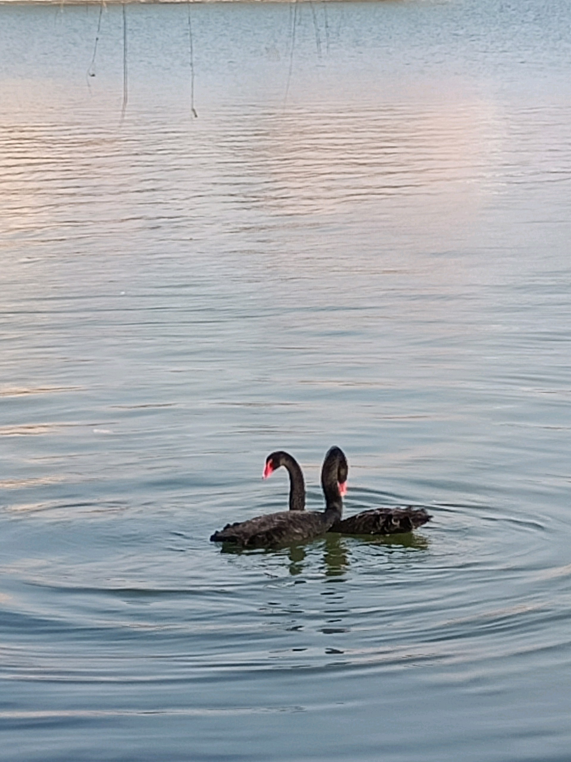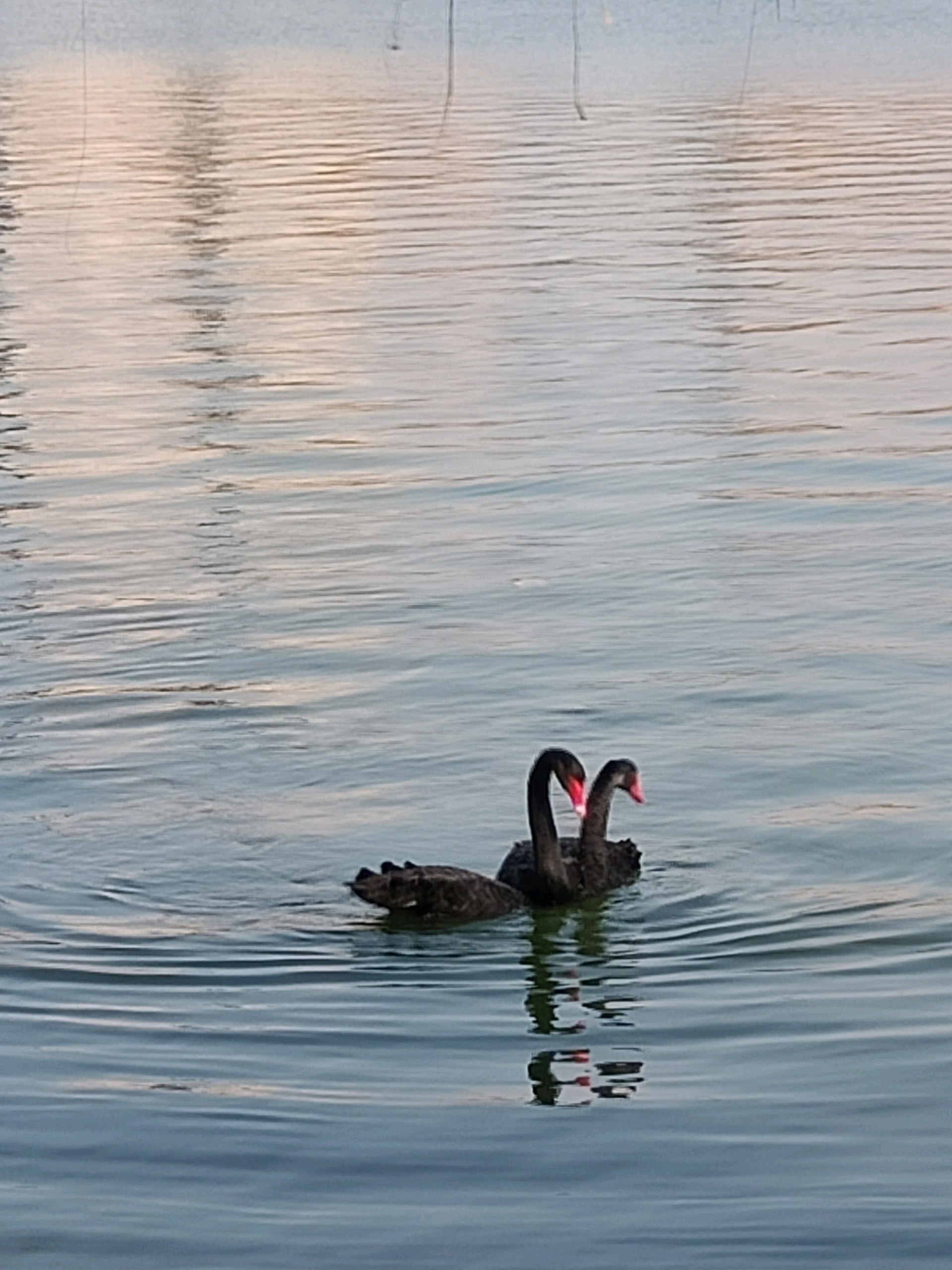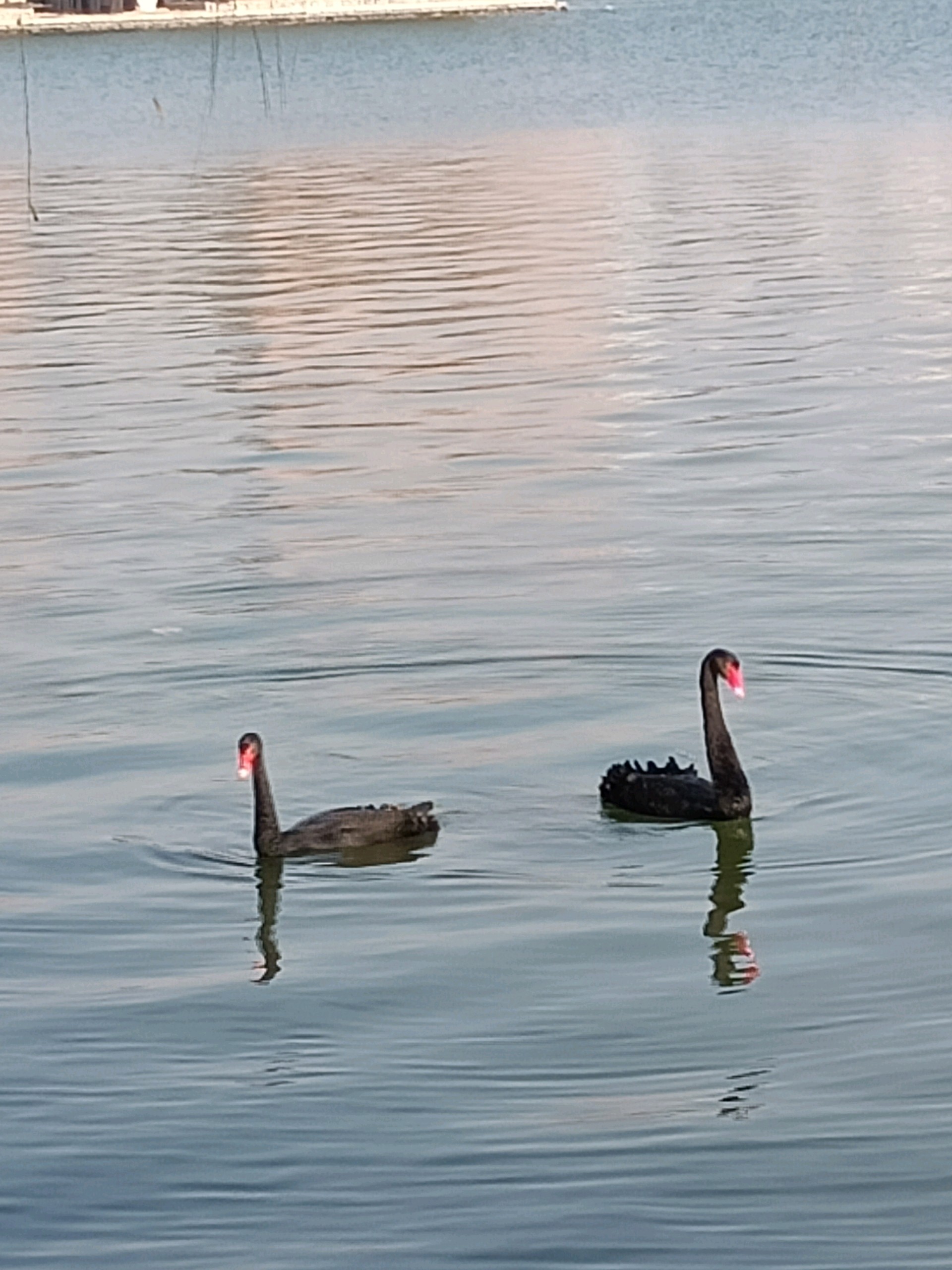 粼粼波光里,一对黑天鹅划破水面,红喙点水,黛羽拂波,把寻常的湖光,酿成了流动的诗。不必远赴山海,一池碧波间,黑天鹅正结伴嬉戏。它们交颈摩挲,踏浪而行,是冬日里最温柔的风景。