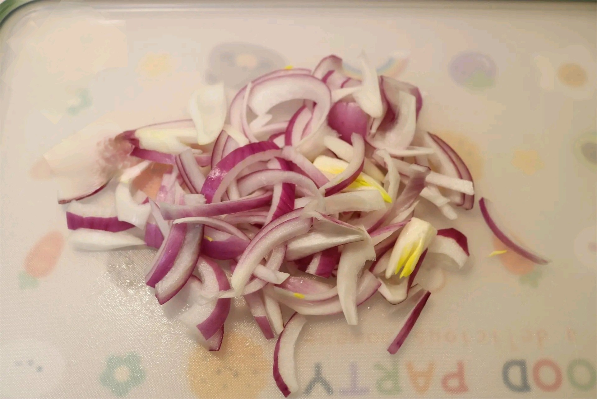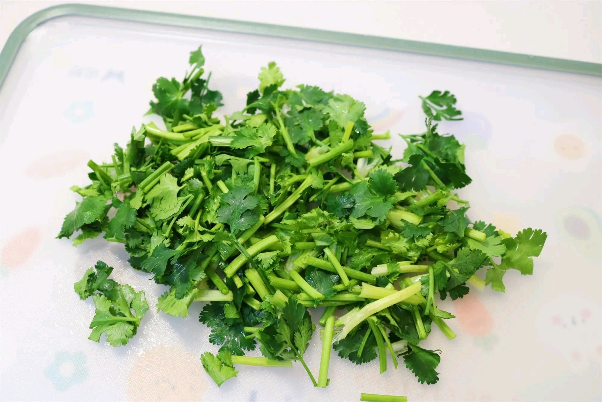3、香菜洗净切段,洋葱切丝。全部装进盆里。