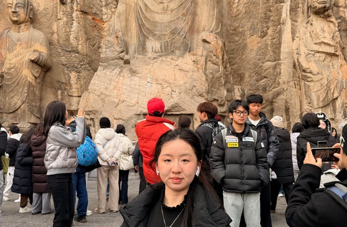 2026年1月26日,曲阜师范大学数学科学学院暖忆计划实践队员迎着晨光奔赴世界文化遗产河南龙门石窟,开启古石刻艺术与生态保护探访之旅。途中可见,景区入口处设有智能人流监测设备,工作人员有序引导游客分流,游览步道旁、石窟观景区随处可见“守护石刻瑰宝 共护生态家园”等警示标语,时刻提醒游客文明观览、爱护环境。步入景区深处后,队员们了解到景区多项精细化保护举措:由龙门石窟建设发展局张巧君牵头的生态巡护队,每日开展景区全域垃圾清运、植被养护及伊水周边生态巡查工作;景区内严禁随意丢弃垃圾,沿线布设分类垃圾桶,安排环保志愿者提供引导服务;严格执行人流量管控规定,重新核定各洞窟瞬时及日承载量,推行预约参观制,游客需在指定区域远距离观赏,避免近距离接触对石窟造成损害;龙门石窟研究院石窟保护研究中心主任马朝龙统筹推进文物修缮工程,部分佛像及窟龛正进行精细化修缮,通过环氧树脂粘接加固、水害治理等举措,守护石刻文物安全;同时,景区将生态保护与文物保护深度融合,纳入《全面提升龙门石窟保护利用水平行动方案》,筑牢世界文化遗产保护防线。实践队员深切体会到,这些细致措施既是对龙门石窟周边生态环境的守护,更是对千年石刻佛像、摩崖造像等文化遗存的珍视,让这份承载着中华文明的瑰宝在科学保护与生态和谐中代代相传。