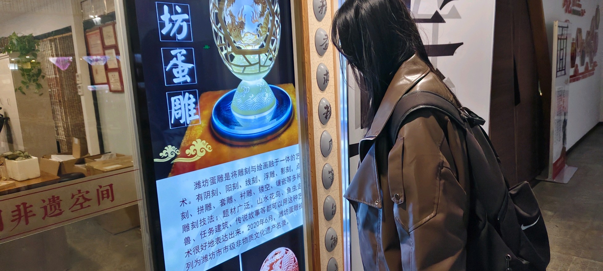 队员们还了解到,蛋雕的载体并不仅限于常见的鸡蛋壳,鸸鹋蛋、鸵鸟蛋等较大型蛋壳因其壁厚、质坚、形异,常被用于创作更为复杂的作品;甚至在特定技法下,煮熟的蛋亦可成为雕刻对象,展现了该技艺的多样性与适应性。