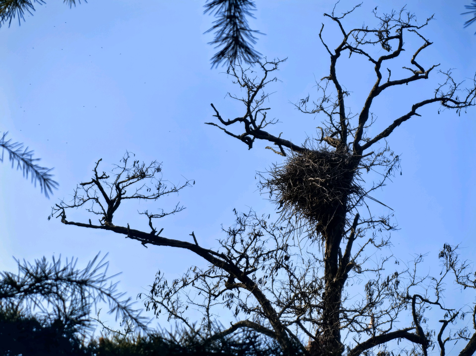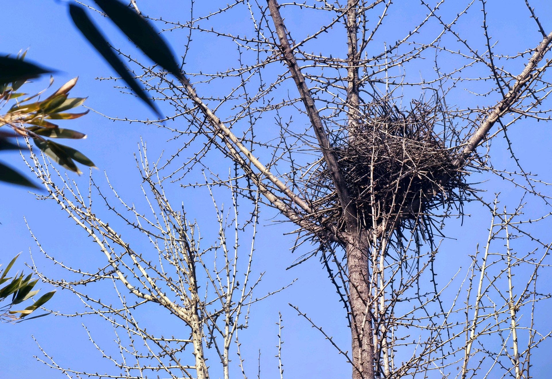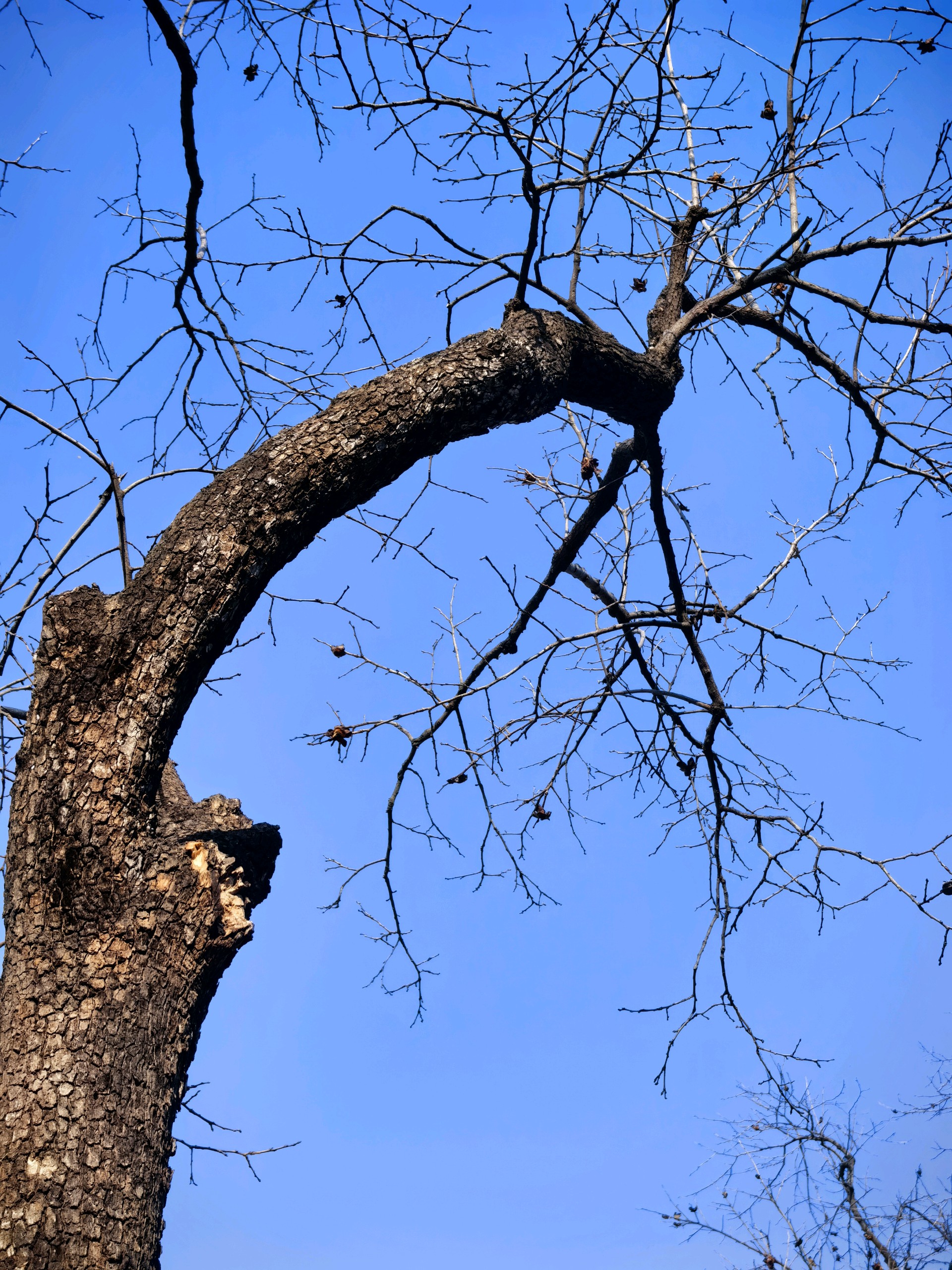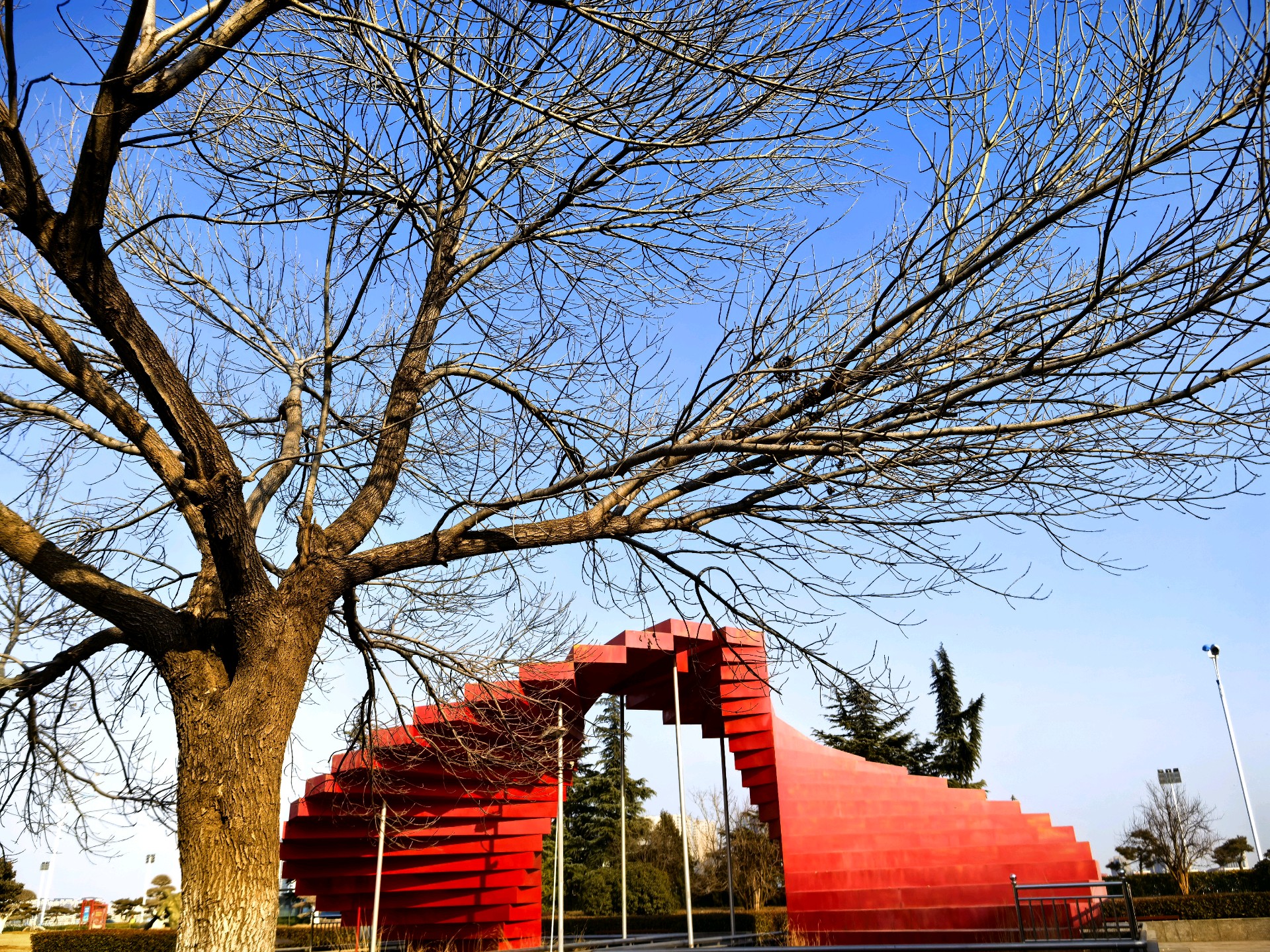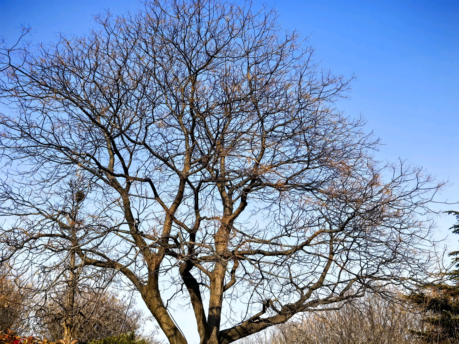 冬日的滨河公园,蓝天下的古树枝,宛如大自然的画笔,勾勒出一幅宁静美好的画卷。