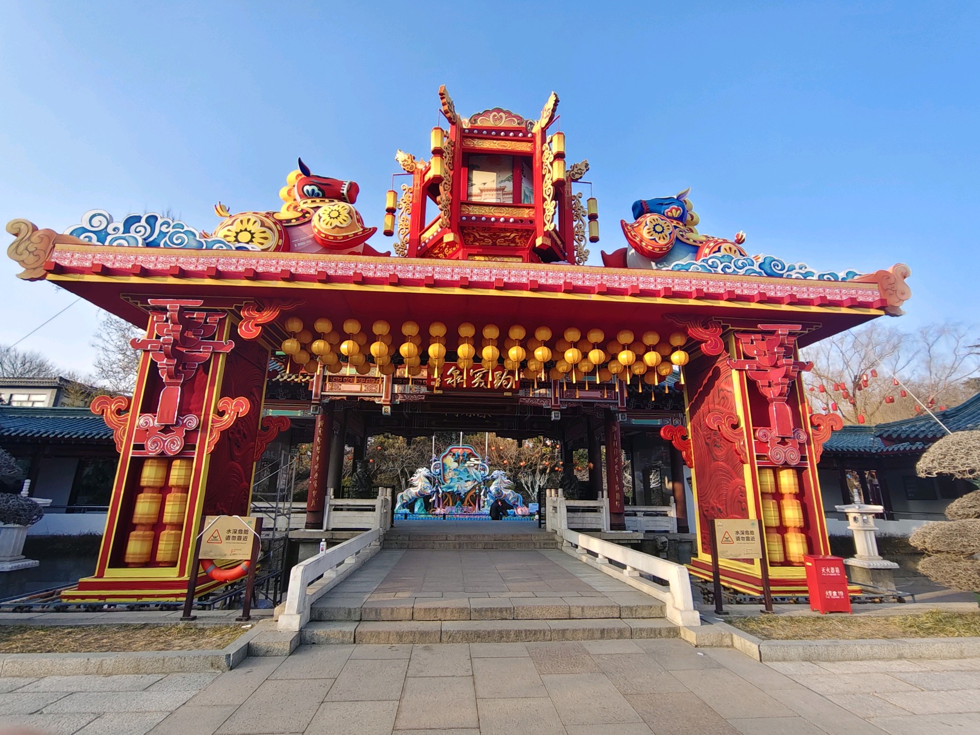 打卡济南趵突泉第四十五届花灯抢先看,其中最亮眼的南门的大型拱门灯组。应该是历年来最大的灯组了吧。东门的双马迎春灯烛气势磅礴。整个公园新春的氛围已拉满。期待亮灯的精彩时刻!