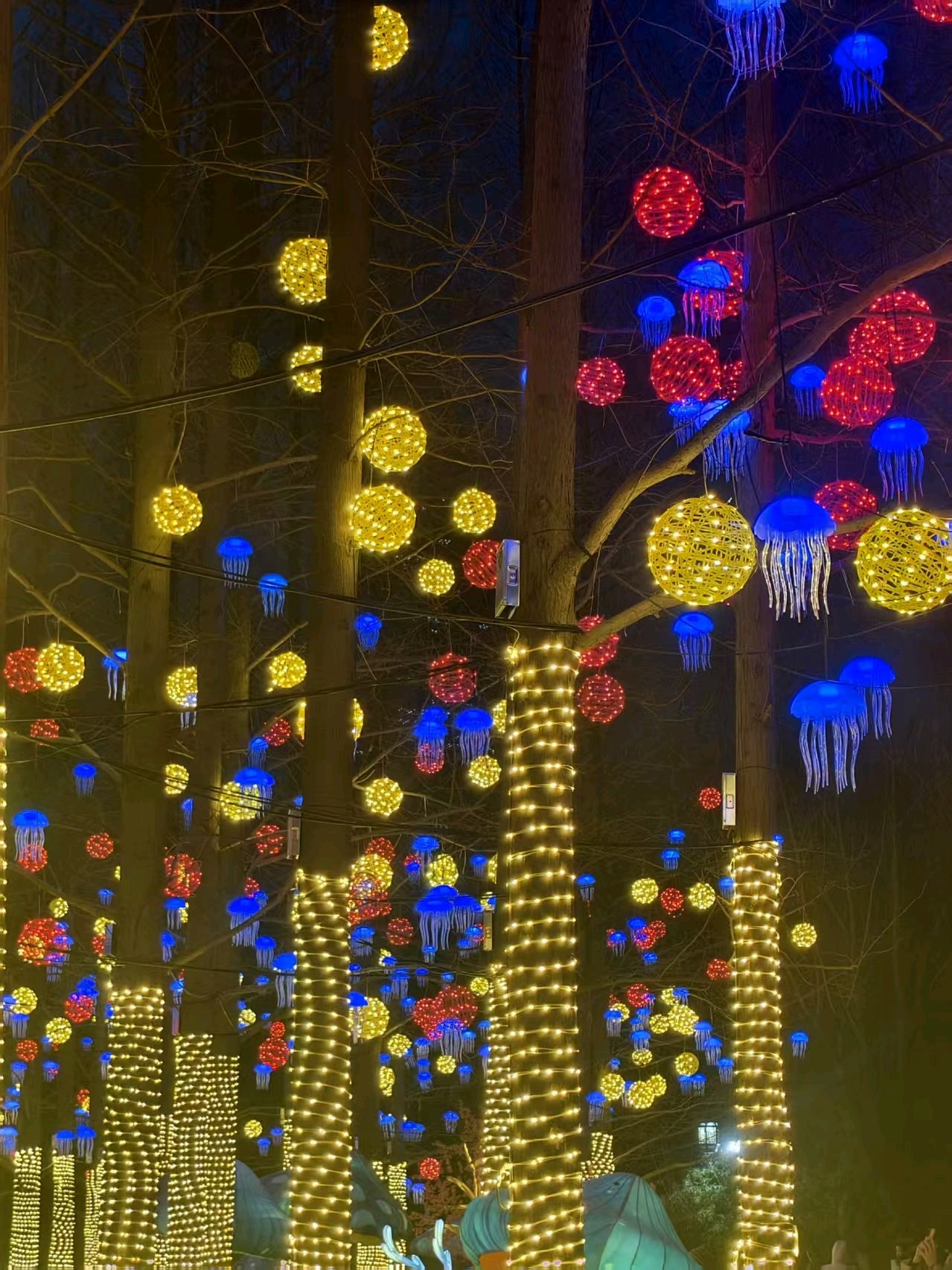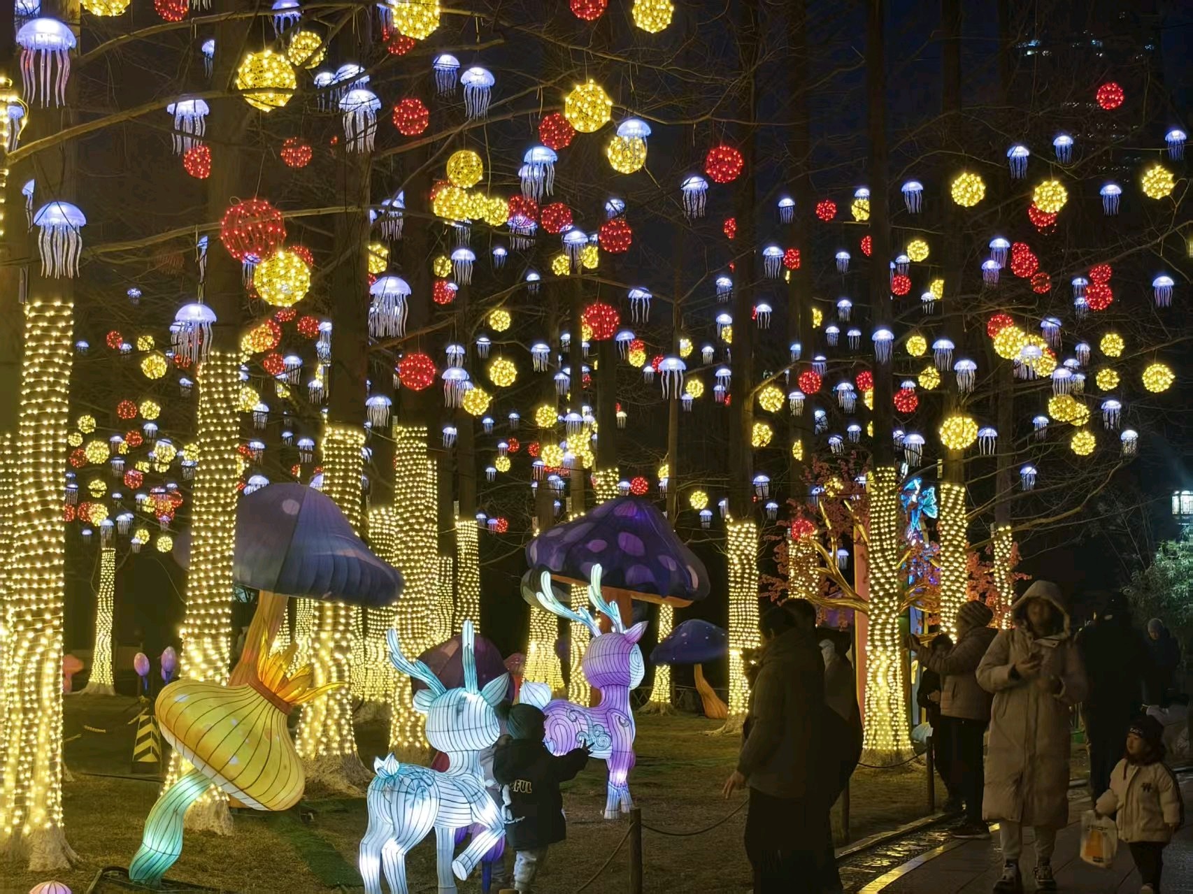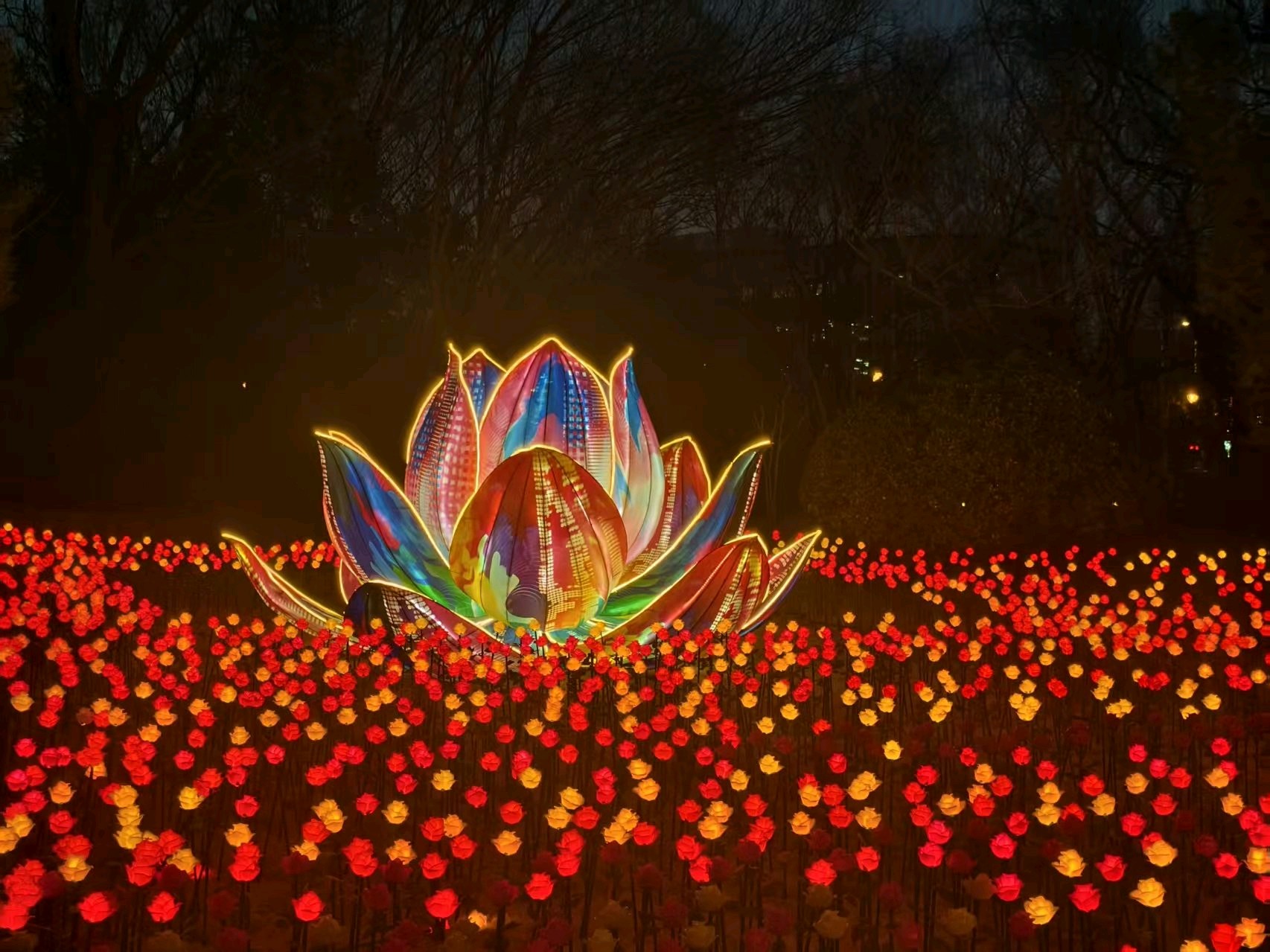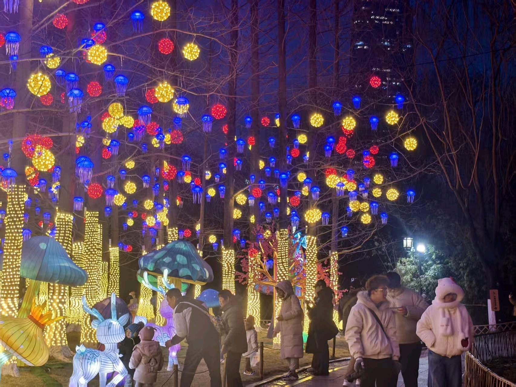 夜幕降临,华灯初上,五龙潭公园被五彩斑斓的灯光点缀得如同梦幻世界。游玩的人们络绎不绝。