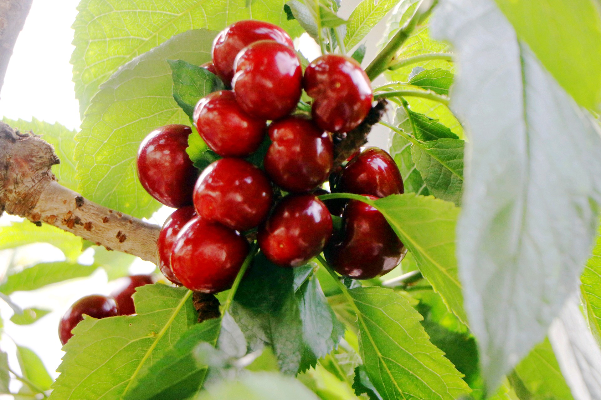 【五莲县果树大本营樱桃熟了】在五莲宋家村果树大本营,红彤彤的大樱桃果实挂满枝头,阳光透过树叶洒下格外诱人,为春节水果市场供应了充足的保障。