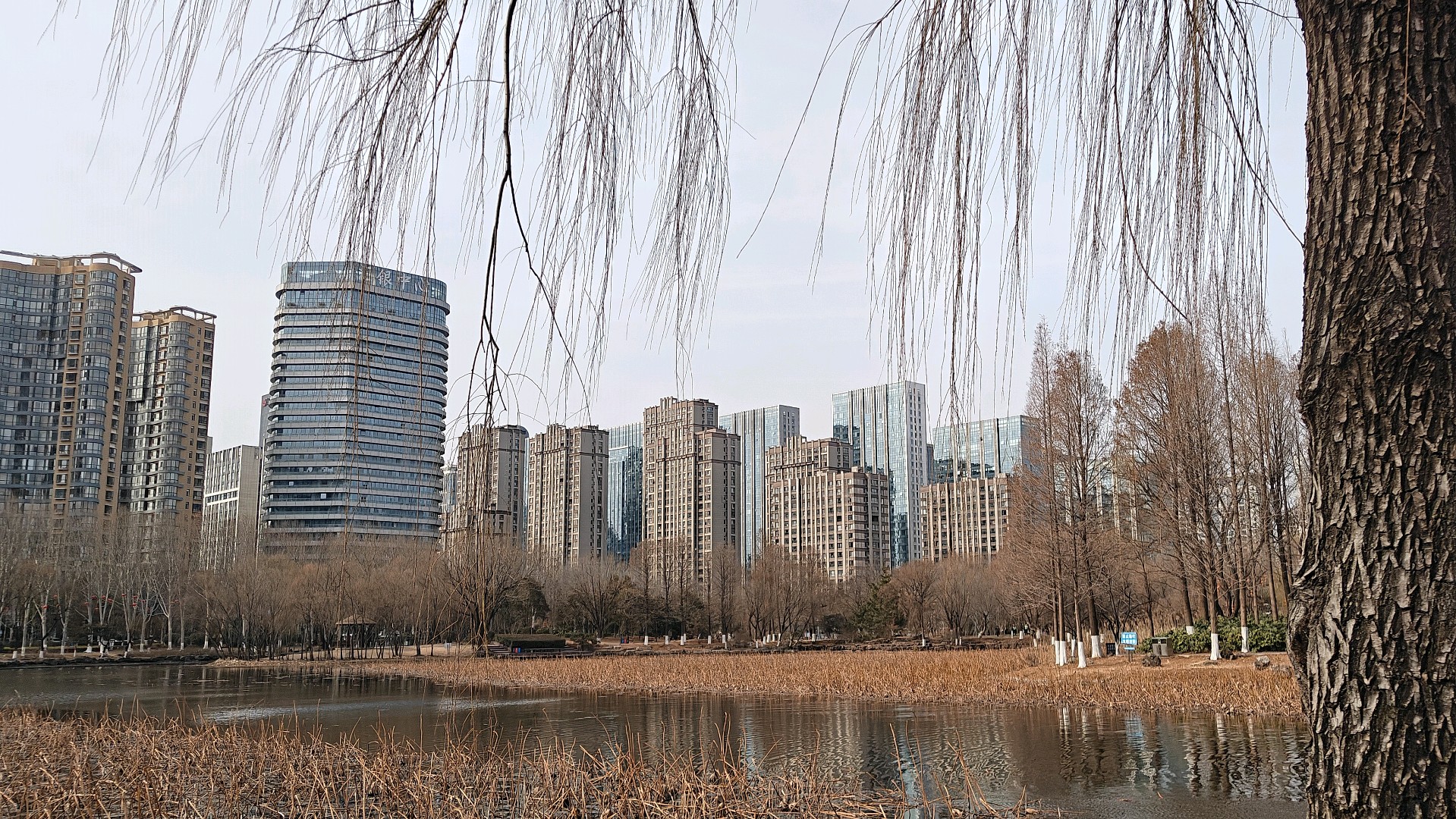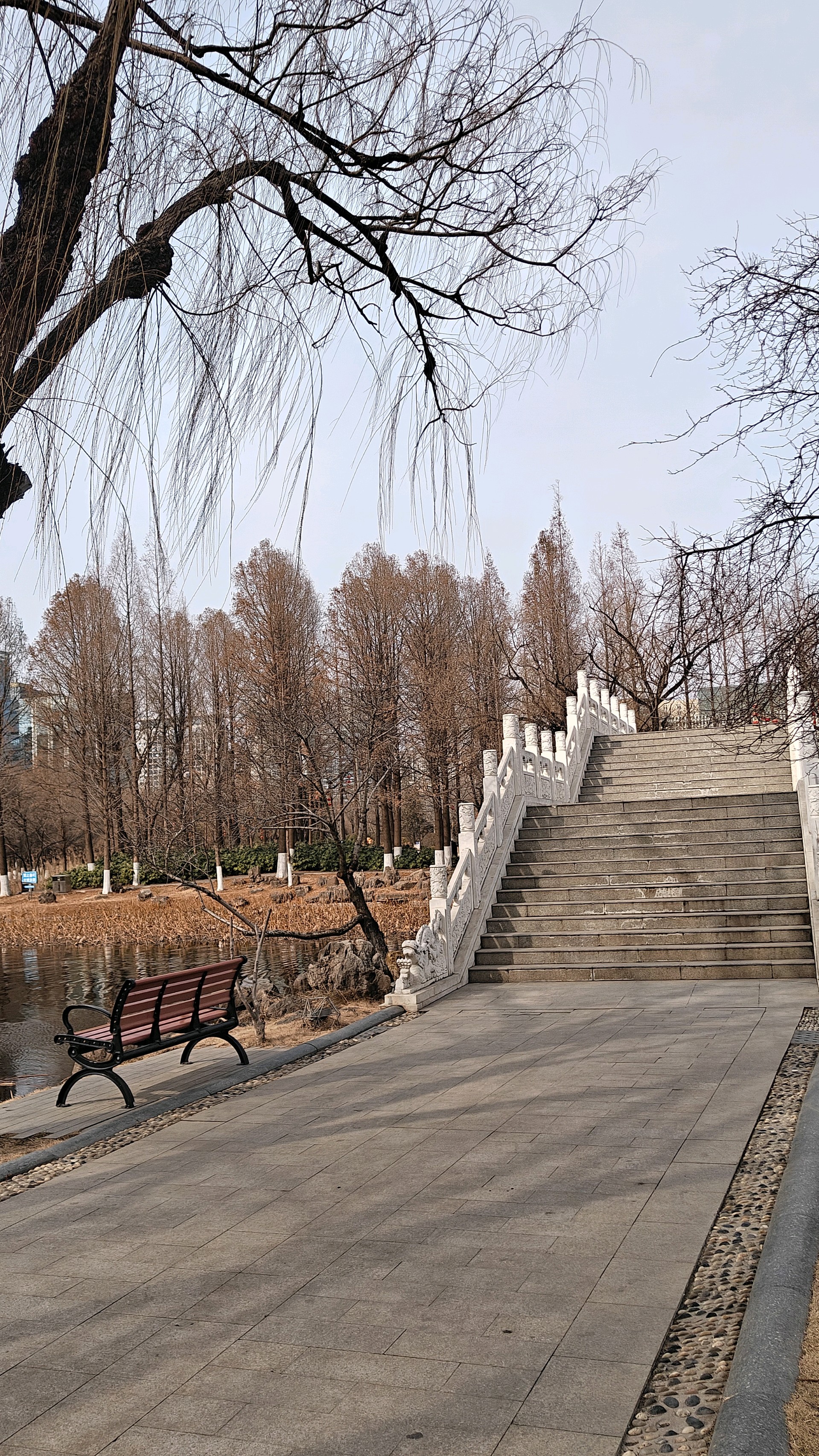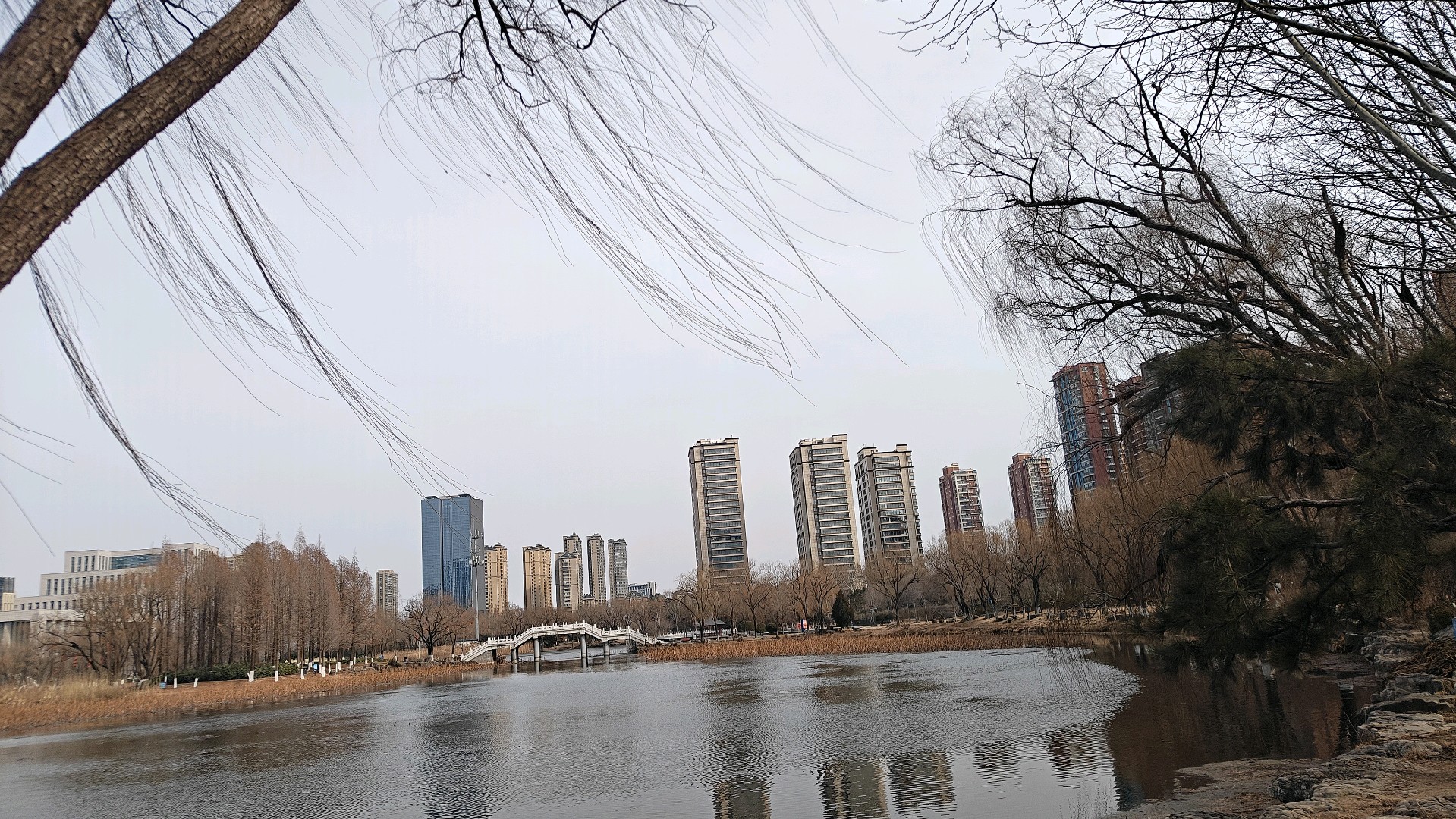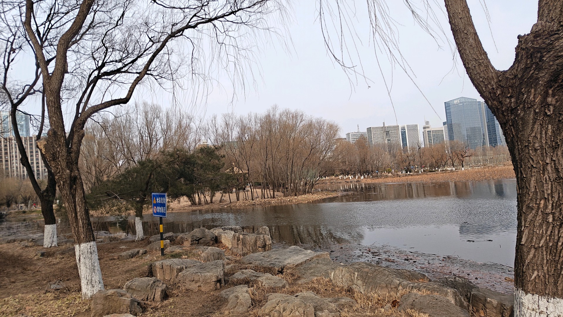 岁暮天寒,五洲湖敛了春夏的潋滟、秋日的清旷,只剩一身萧瑟风骨立在冬日的风里。岸边的草木褪尽了芳华,疏疏的枝桠在朔风中静立,将影姿斜斜地映在凝了薄寒的水面上。