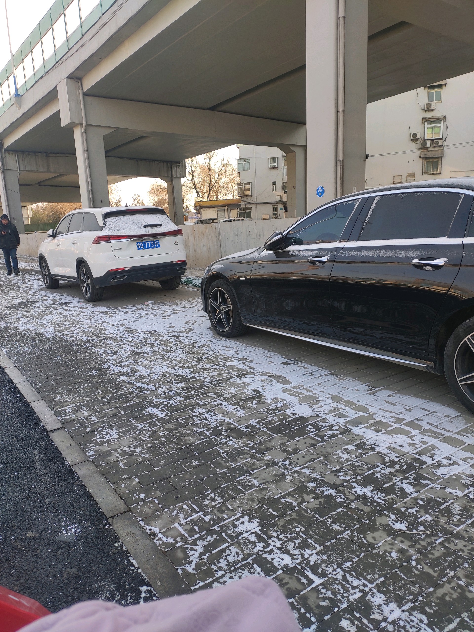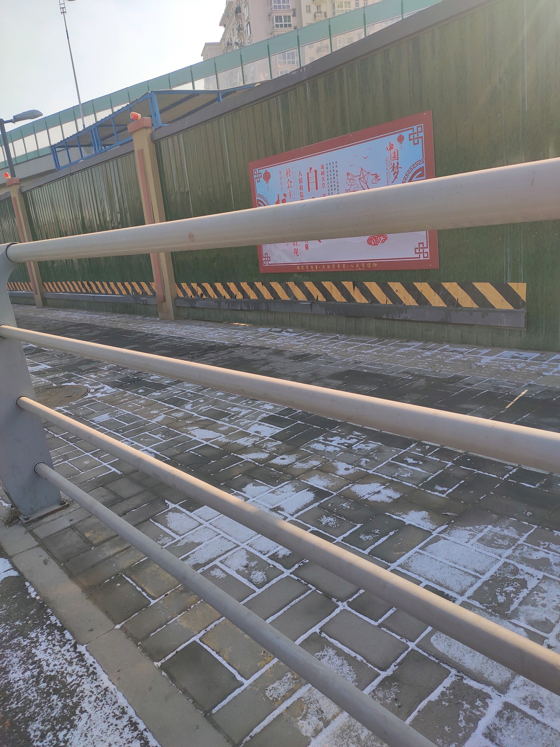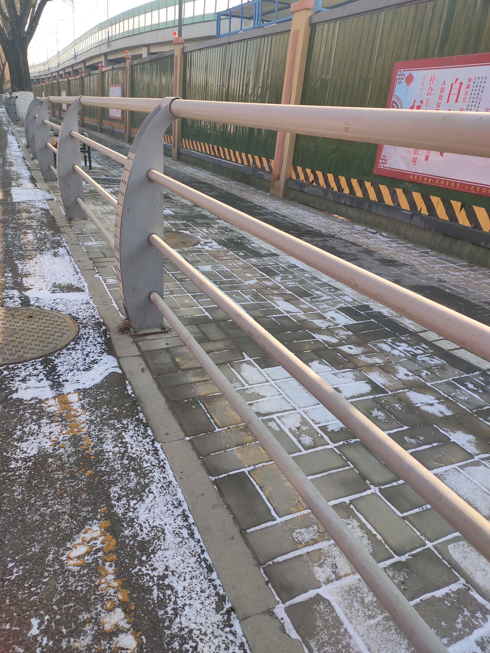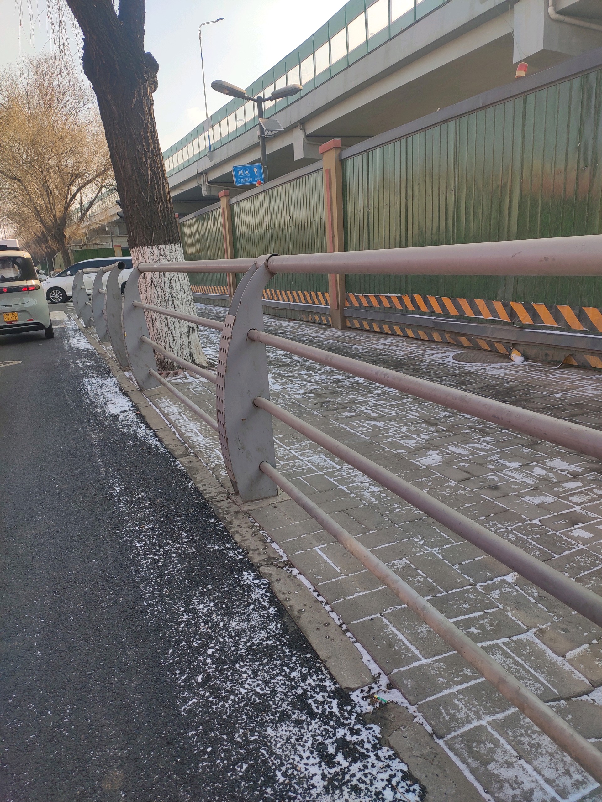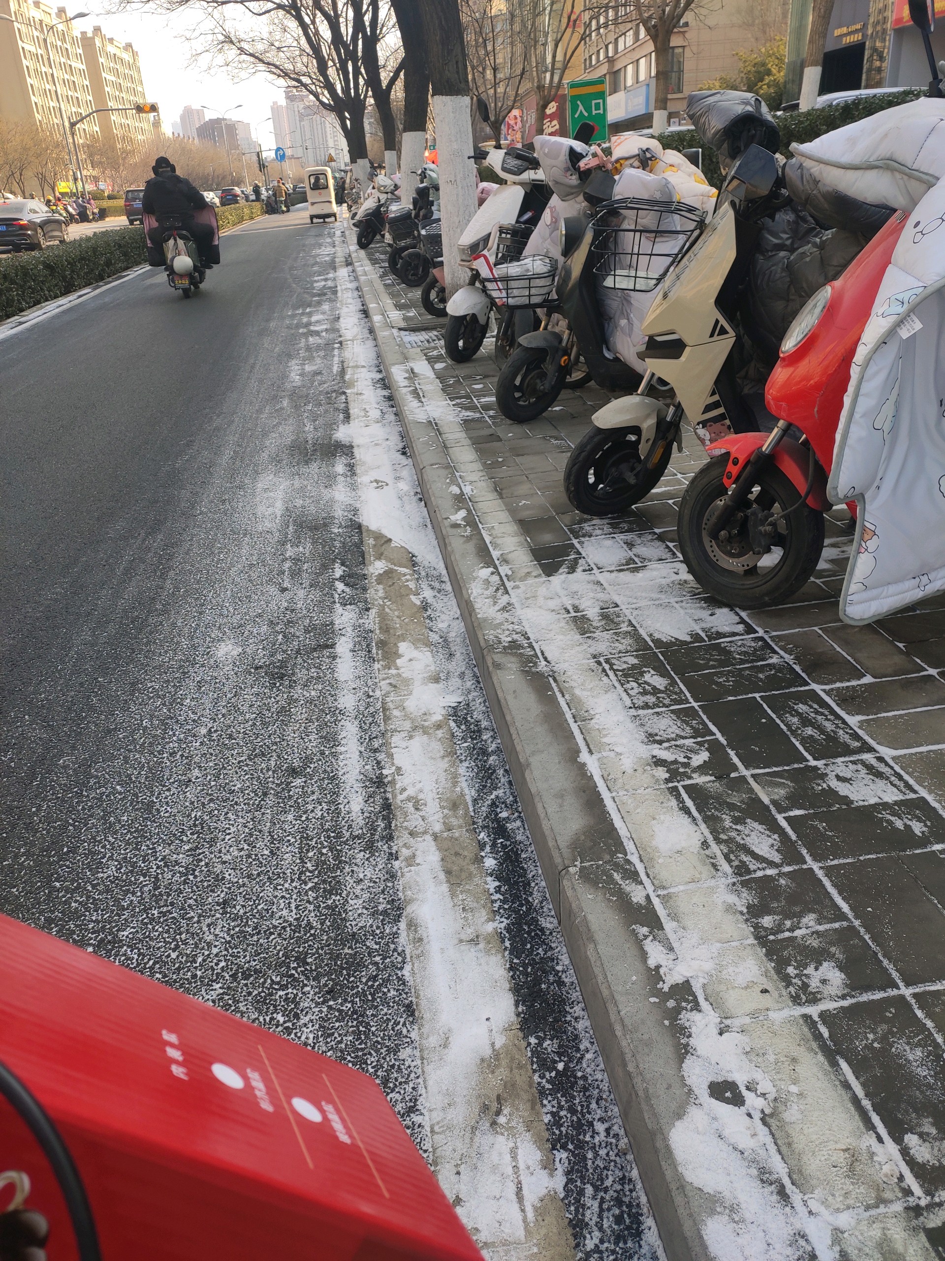 昨晚下了一场雪,今天的路面基本没有积雪,只有人行道上有少量存雪,出行丝毫不受影响。
