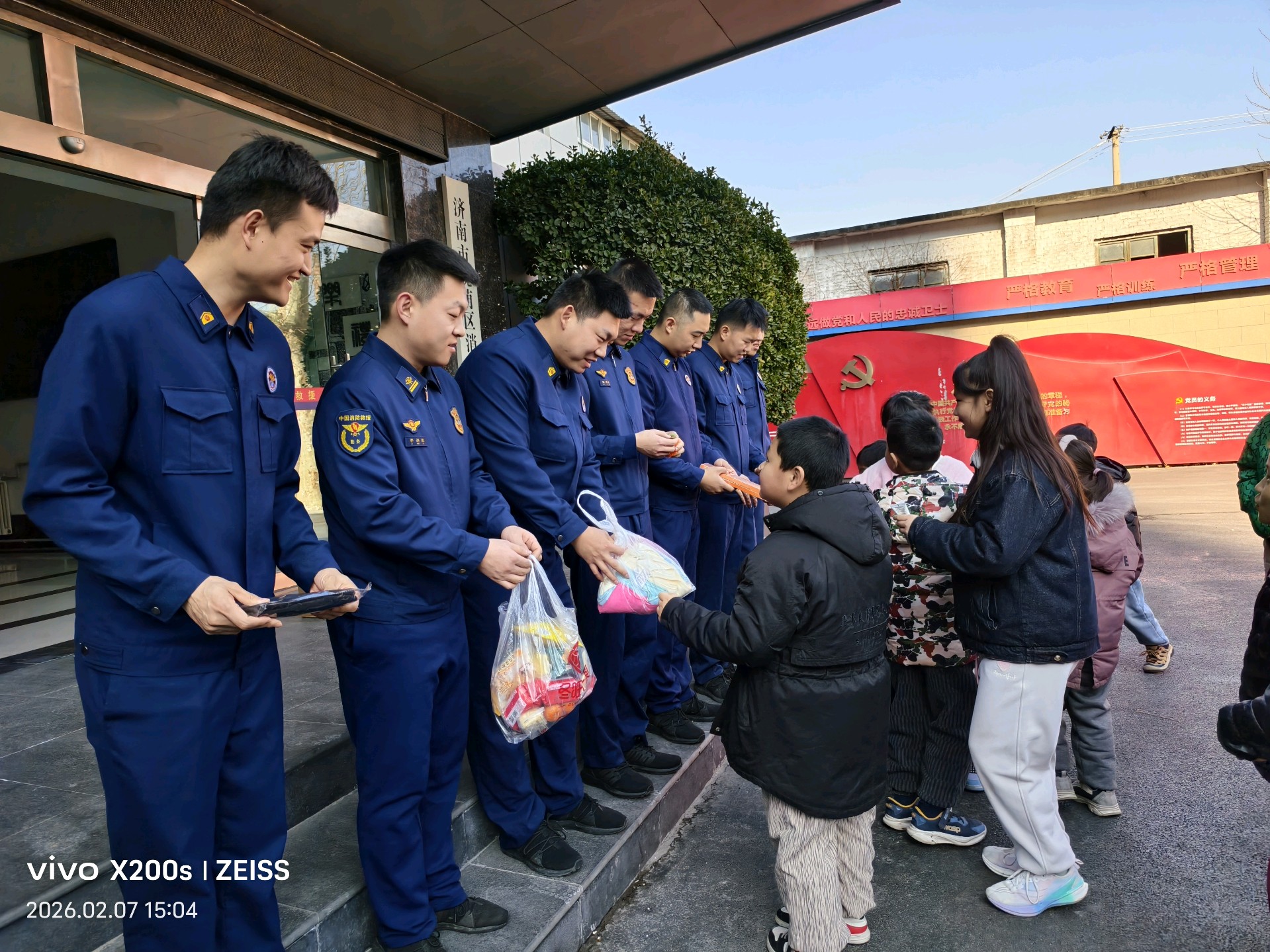 2月7日下午,九胜教育托管中心马引老师带领十几名小学生,冒着寒冷走进八里桥消防救援站,开展了一场温暖而有意义的感恩活动。孩子们精心准备了礼物:一副副皮手套、一瓶瓶护手霜等等,虽不贵重,却饱含纯真关怀;马引老师还自费购买了橘子、西瓜和苹果,代表孩子们的心意。