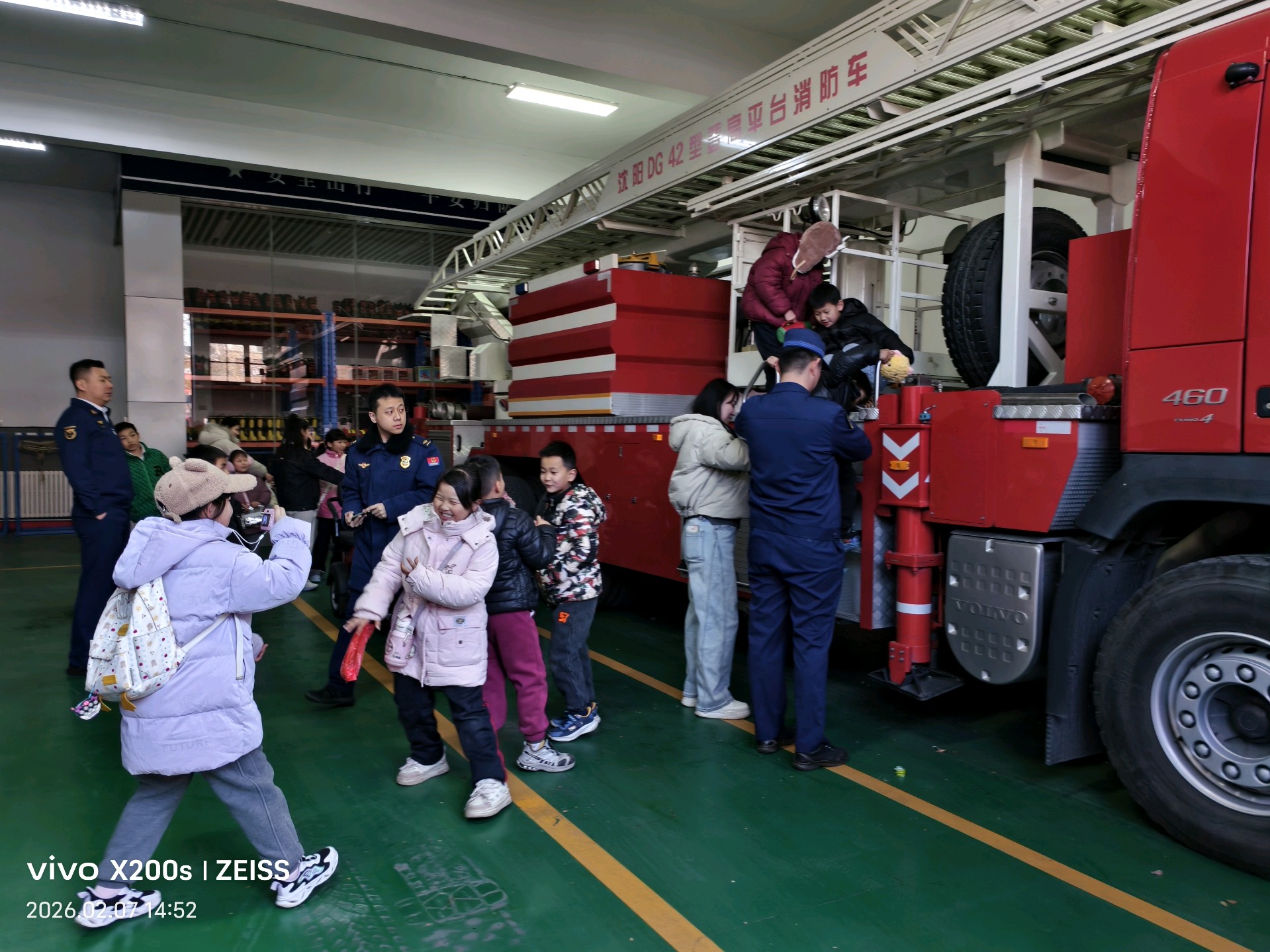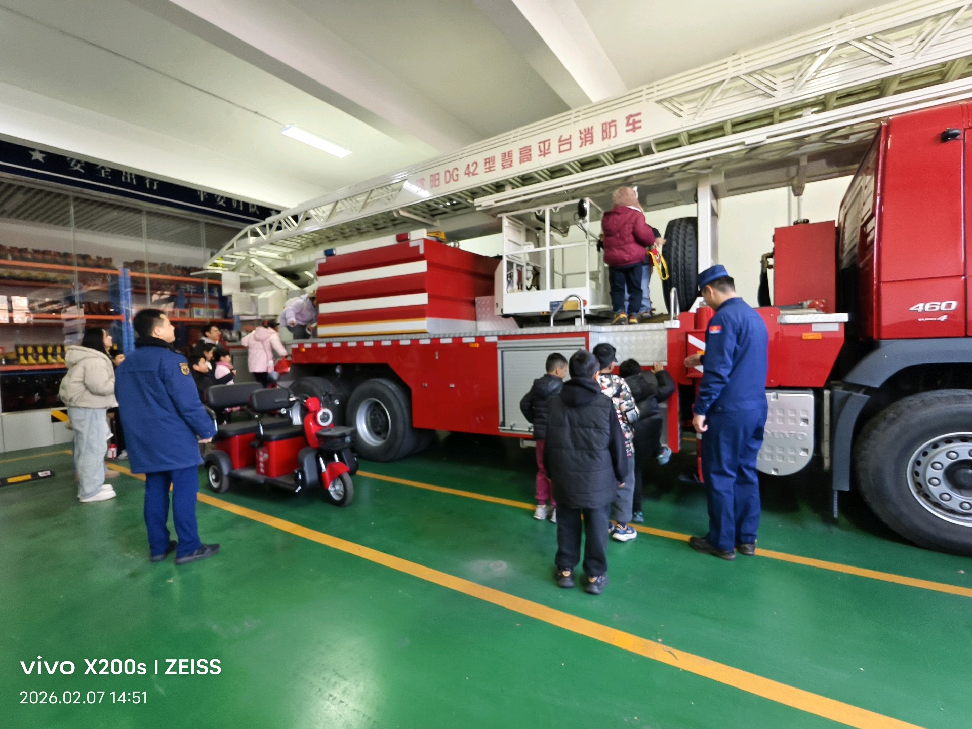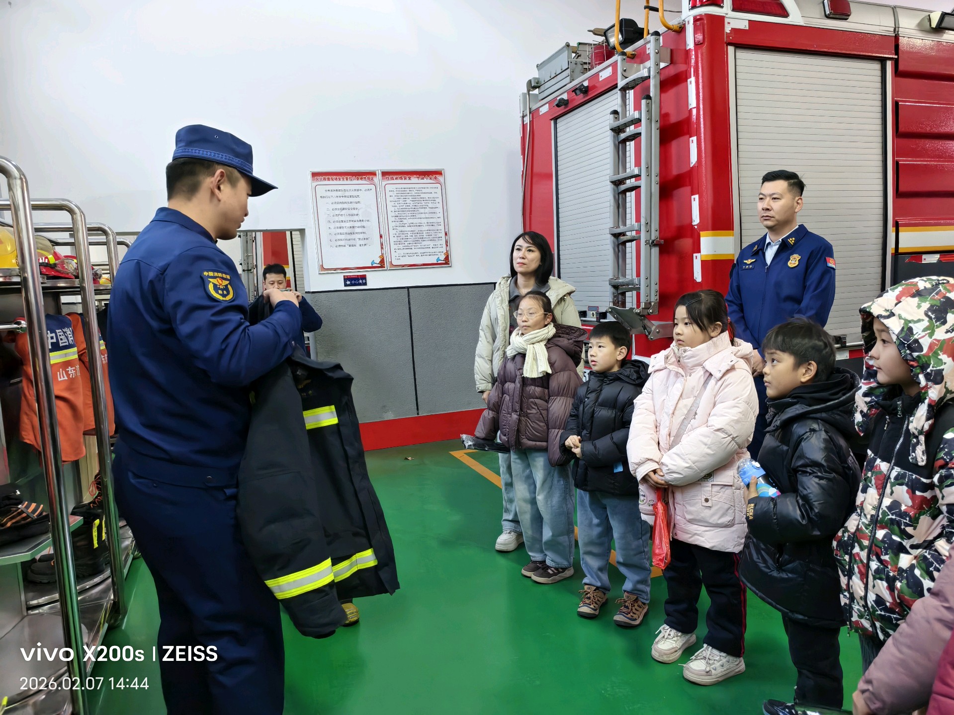 在消防救援站内,孩子们好奇地围在消防车旁,惊叹于这辆“钢铁战士”的威武。救援队员耐心讲解消防车的功能,孩子们听得入神。马引老师试穿防火服,亲身体验消防员工作的艰辛。参观荣誉室,一面面锦旗、一个个奖牌静静陈列,诉说着消防员们无数个日夜的拼搏与付出。