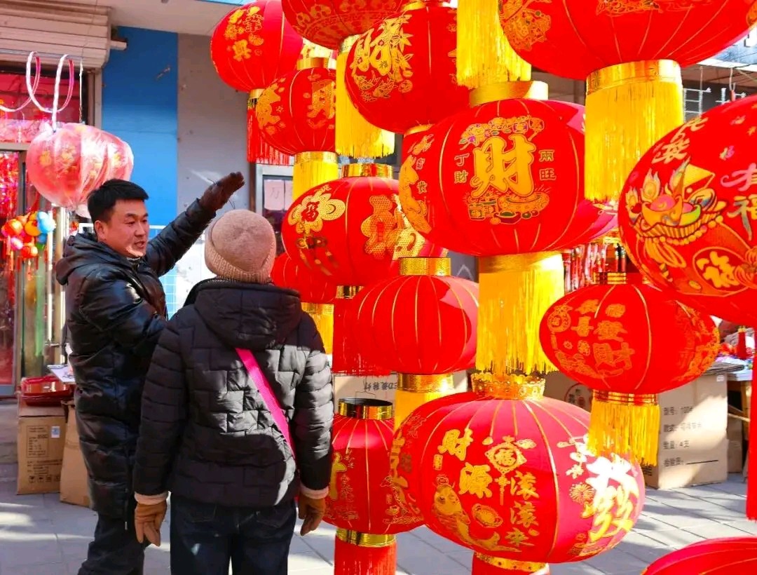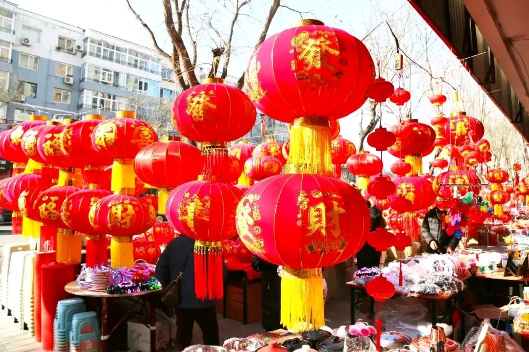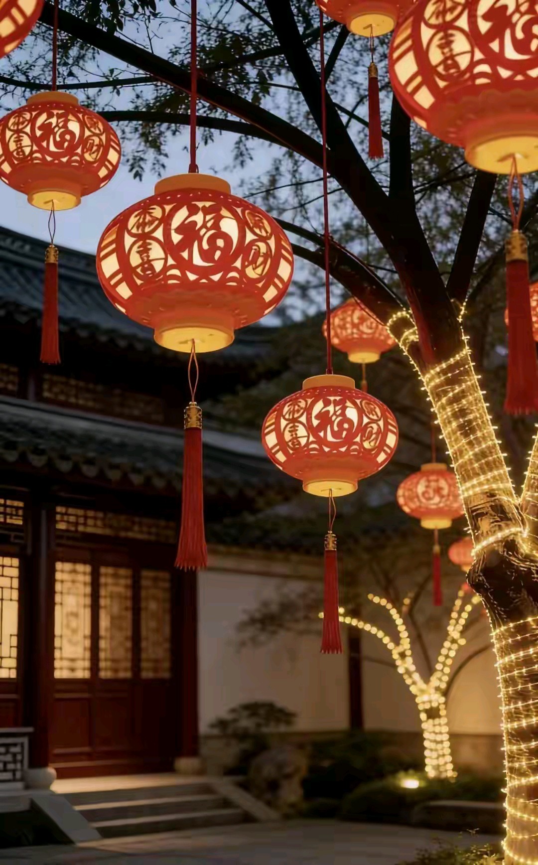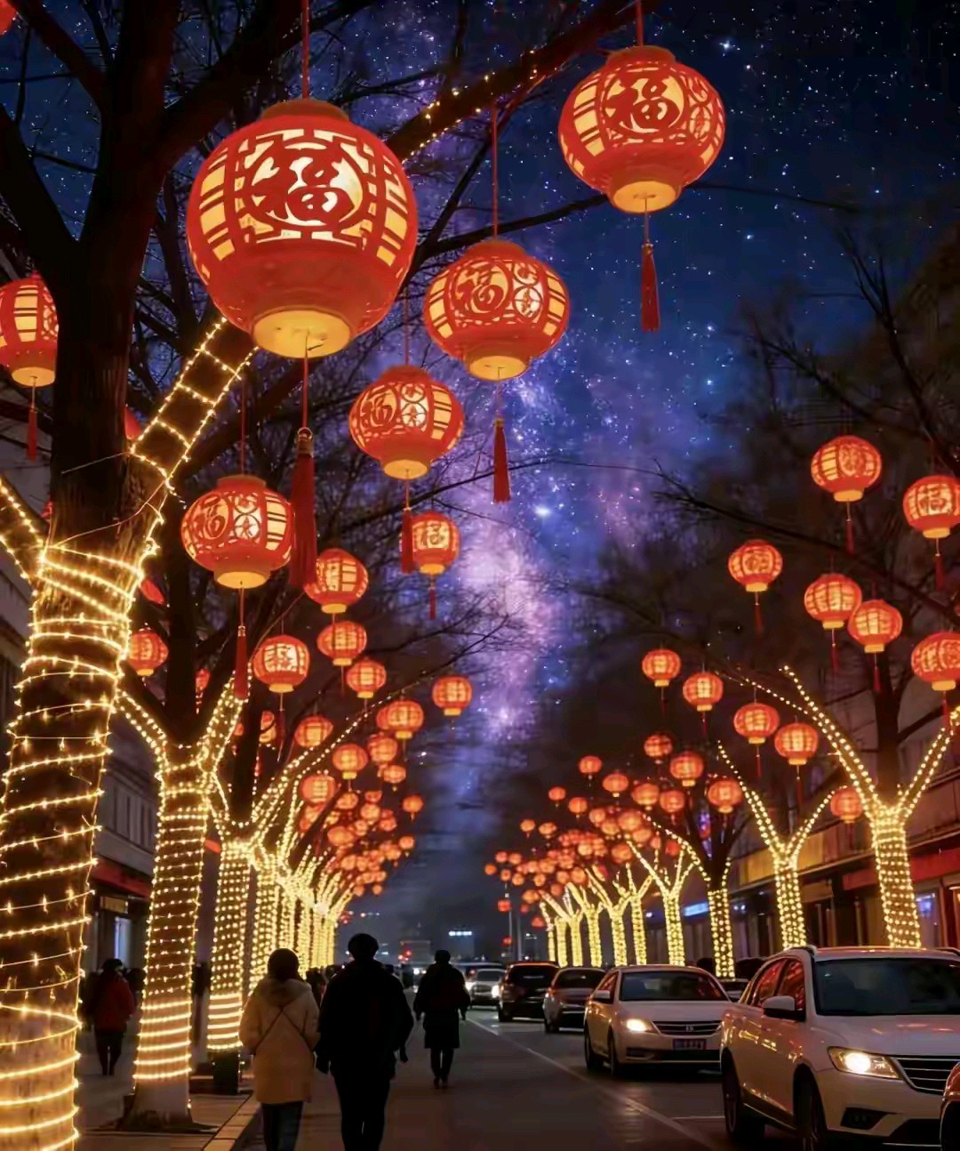 迎新春红红灯笼挂满街道树木亮化风景真漂亮!