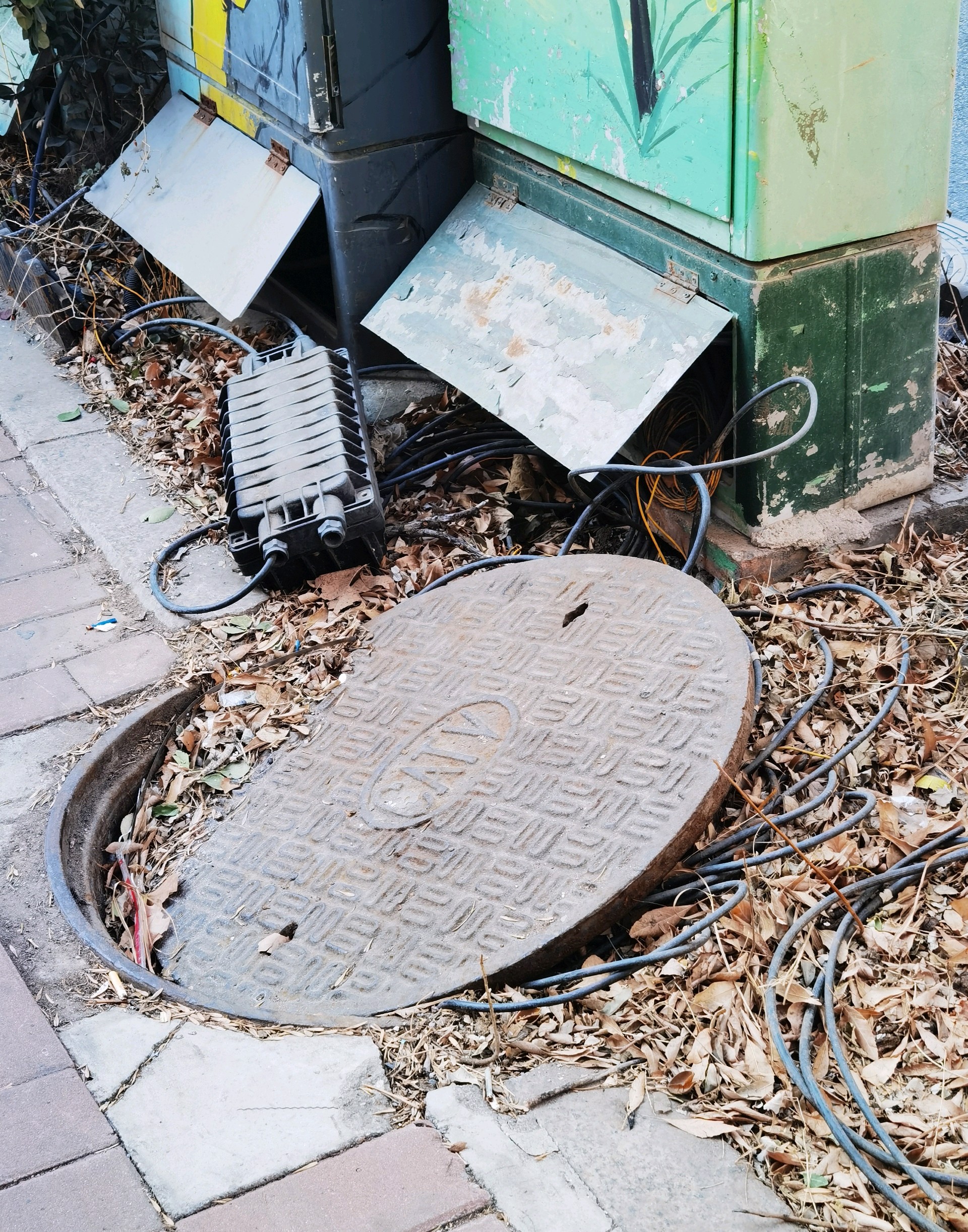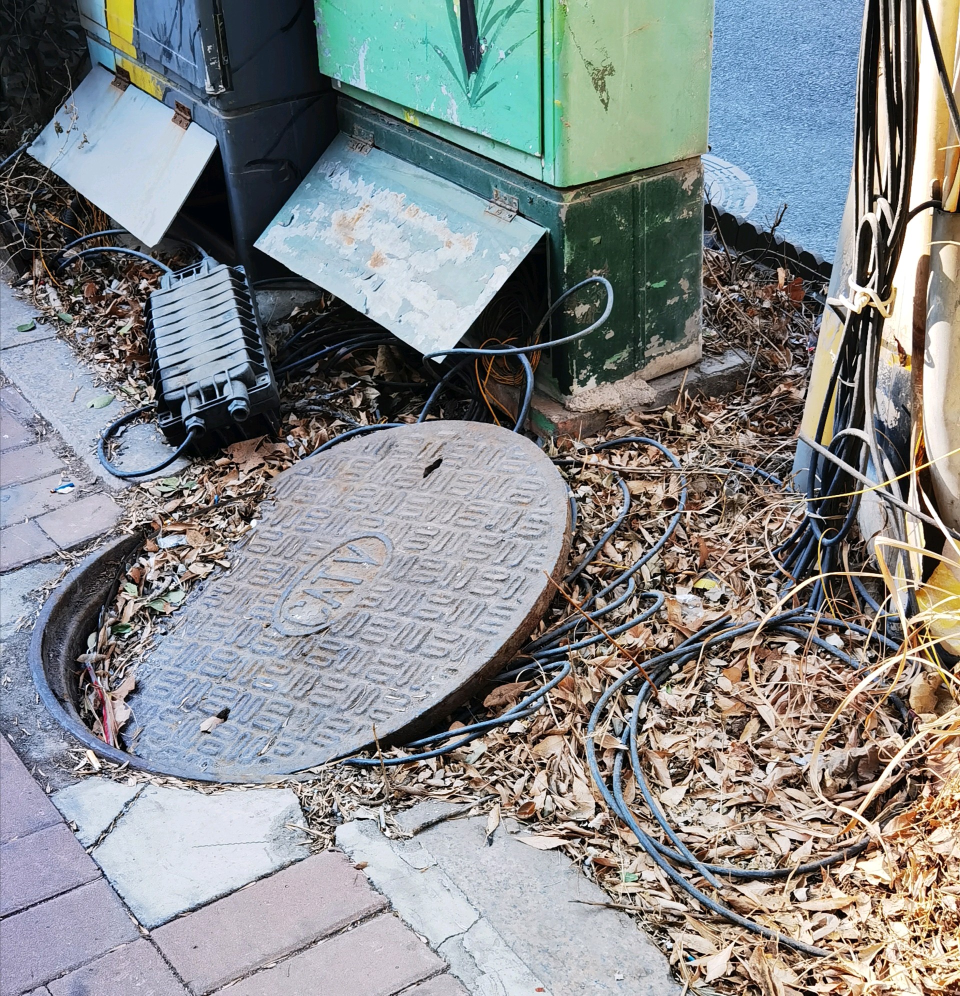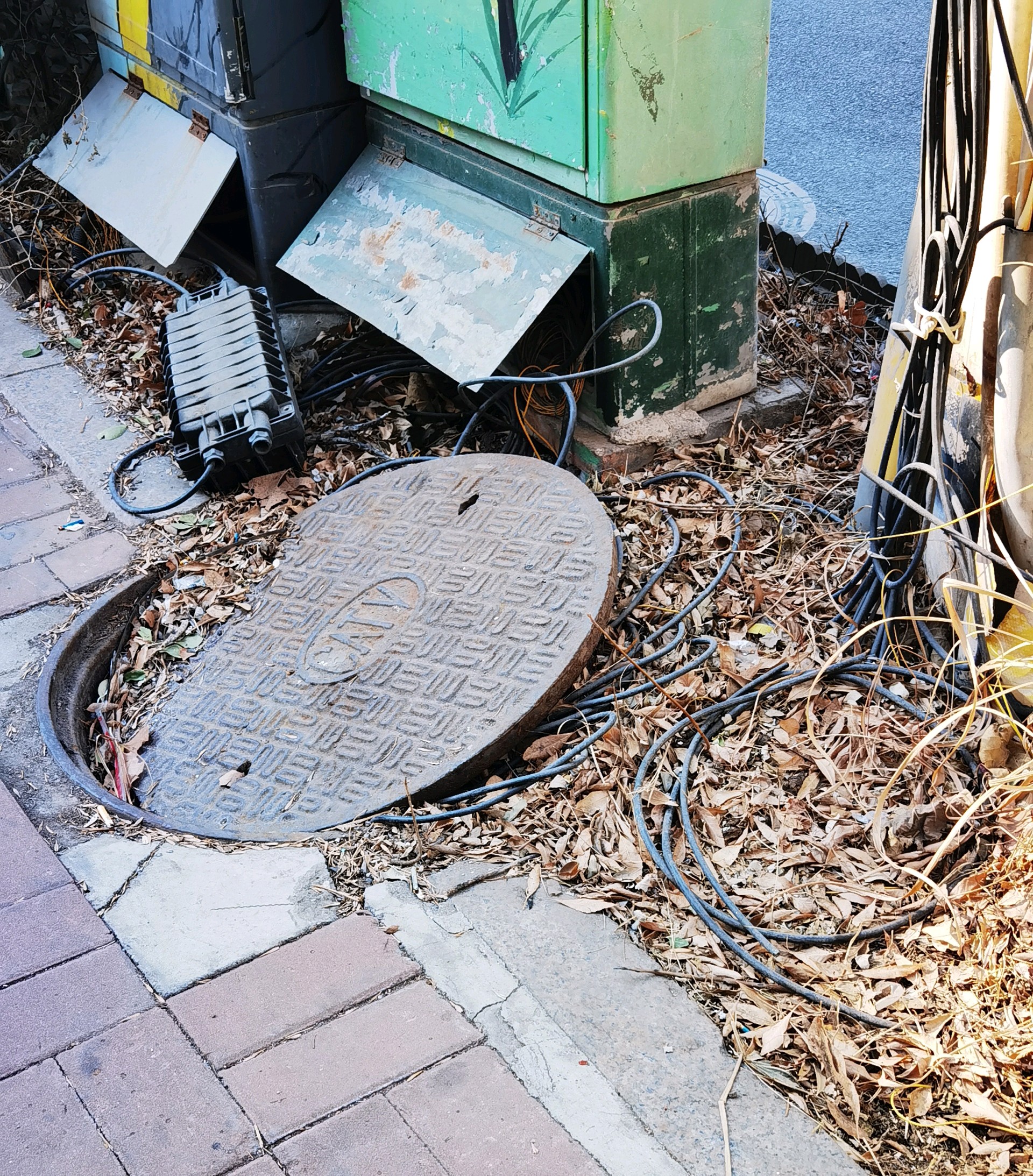 #共创美好随手拍#济南这里井盖歪斜设备线缆暴露,影响市容,存安全隐患,盼整治济南市市中区建设路与建新路丁字路口人行道边上的电缆井盖歪斜设备线缆暴露,线缆散落一地,不仅影响市容市貌,阻碍交通,也存在安全隐患,盼望有关部门及时处理整治。