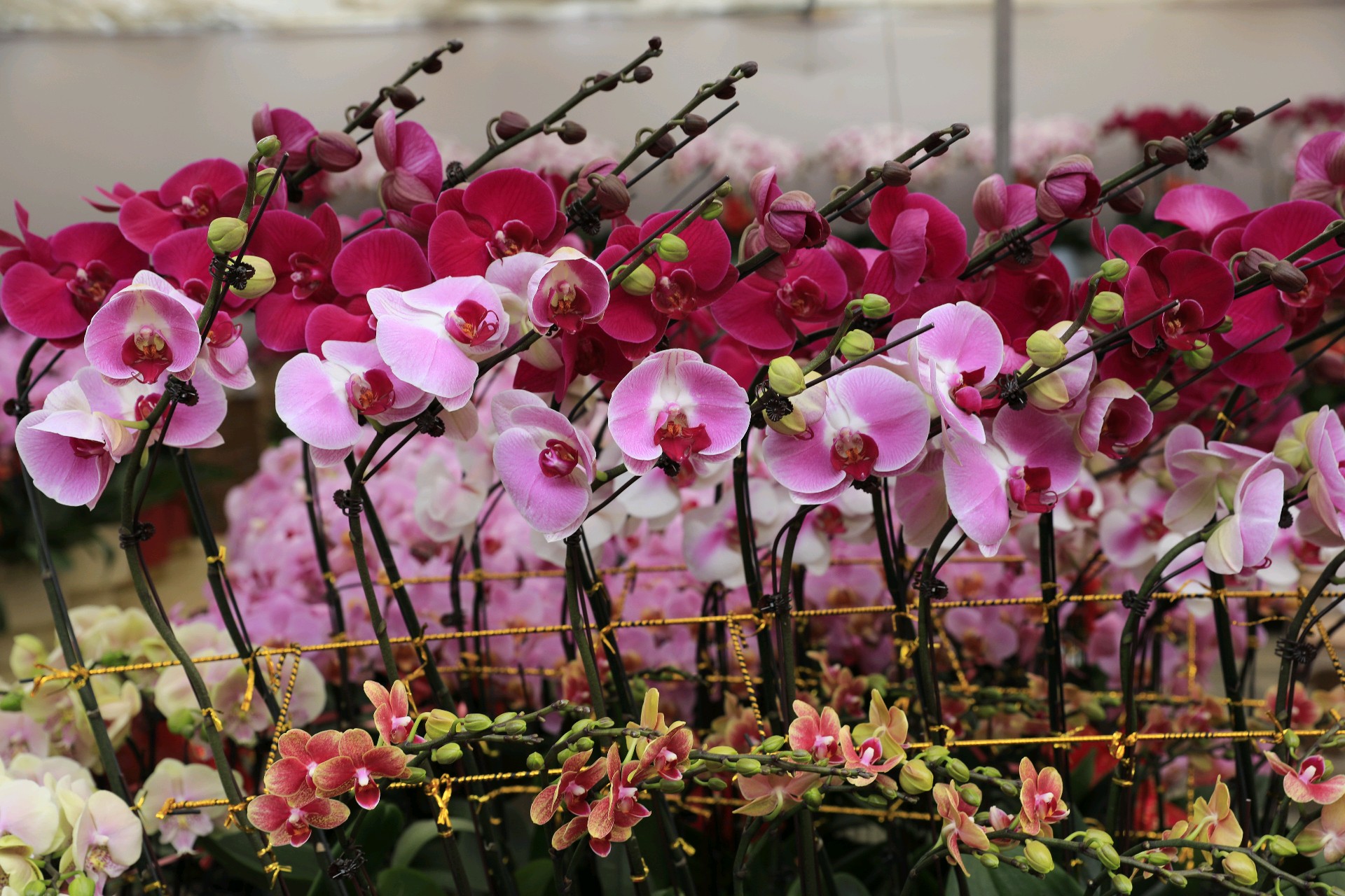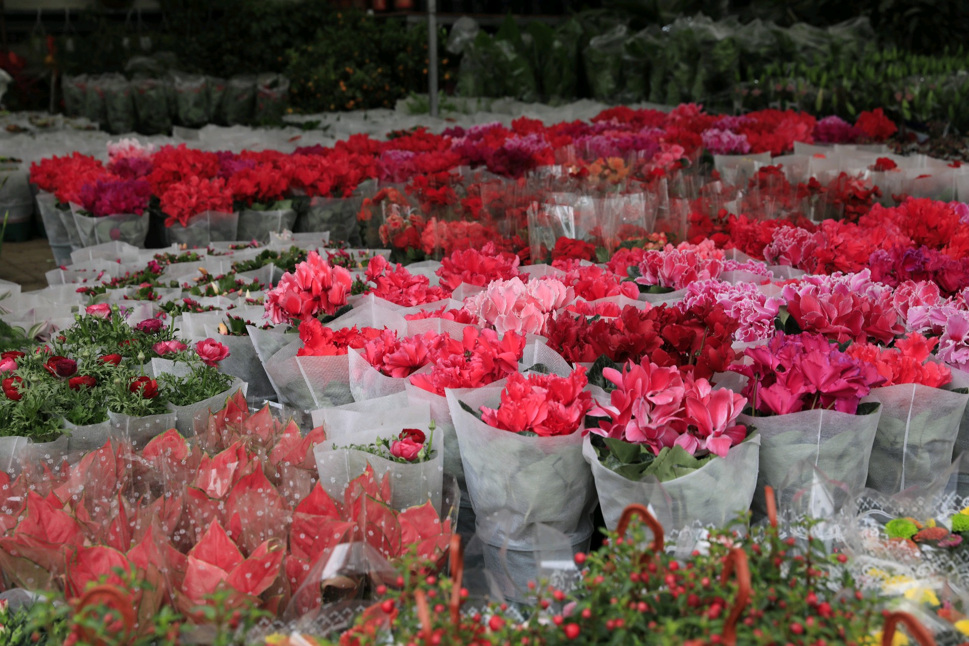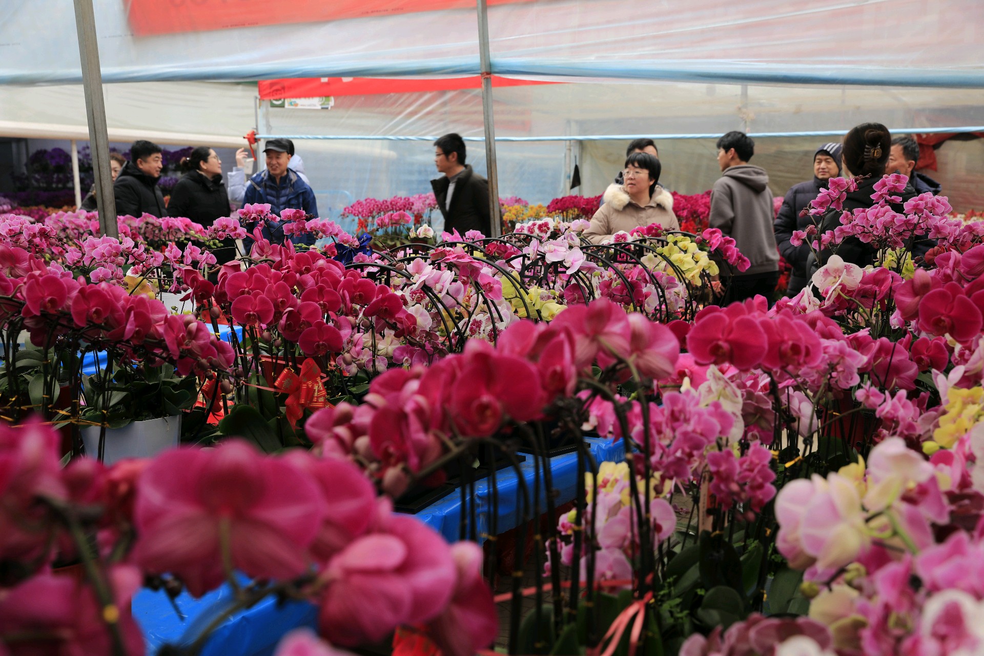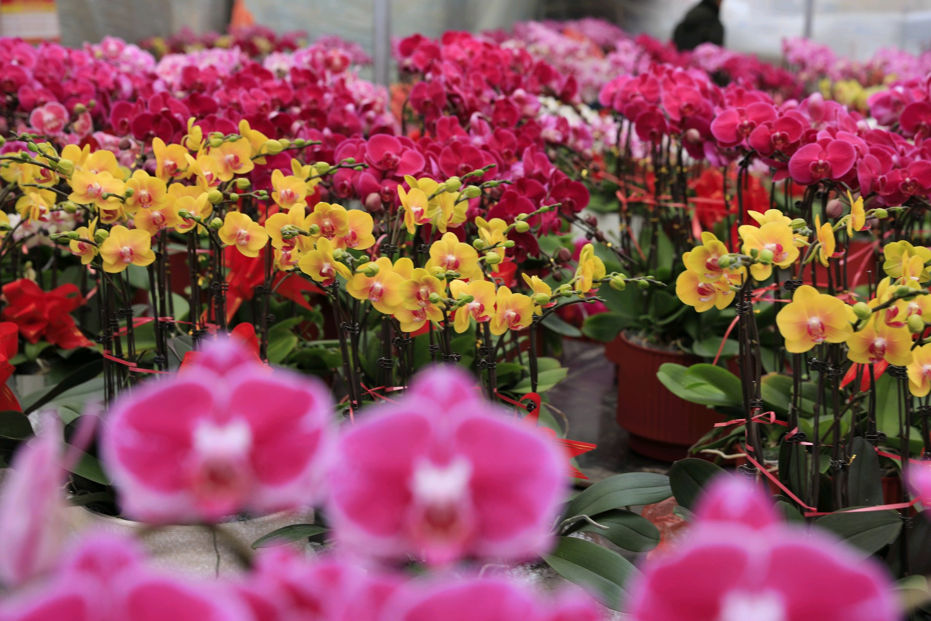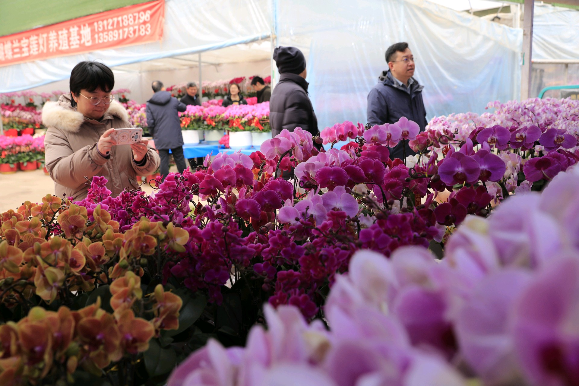 新年临近,潍坊青州市花卉苗木交易中心迎来销售旺季,花卉经销商们备足蝴蝶兰、大花蕙兰、仙客来等各种年宵花卉,吸引了各地客商前来选购,市场红红火火。王东元 摄影