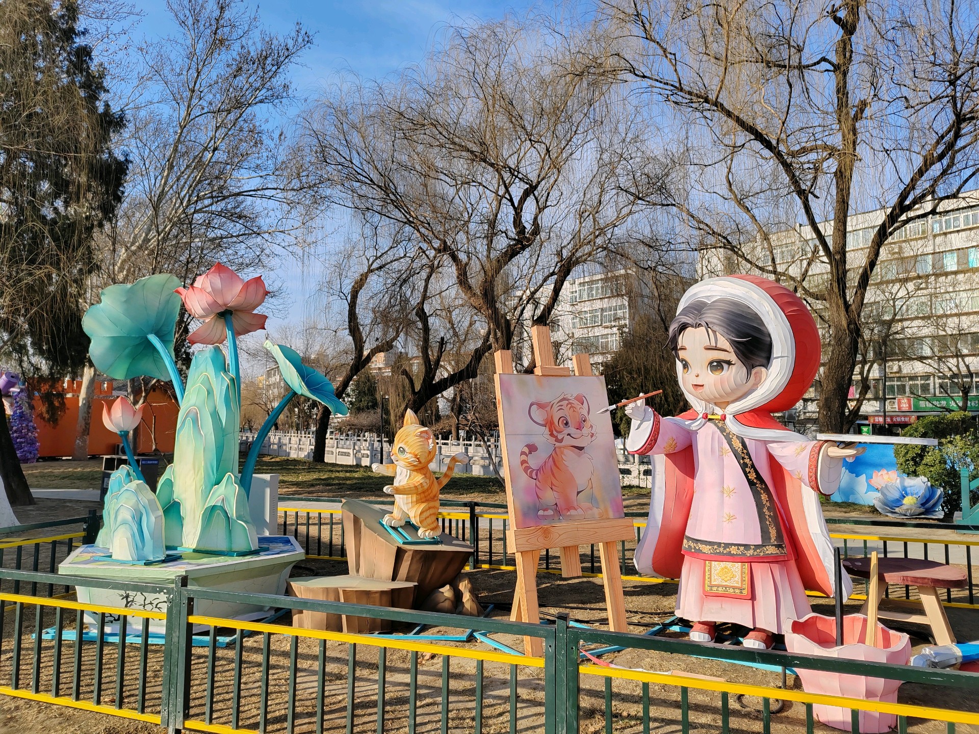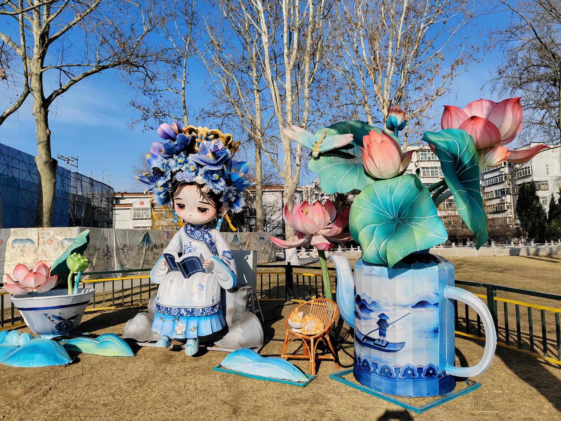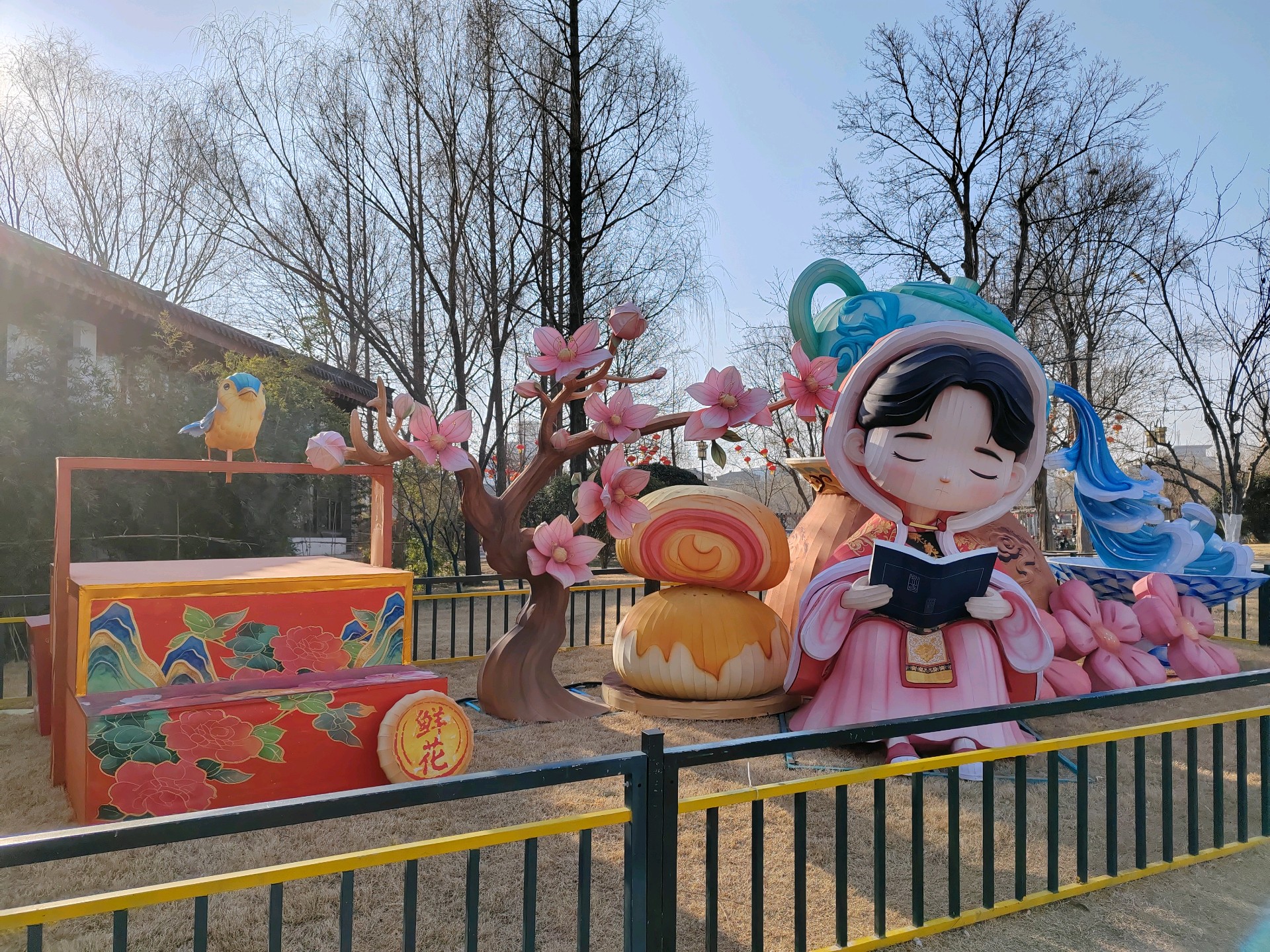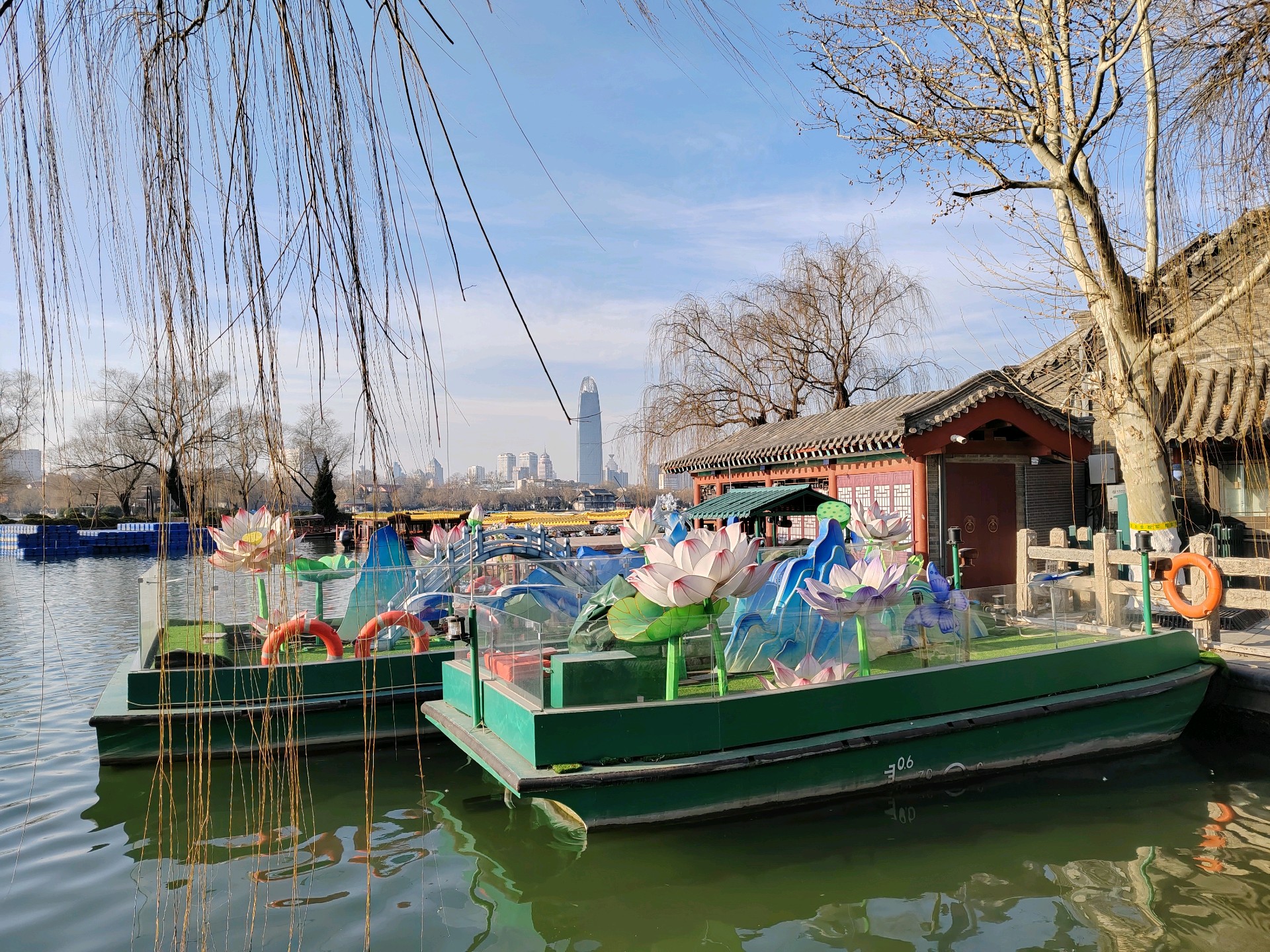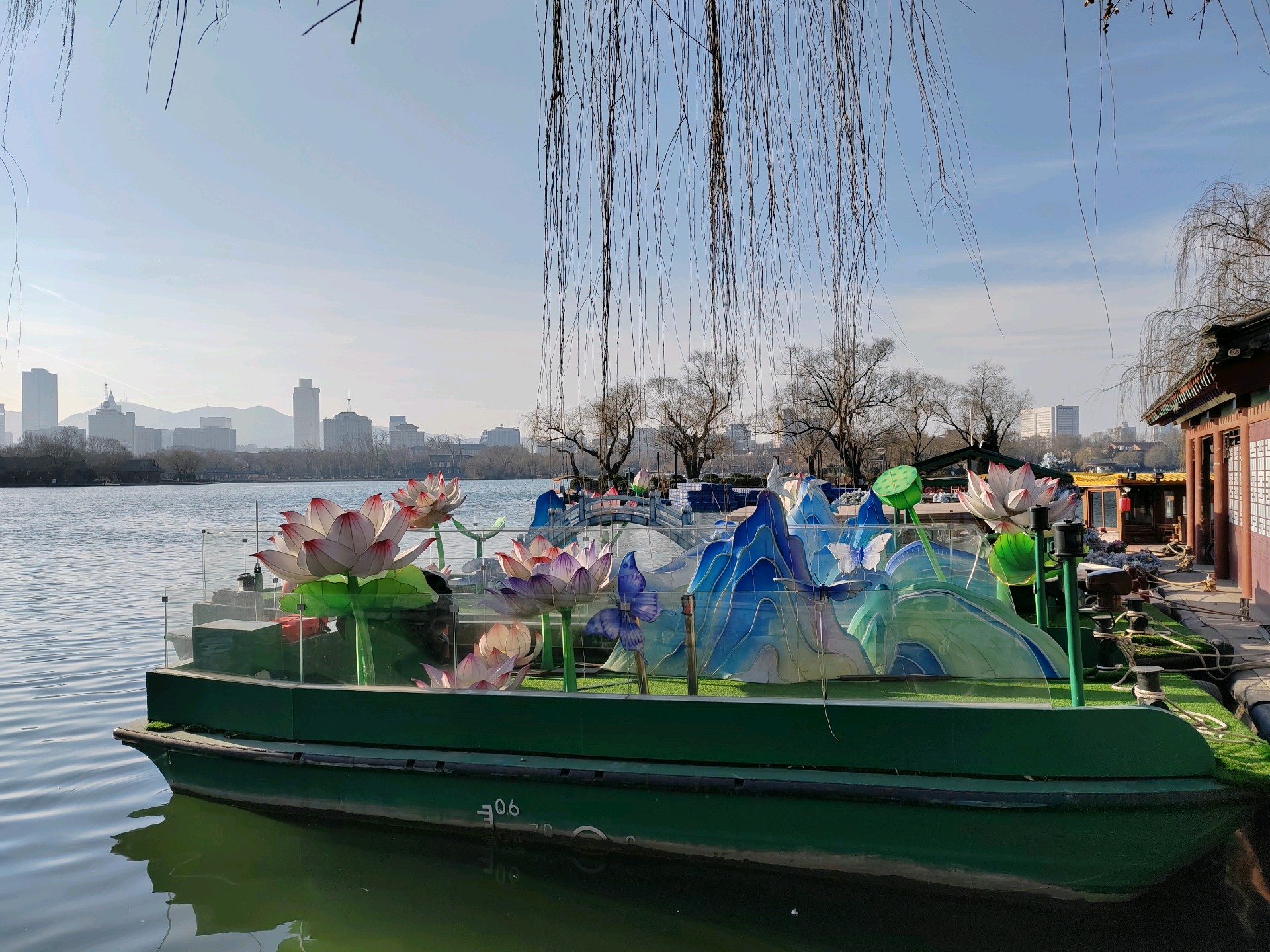 天气晴朗,气温回升,小年将致,大明湖畔春节花灯安装完成,多姿多彩,扮亮了景区。