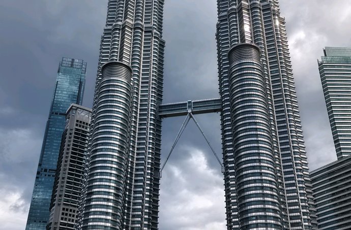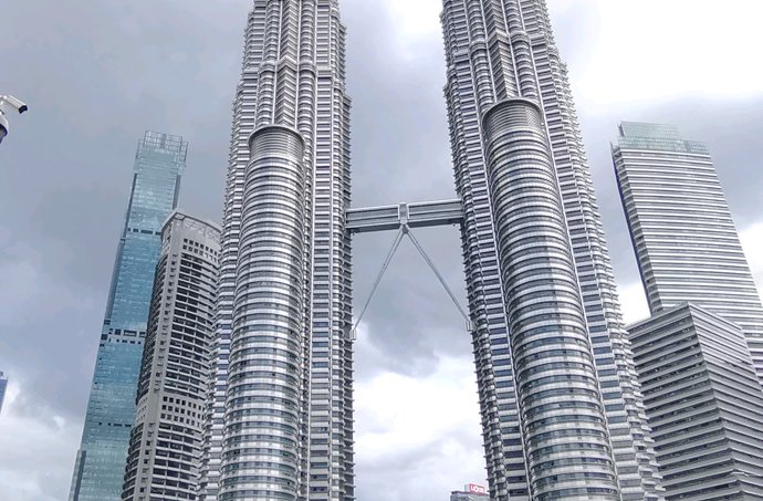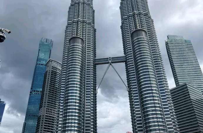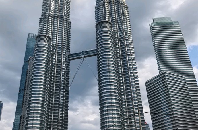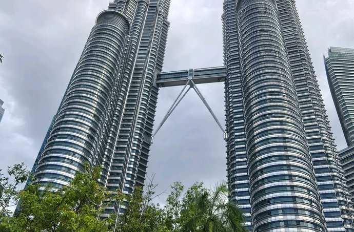 双塔凌云刺九天,一桥飞架若惊虹。拔地摩天势未休,钢骨玻璃写春秋。欲穷千里登临处,尽览南洋万象收。吉隆坡双子塔是现代建筑的史诗,它将伊斯兰几何美学与摩天大楼的硬朗线条完美缝合。每一寸不锈钢与玻璃的拼接,都在诉说传统与未来的对话;横跨高空的天桥,更像是人类向天空伸出的惊叹之手。