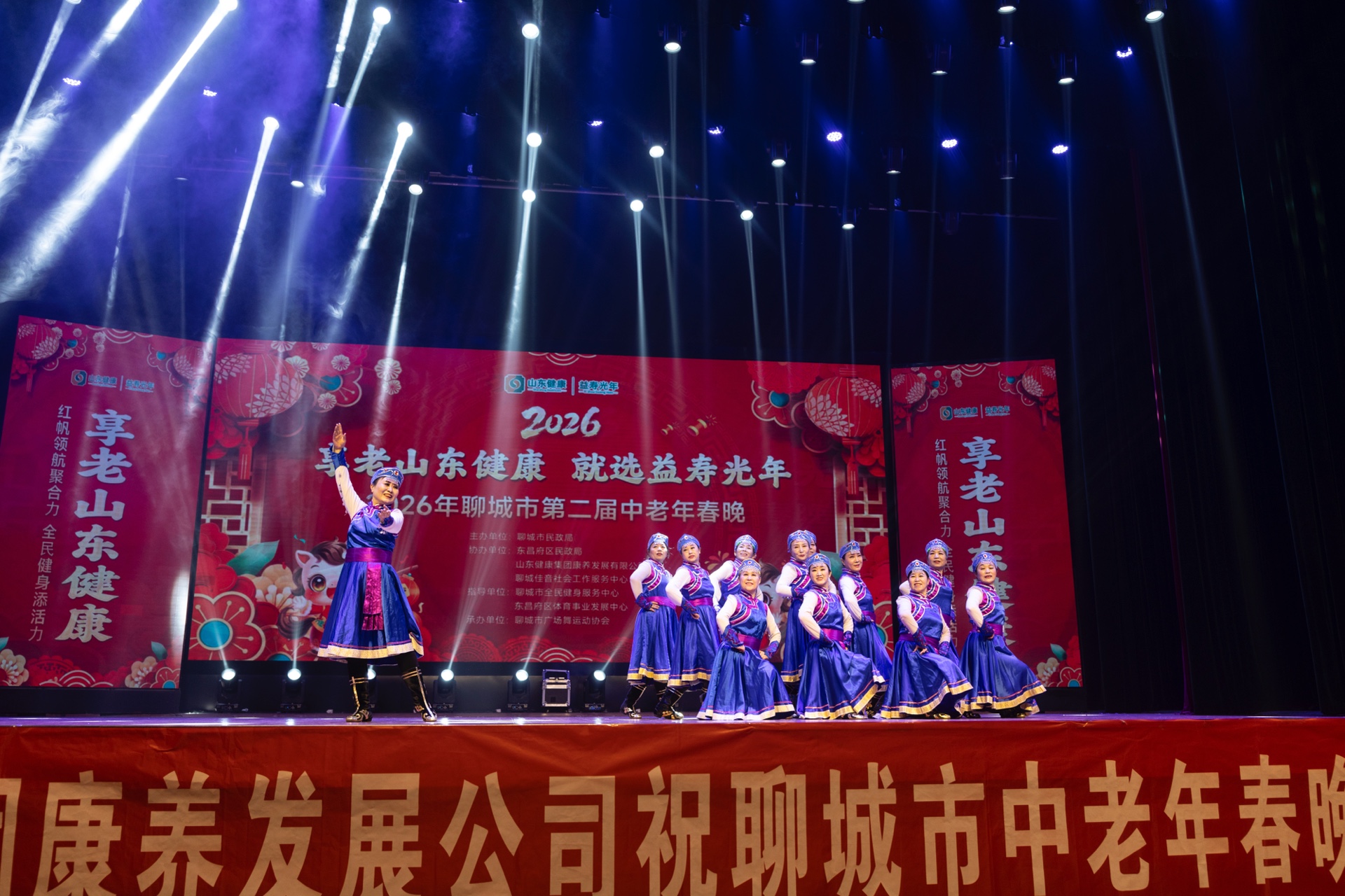 2月9日,以“享老山东健康·就选益寿光年”为主题的2026年聊城市中老年春节联欢晚会,在聊城剧院圆满落幕。晚会由聊城市民政局主办,东昌府区民政局、山东健康集团康养发展公司、聊城佳音社会工作服务中心协办,聊城市全民健身服务中心、东昌府区体育事业发展中心指导,聊城市广场舞运动协会承办。近700名中老年表演者携22个精品节目登台献艺,用昂扬姿态与精湛技艺,为全市人民呈现了一场彰显银龄活力、饱含文化温度的新春视听盛宴。市、区有关领导、山东健康集团康养发展有限公司等领导和嘉宾及现场观众共同见证了这一文化盛事。本届中老年春晚自启动以来,便以“零门槛、全参与、接地气”的理念赢得社会各界广泛关注与热烈响应。为遴选高质量节目,组委会进行了一个多月的海选活动,覆盖东昌府区古楼街道、柳园街道、新区街道及开发区、度假区等多个区域,更吸引了部分县市区的中老年文艺爱好者踊跃参与,累计报名人数超2000人,直接辐射人群逾1万人次,真正实现了“全民参与、全域联动”的文化氛围。经过评审团层层严格遴选,最终22个节目成功晋级总录制环节。为呈现最佳舞台效果,2月9日上午,全体参演人员与工作人员提前到场开展全流程联排彩排,以精益求精的态度为下午的正式录制筑牢基础;当日下午,晚会在开场舞《春节序曲》的欢快旋律中正式拉开帷幕,整场演出亮点纷呈、高潮迭起。本届中老年春晚的成功举办,不仅为全市中老年文艺爱好者搭建了展示风采、交流技艺的优质平台,更生动诠释了“老有所乐、老有所为”的时代内涵,也为深化养老服务与文化建设融合发展提供了有力支撑,对弘扬孝亲敬老传统美德、助力文化聊城建设具有重要现实意义。