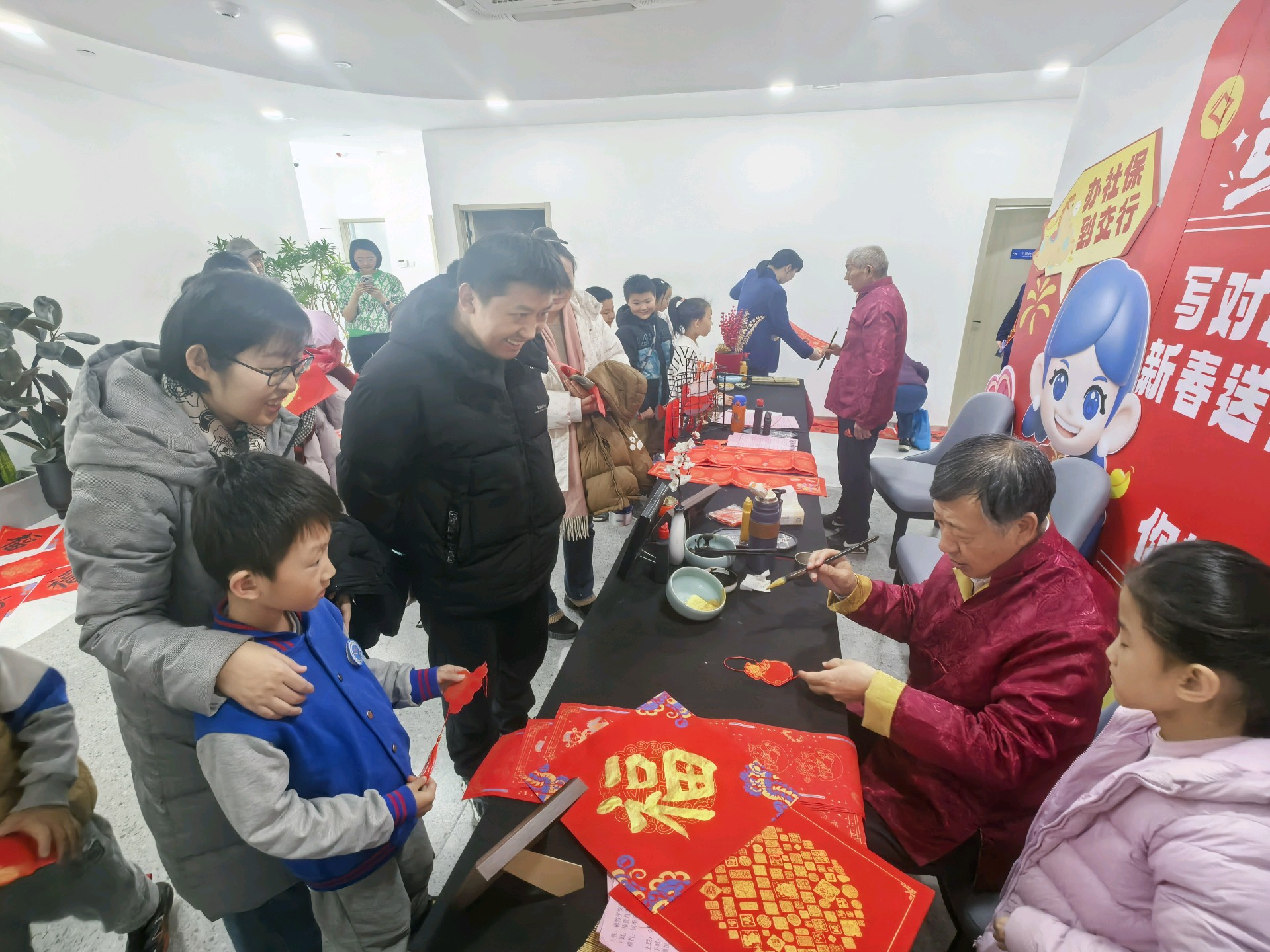 笔墨飘香传祝福,挥毫泼墨迎新春。支行特邀书法家协会会员现场挥毫,为居民定制专属春联与福字,对仗工整、寓意吉祥的作品落笔生花,墨香满室。在书法老师指导下,孩子们踊跃提笔书写福字,在一撇一捺中感受书法之美,体验亲手创作的年味乐趣。