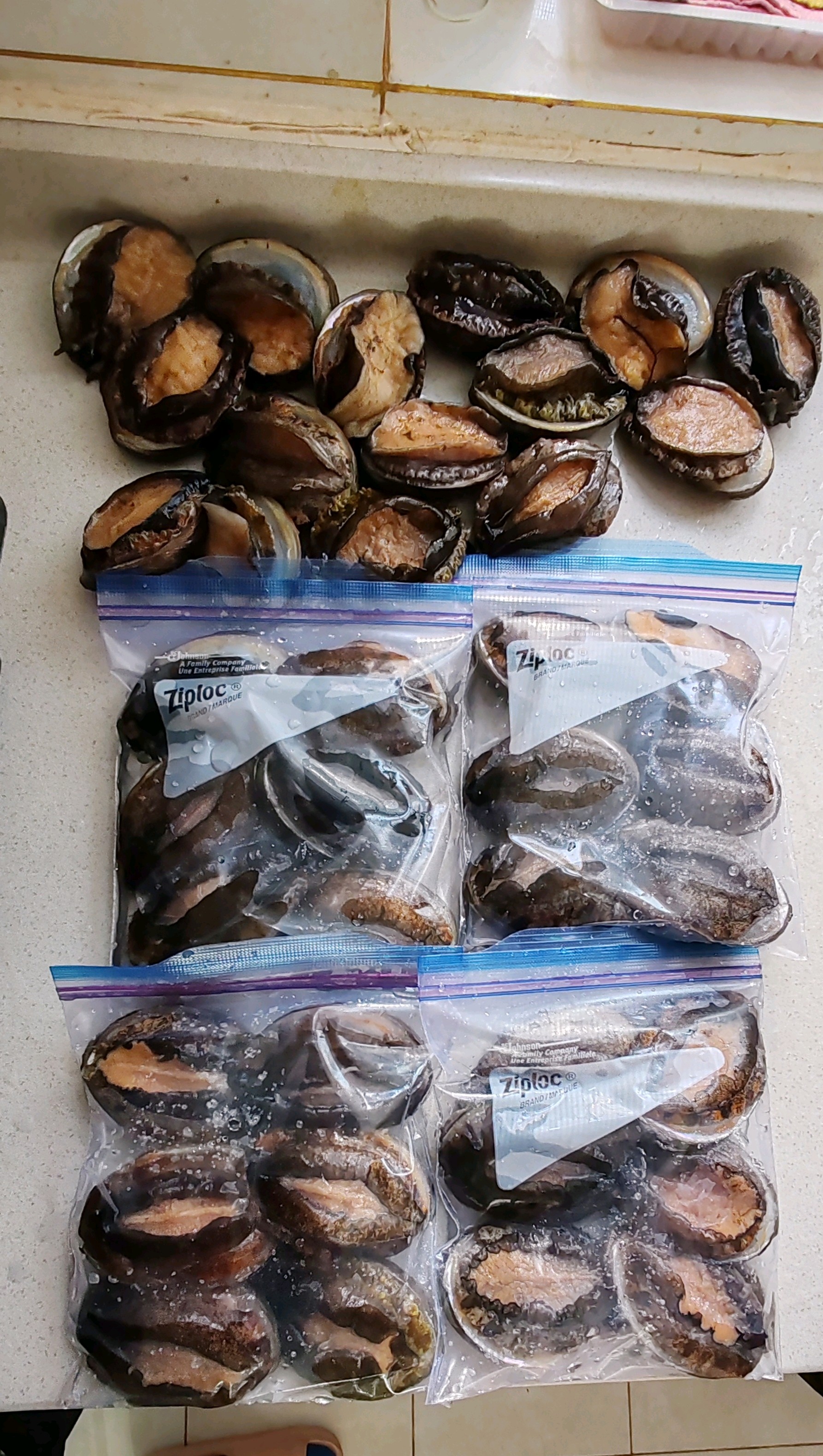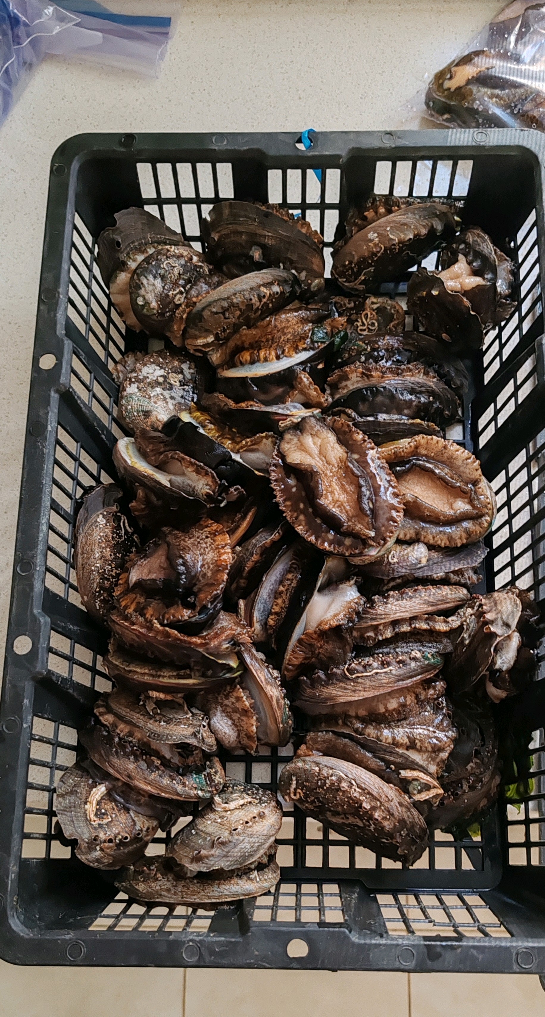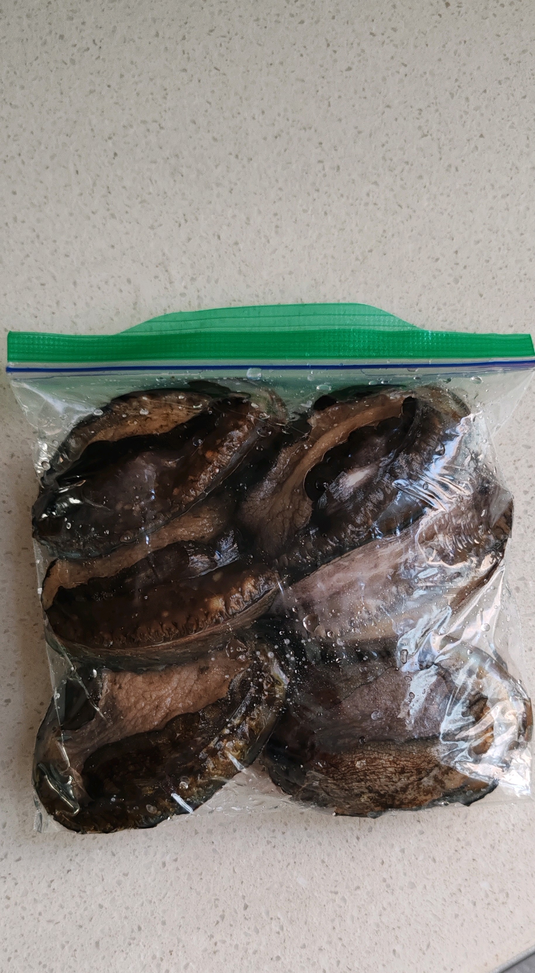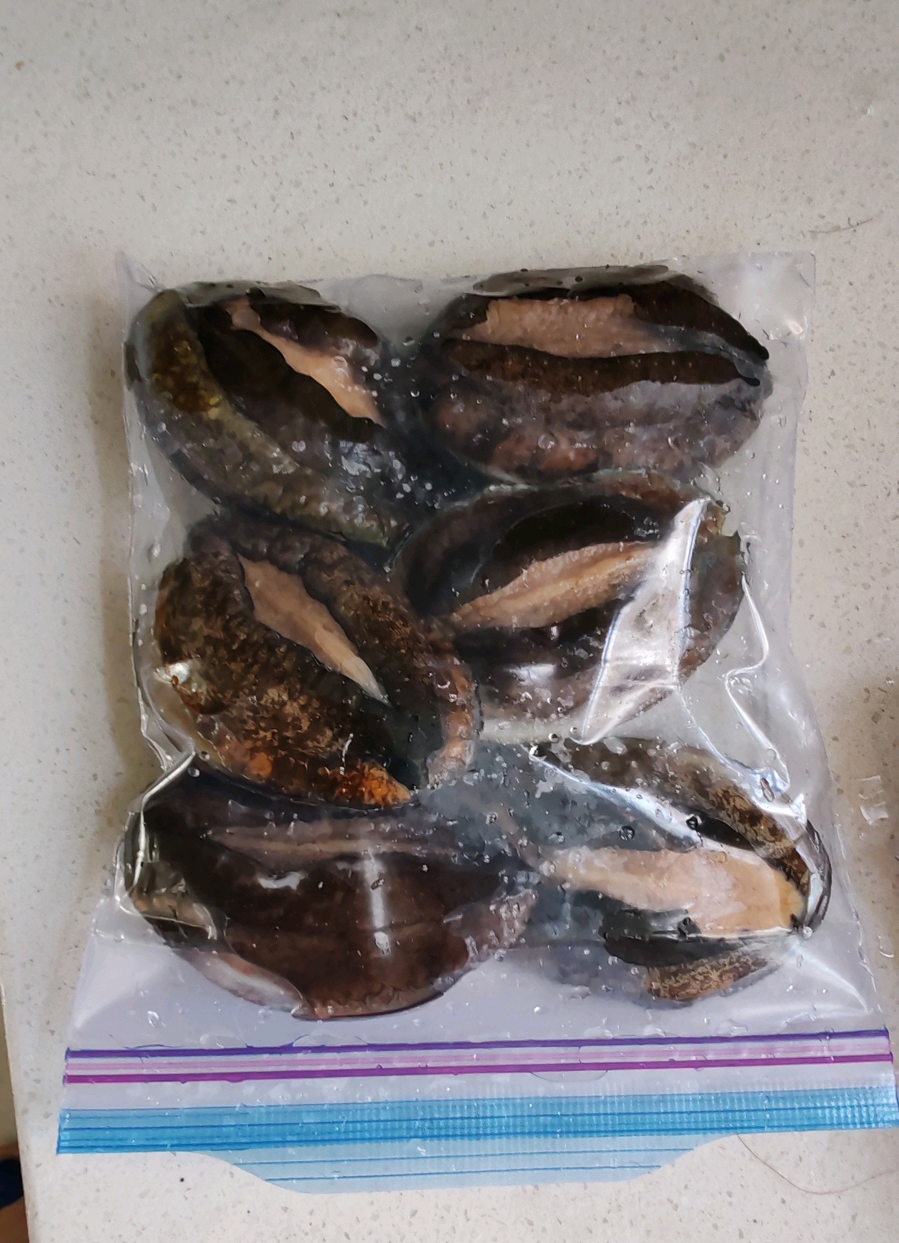 分享活鲍鱼的保存方法,朋友送的活鲍鱼,留着过年吃,养着也就存活三天,还太麻烦,把活鲍鱼用冷冻方法保存,可以吃半年,活鲍鱼用水洗净外壳,放到密封袋里,然后放点水,封口,直接放冰箱冷冻保存。还可以把活鲍鱼壳洗净,然后用保鲜膜一个一个的包好,再放密封袋,放冰箱冷冻保存,这两种方法保存,吃的时候和新鲜的口感,营养一样好。冷冻保存的鲍鱼,吃的时候拿出来,先放冰箱冷藏自然解冻,然后再做,可以做清蒸蒜蓉鲍鱼,做汤等。