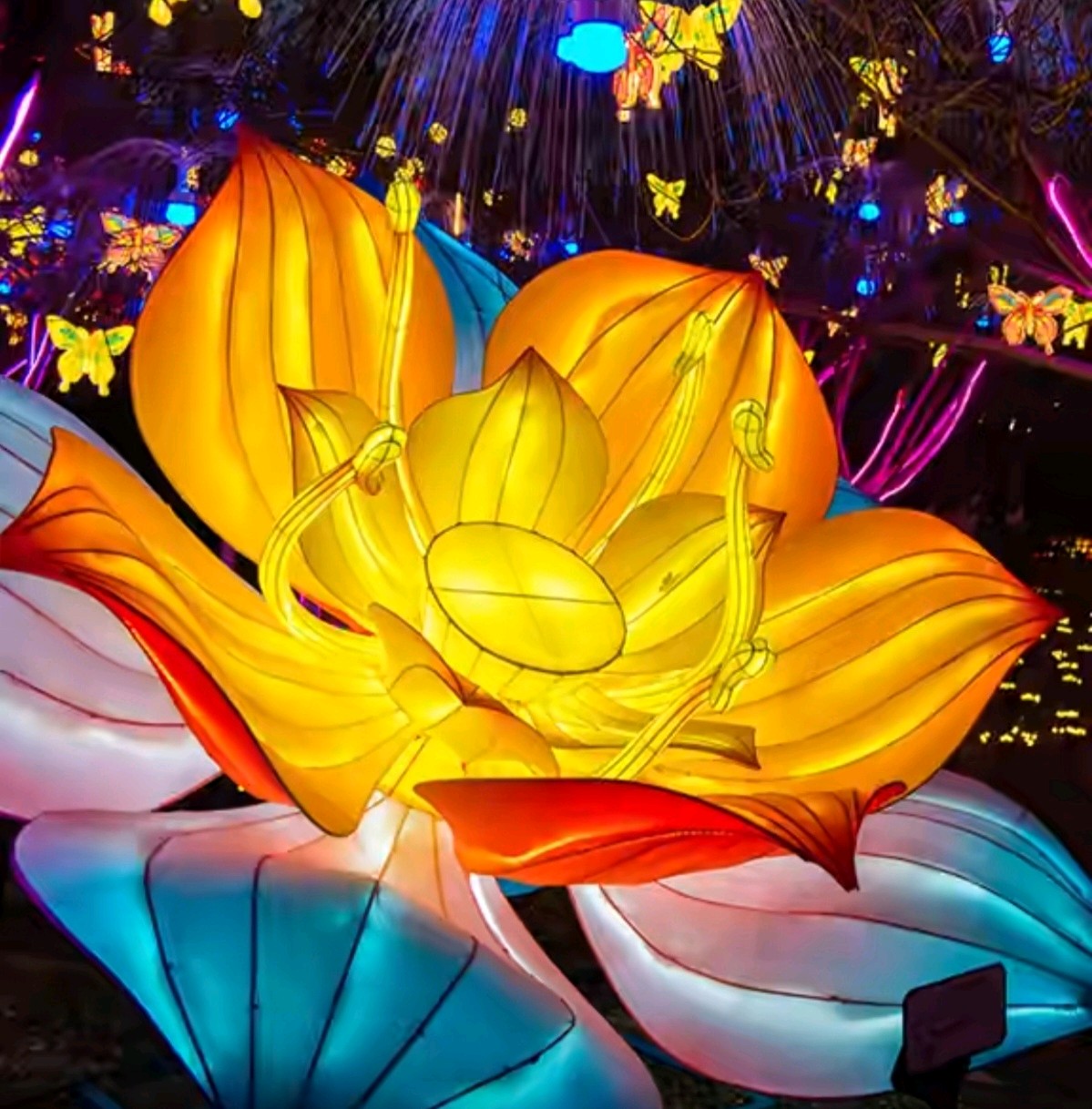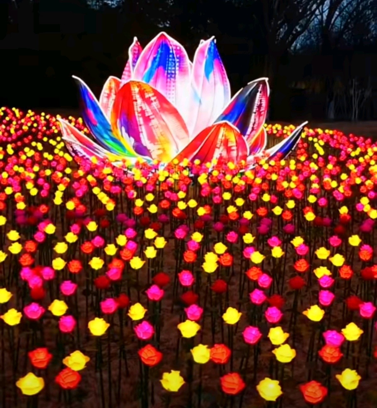 五龙潭公园里的荷花灯已亮起,灯火辉煌美不胜收。