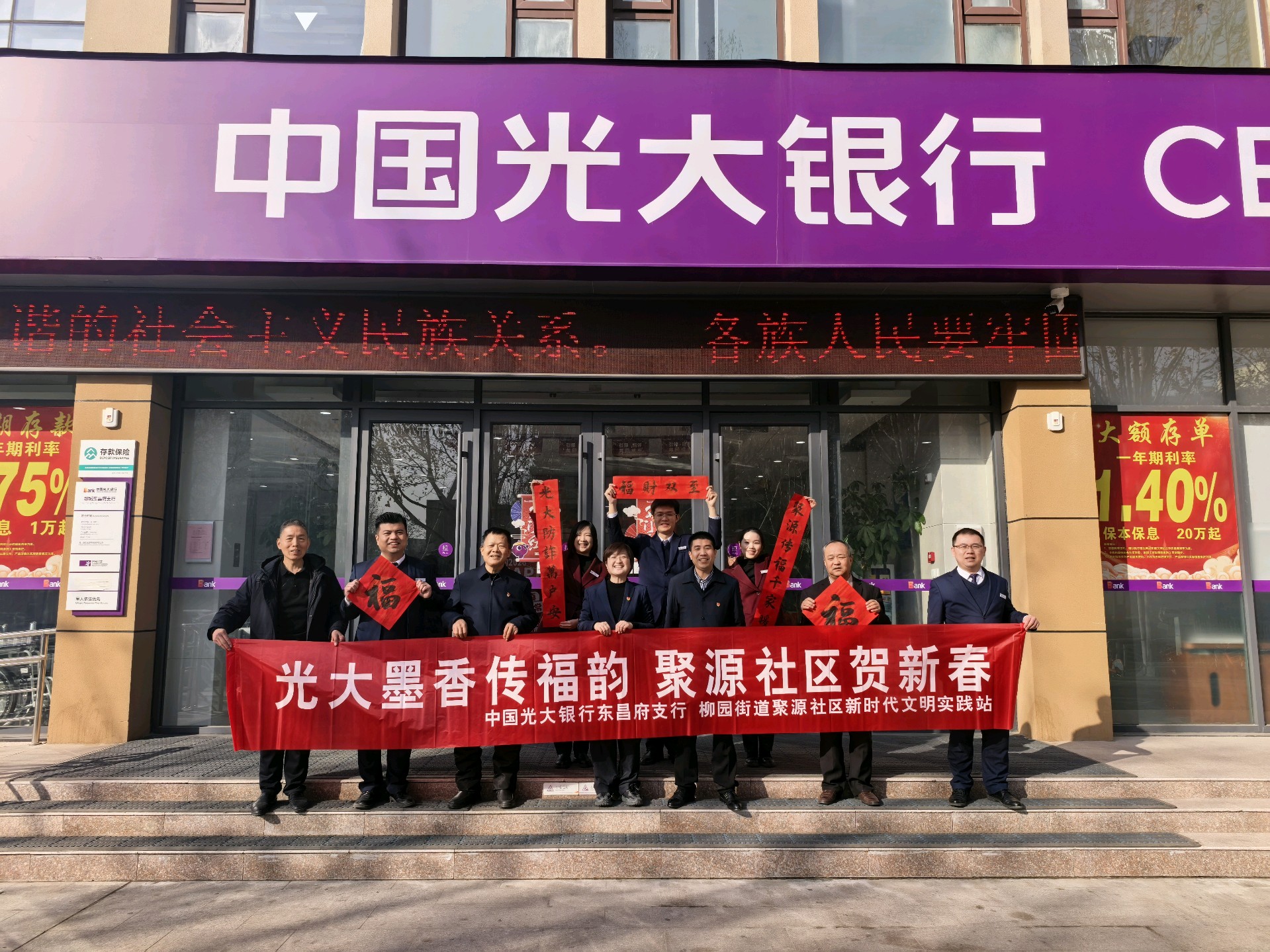 2026年2月11日上午,柳园街道前许街7号东头公共自行车广场热闹非凡,聚源社区党委书记孙博联合光大银行聊城东昌府支行,共同开展“光大墨香传富润,聚源社区贺新春”写春联送祝福活动,为居民们提前送上新春的温暖与关怀。