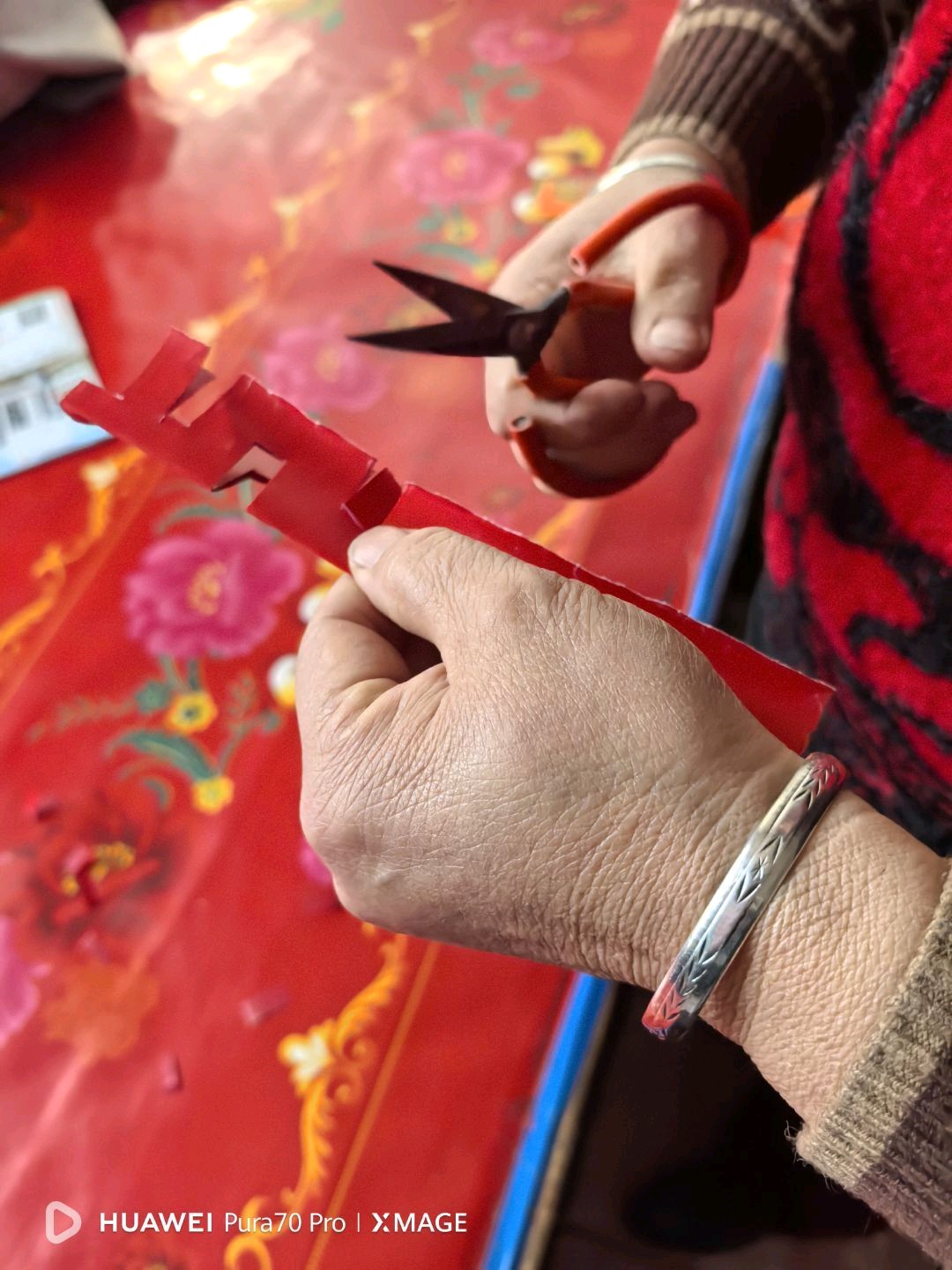 剪纸艺术则为吕梁年俗添上一抹灵动的红。在非遗传承人的指导下,红纸铺展、剪刀起落,福字、窗花、吉祥纹样一气呵成,线条简练、寓意饱满,承载着黄河流域千年的民俗审美。队员们围坐学习、交流心得,用镜头与文字记录技艺流程,把一剪一折的诗意定格成青春记忆,让古老剪纸在年轻一代手中焕发生机。