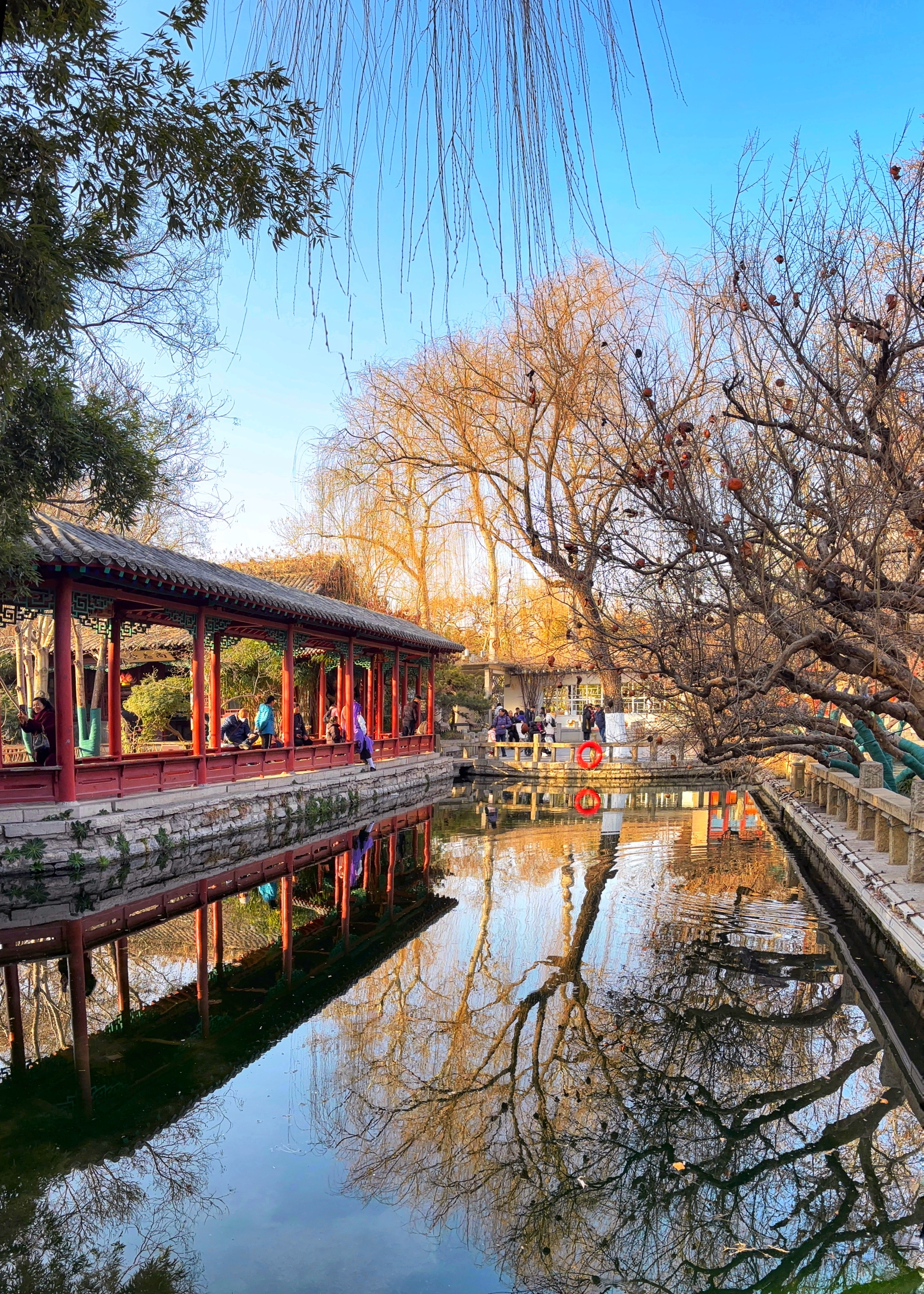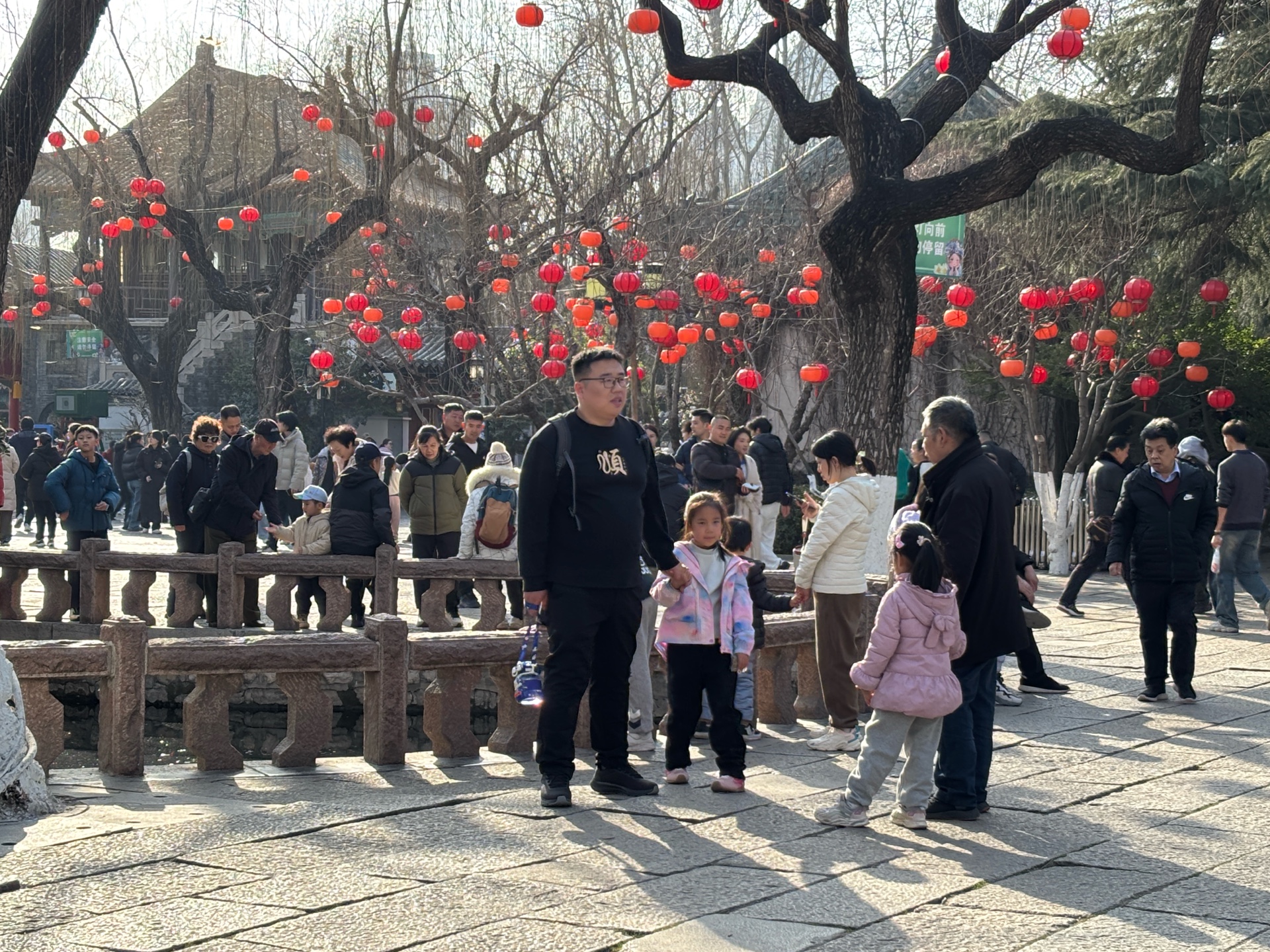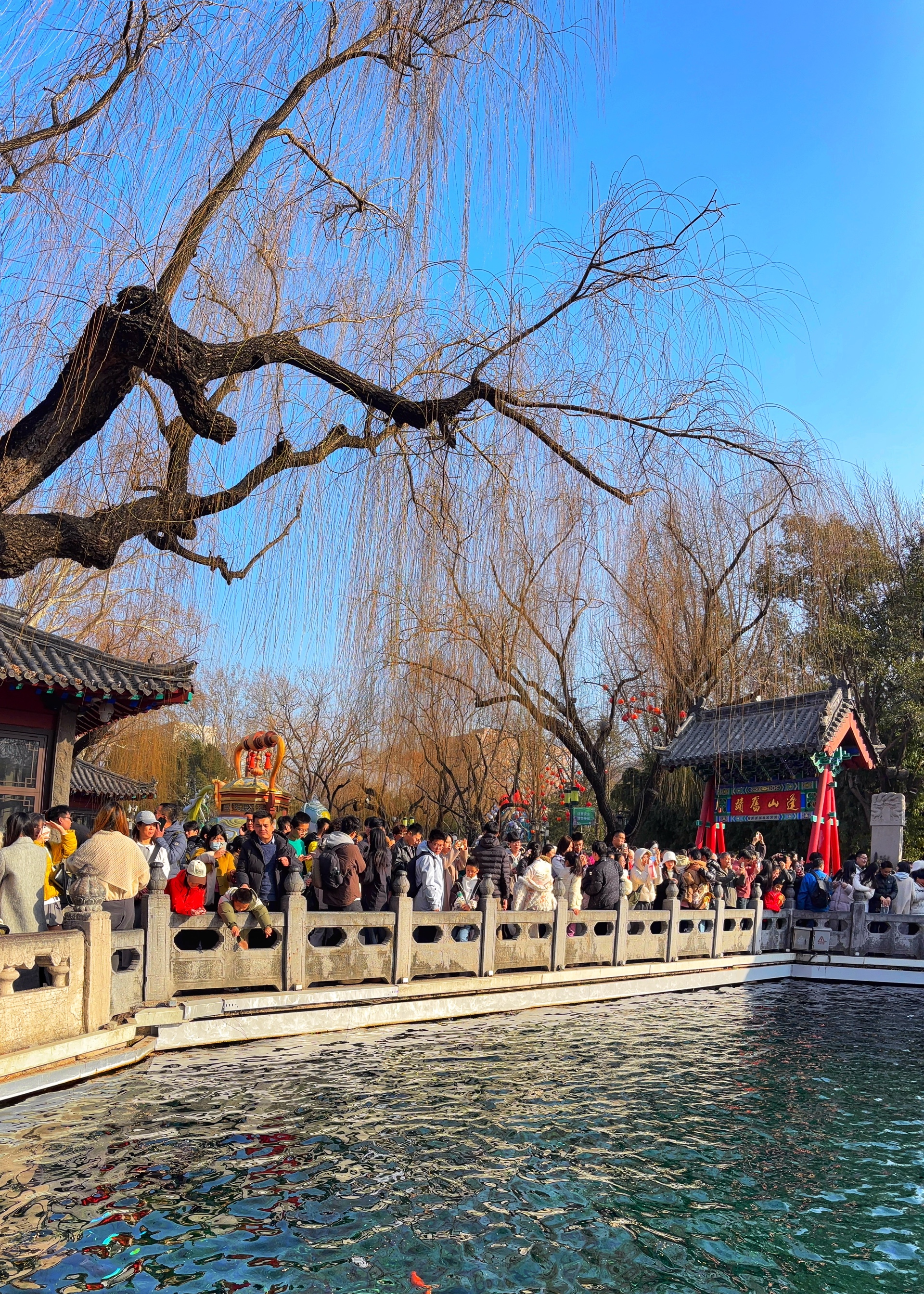 泉水清澈 亭台倒影 趵突泉游客络绎不绝