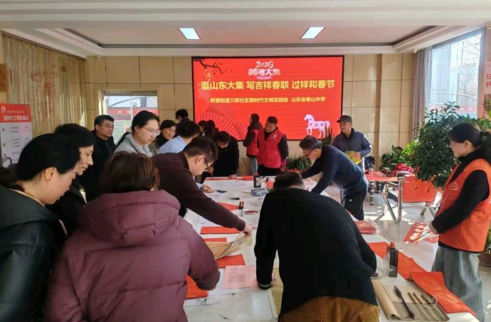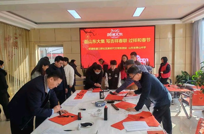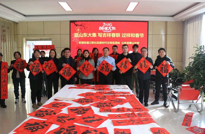 财源街道三联社区携手山东省泰山中学开展“逛山东大集,写吉祥春联,过祥和春节”主题活动